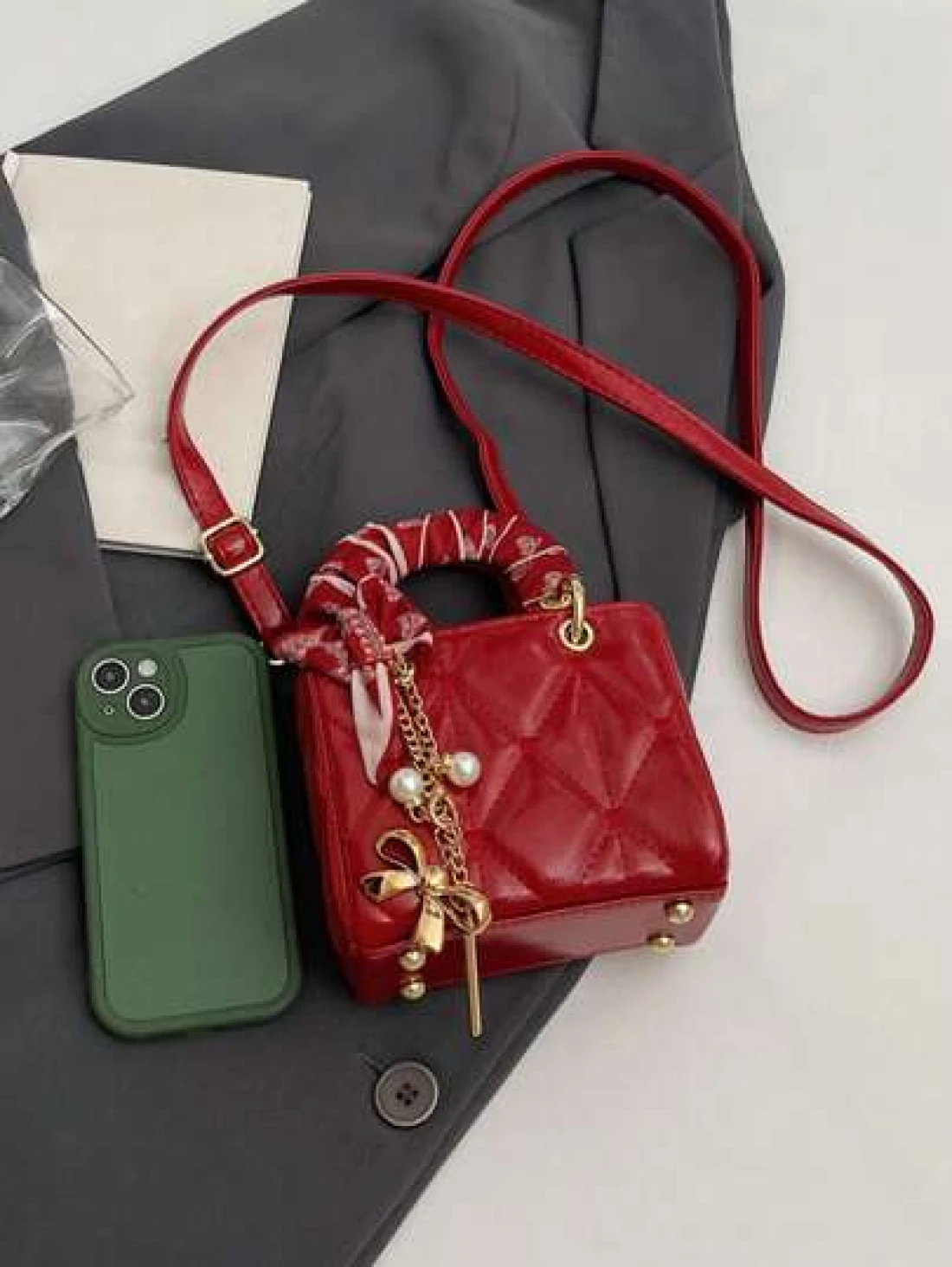 وشاح حريري فاخر مصمم ذو نقشة جميلة، شنطة يد متميزة للربيع والصيف، تصميم فريد بتطريز شكل ألماس وقلب على شكل شبكة ، شنطة أميرة ديانا، شنطة عصرية للجسم بقلادة فيونكة، مناسبة للمواعدة والتسوق والهدايا