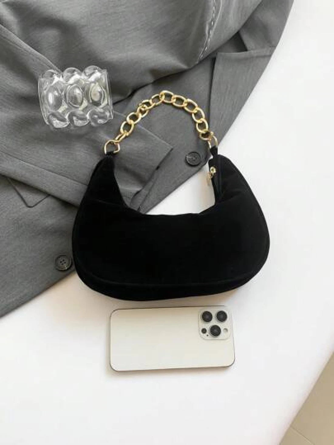 حقيبة مقبض معدنية سلسلة ذات نمط صلب أنيق، حقيبة كلاتش كاجوال متعددة الوظائف بتصميم مطفي رجعي للنساء