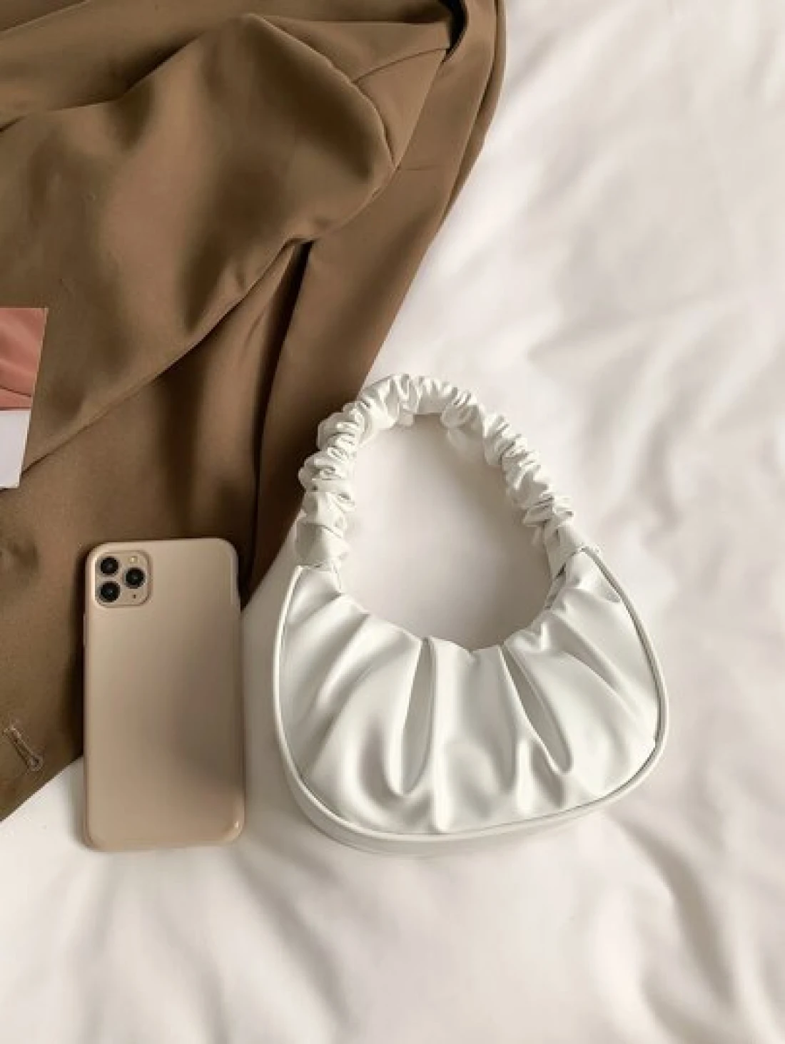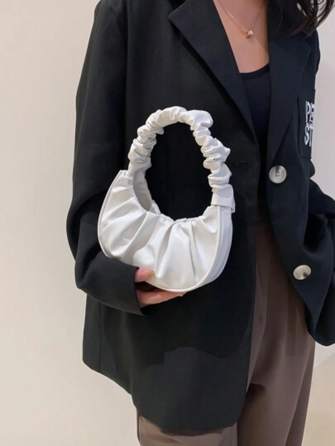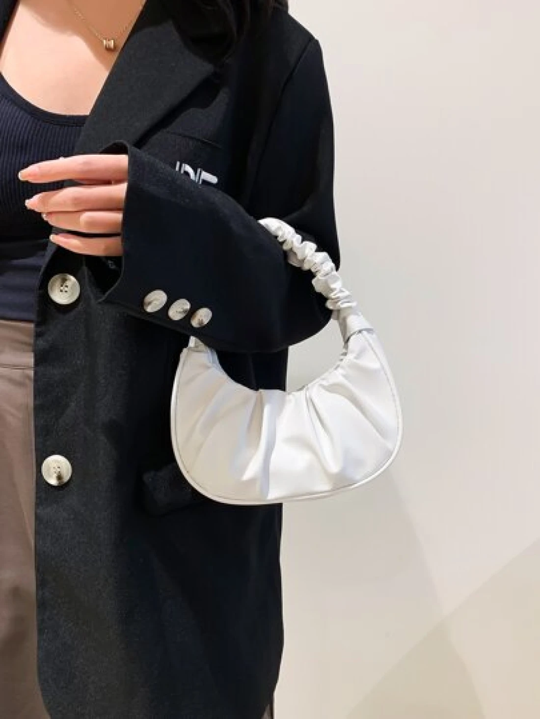 حقيبة يد مطوية أنيقة باللون الموحد للسيدات، حقيبة كتف للسيدات باللون الموحد بتصميم السحاب والهلال