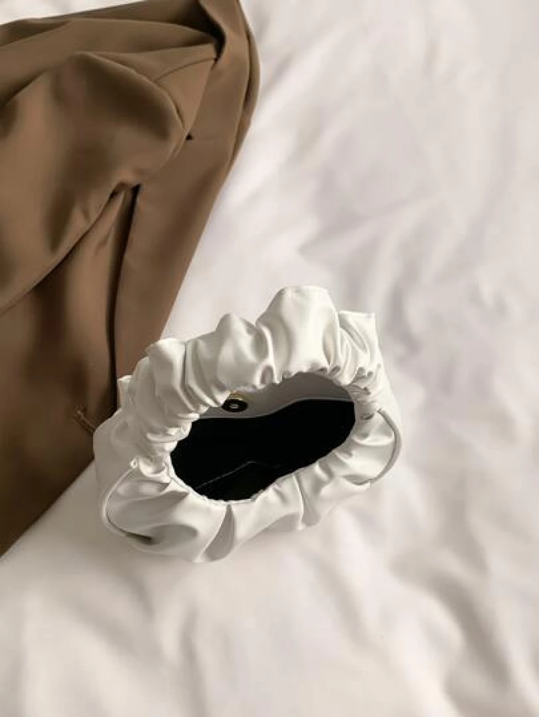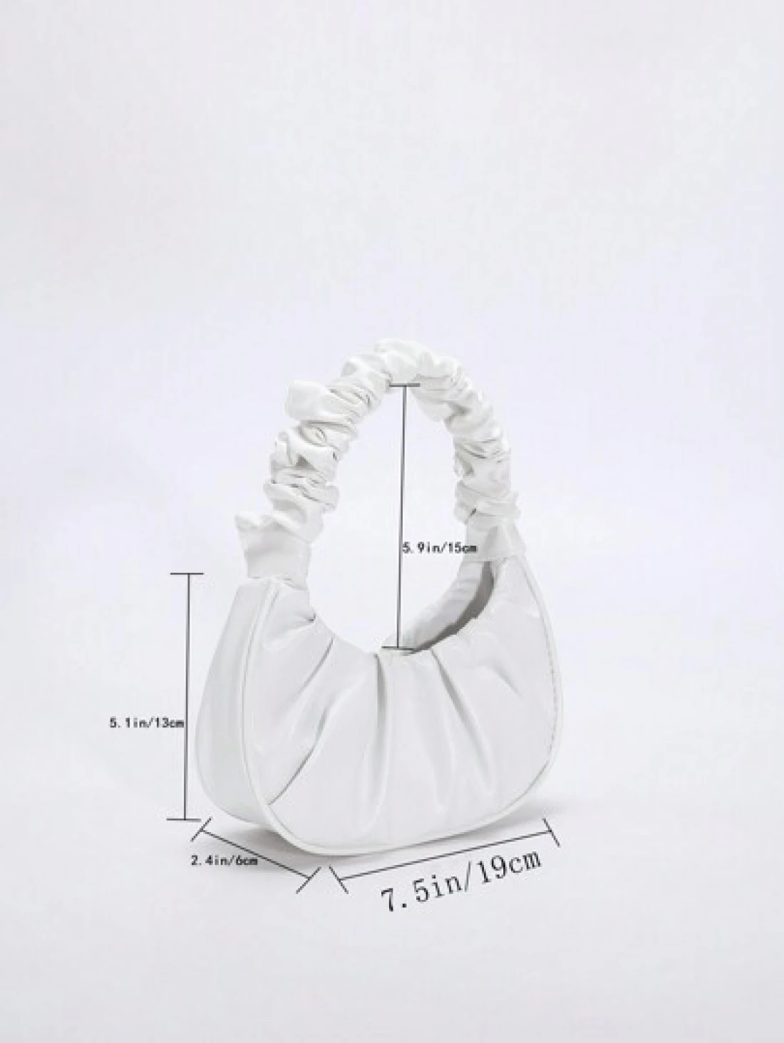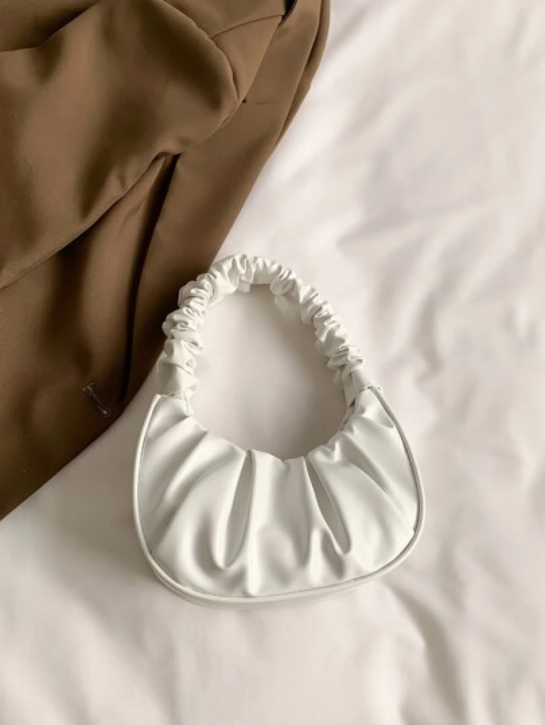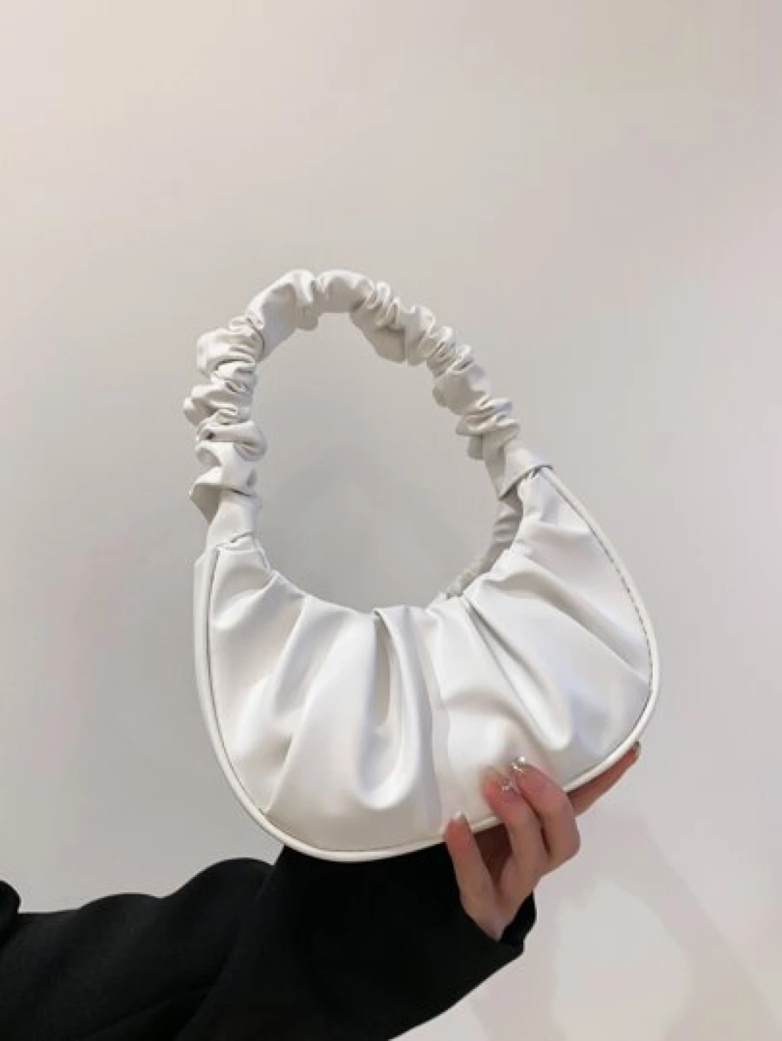 حقيبة يد مطوية أنيقة باللون الموحد للسيدات، حقيبة كتف للسيدات باللون الموحد بتصميم السحاب والهلال