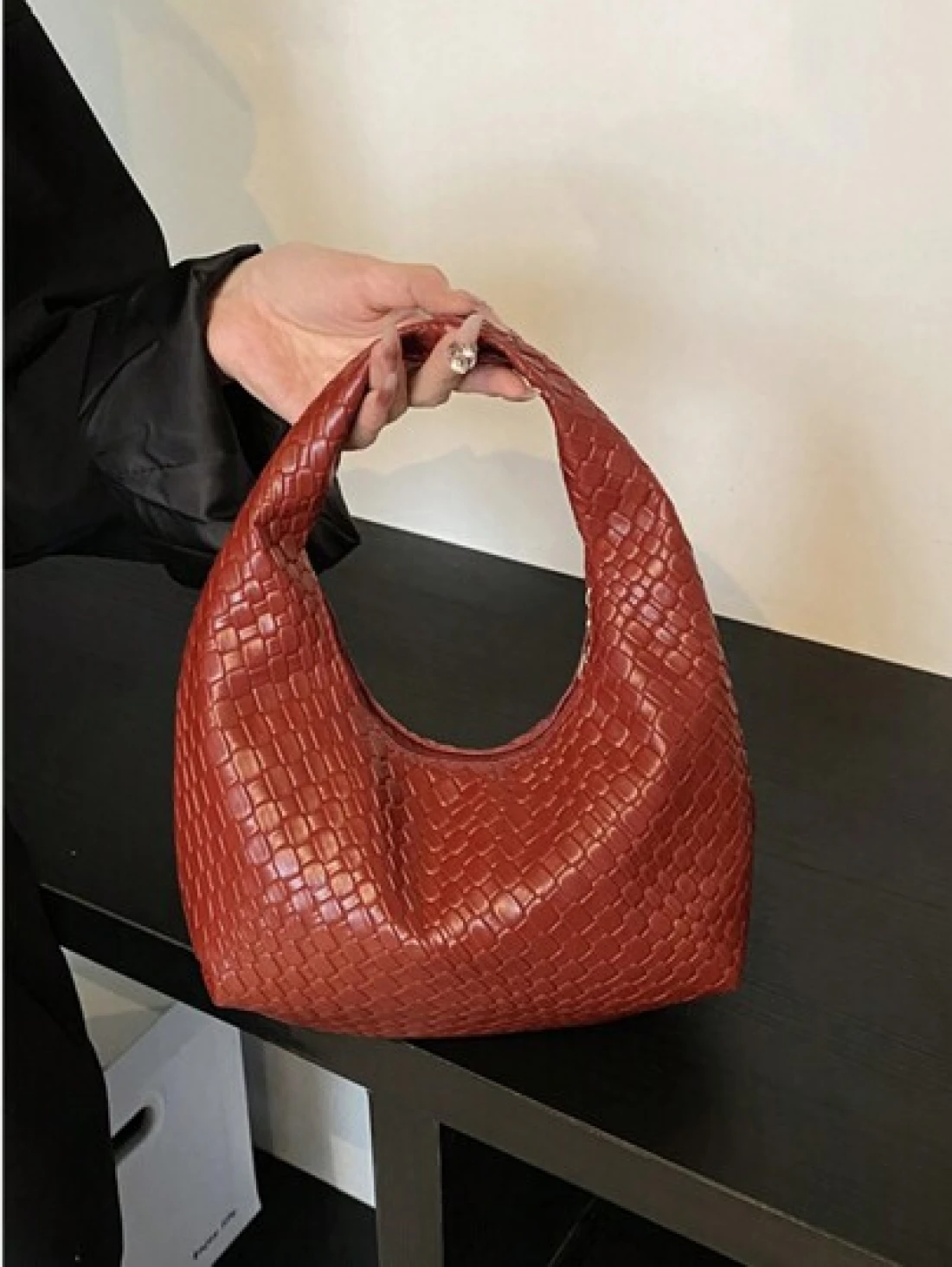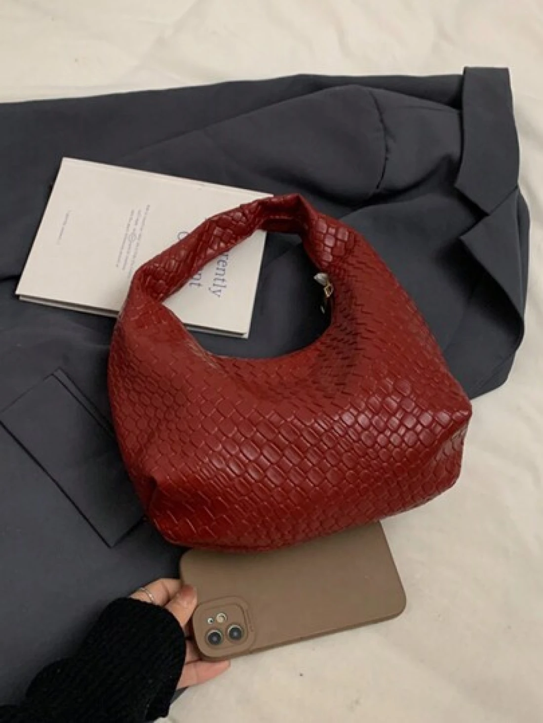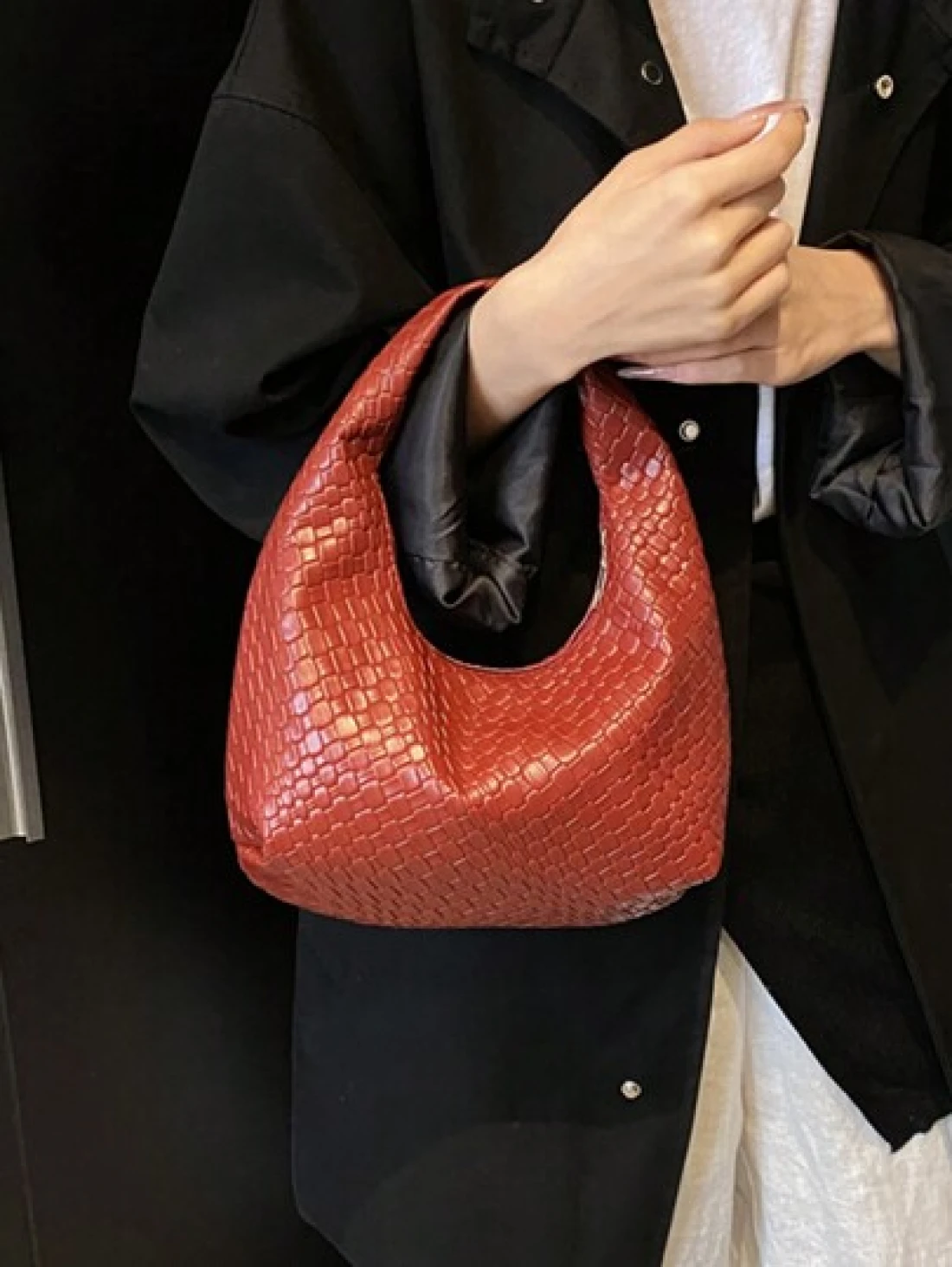 حقيبة كروشيه هلالية الشكل عصرية ذات نقشات منسوجة، حقيبة كاجوال ذات لون موحد، حقيبة كتف متقاطعة الجسم، متعددة الاستخدامات للعمل والتنقل