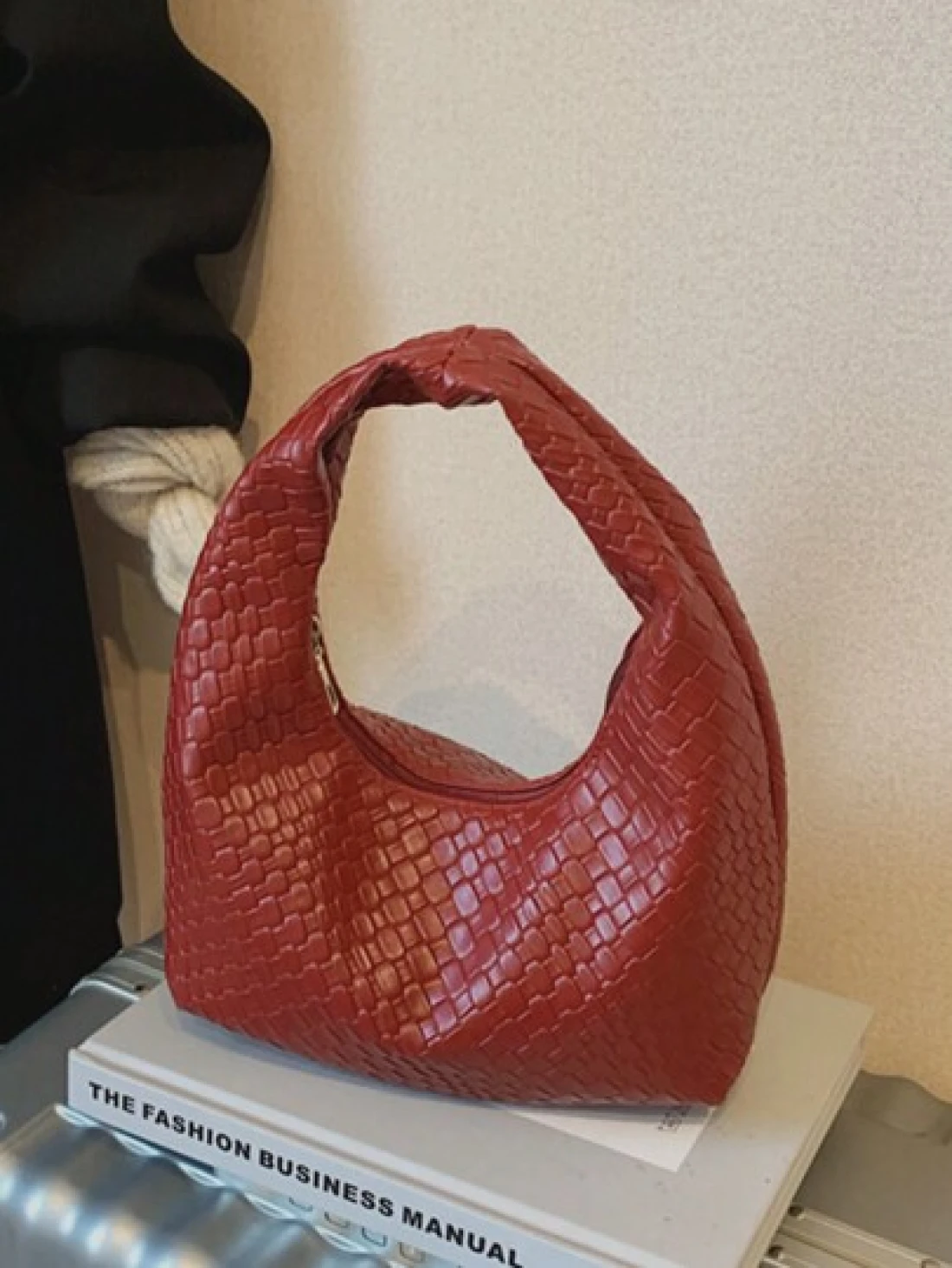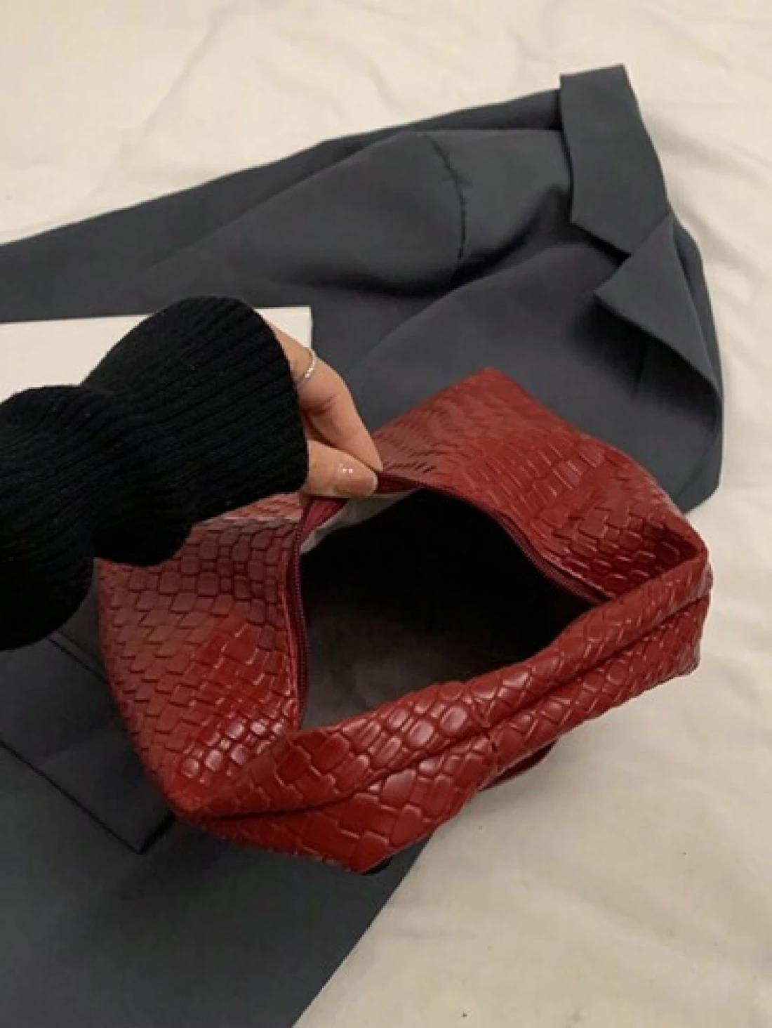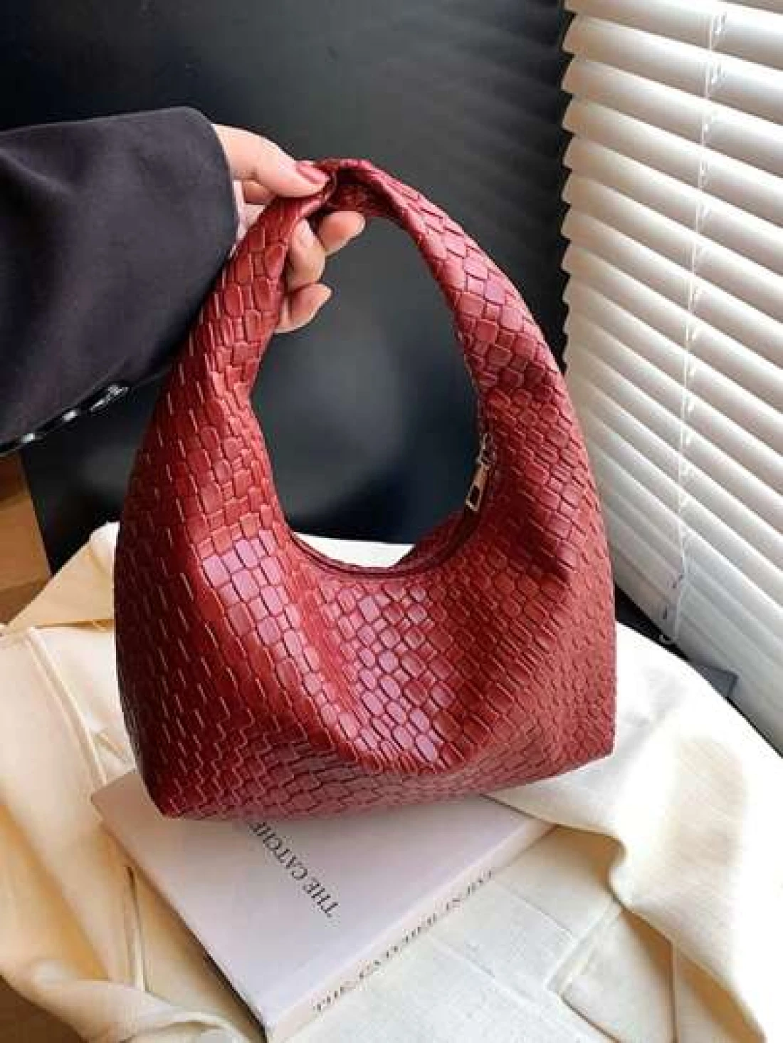 حقيبة كروشيه هلالية الشكل عصرية ذات نقشات منسوجة، حقيبة كاجوال ذات لون موحد، حقيبة كتف متقاطعة الجسم، متعددة الاستخدامات للعمل والتنقل