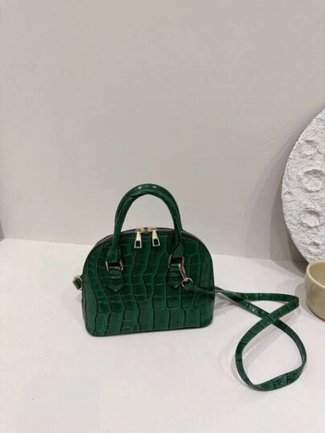 حقيبة يد محبوكة ومزينة بذوق، على شكل صدف بحرية وعشب محبوك وديكور شبكي جذاب للنساء،حقيبة كتف مثالية. مصنوعة من بولي يوريثين ومواد محبوكة وشبكية