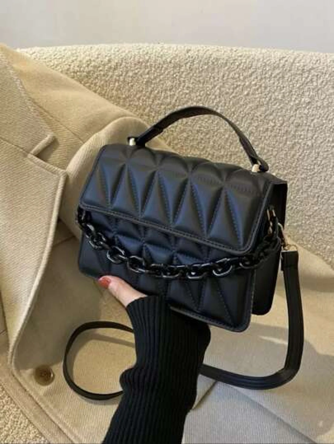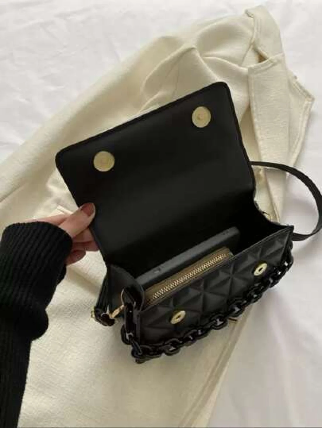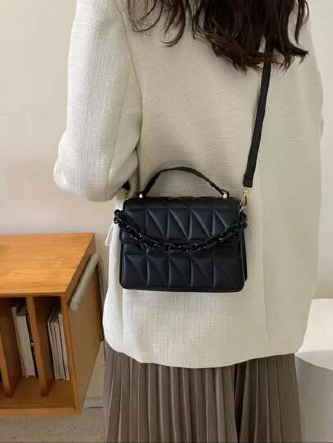 حقيبة منقوشة ذات سلسلة صغيرة للنساء