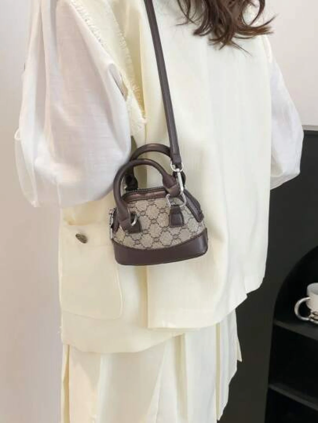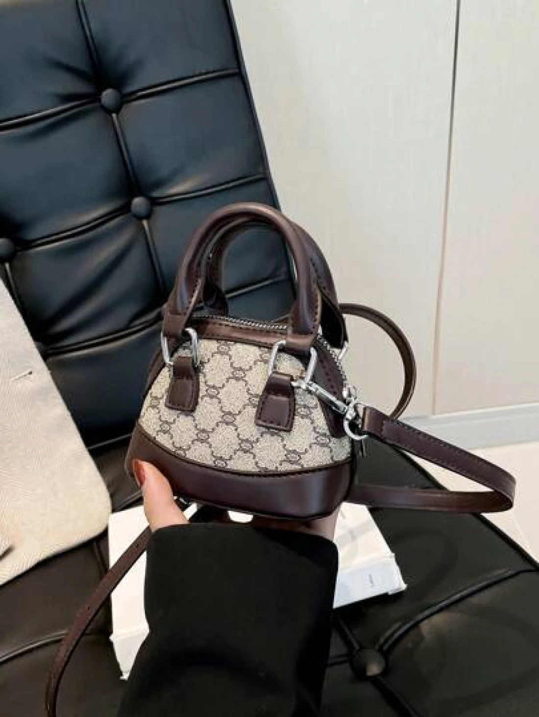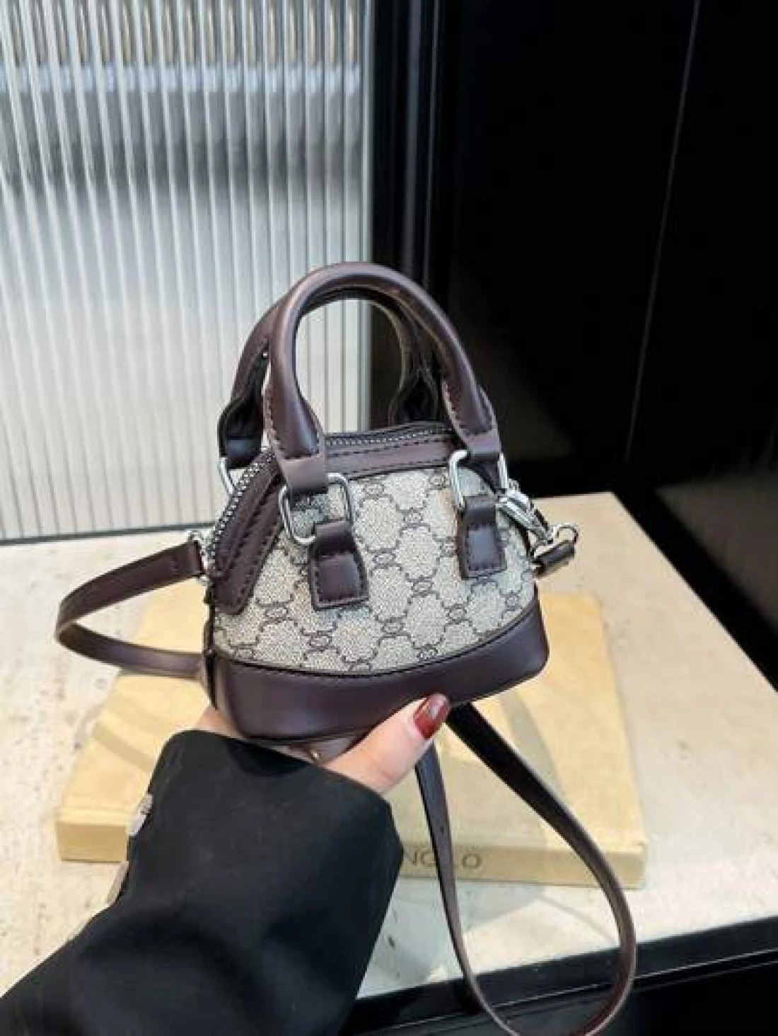 حقيبة يد صغيرة ، لون داخلي منقوش بشكل معين بأسلوب عتيق بشكل صدفة فينتاج