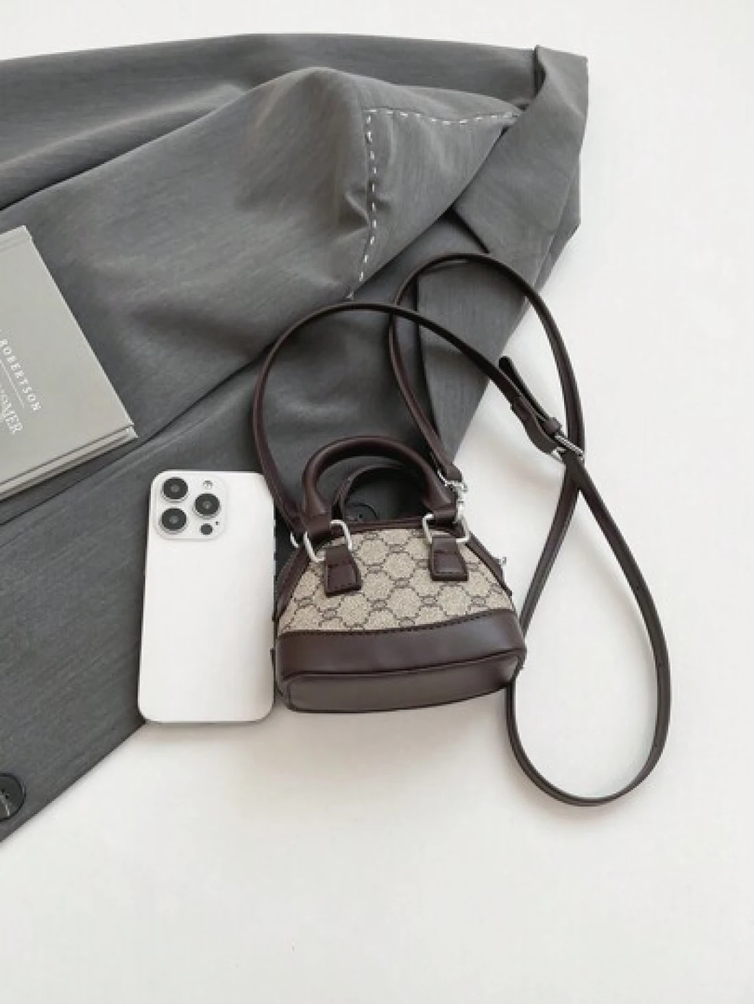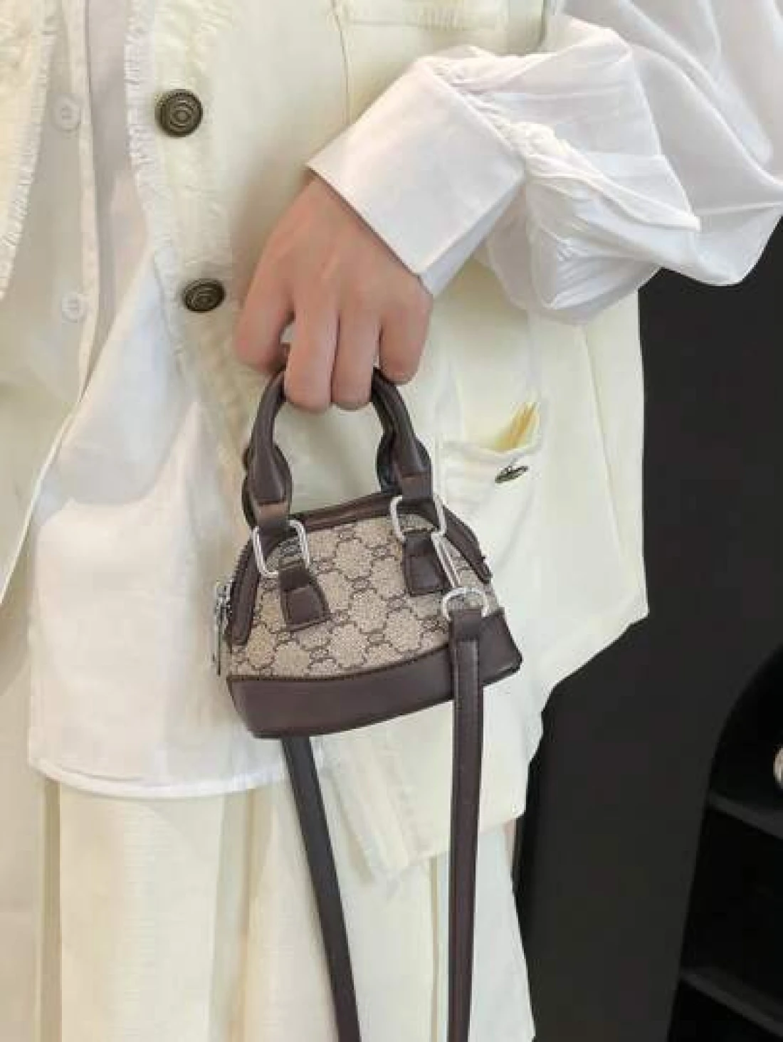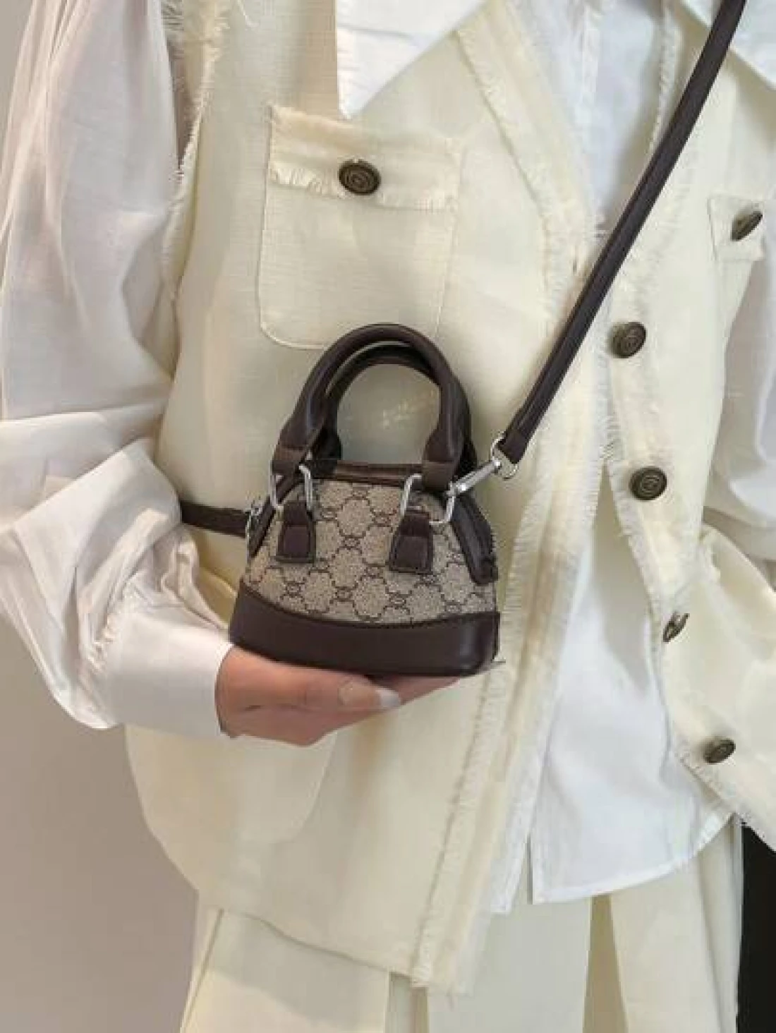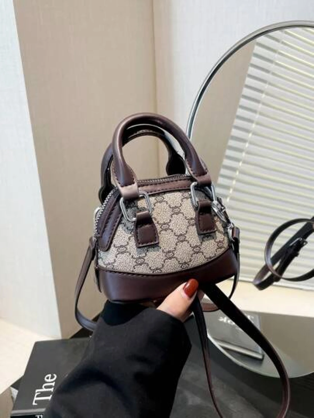 حقيبة يد صغيرة ، لون داخلي منقوش بشكل معين بأسلوب عتيق بشكل صدفة فينتاج