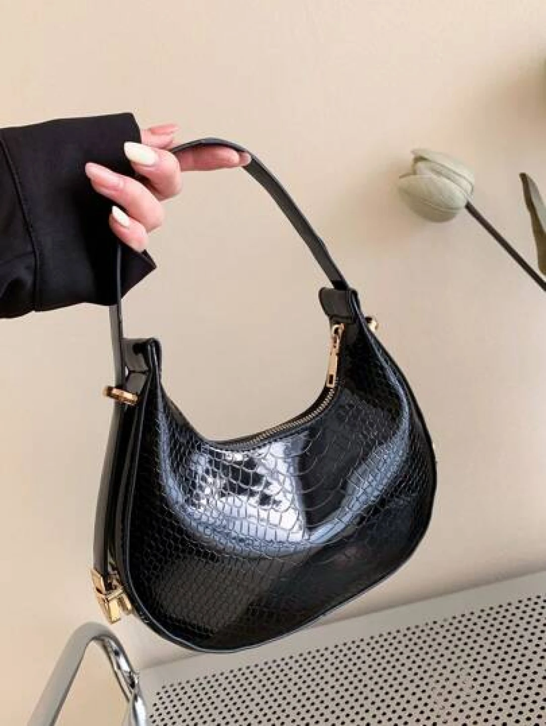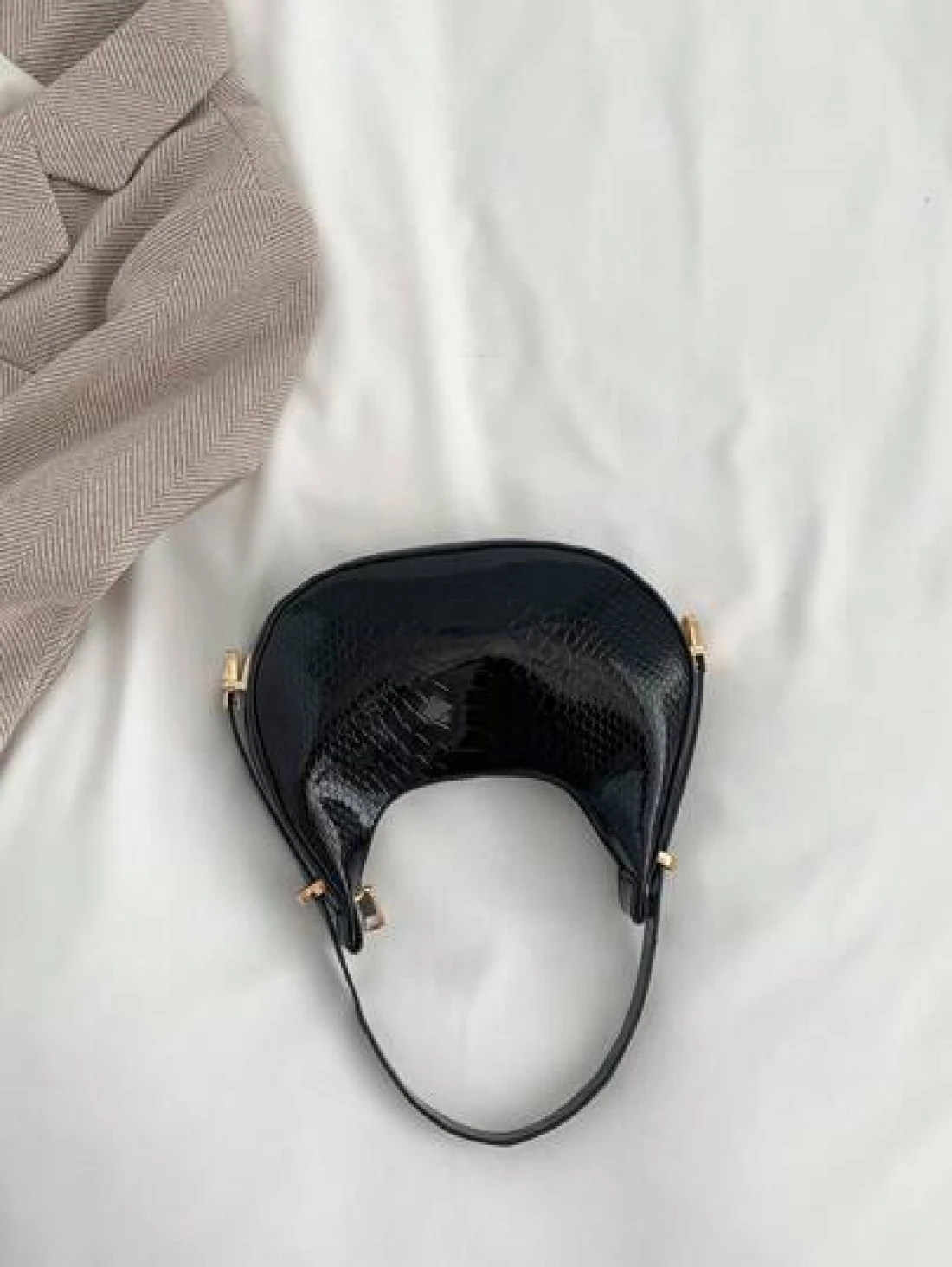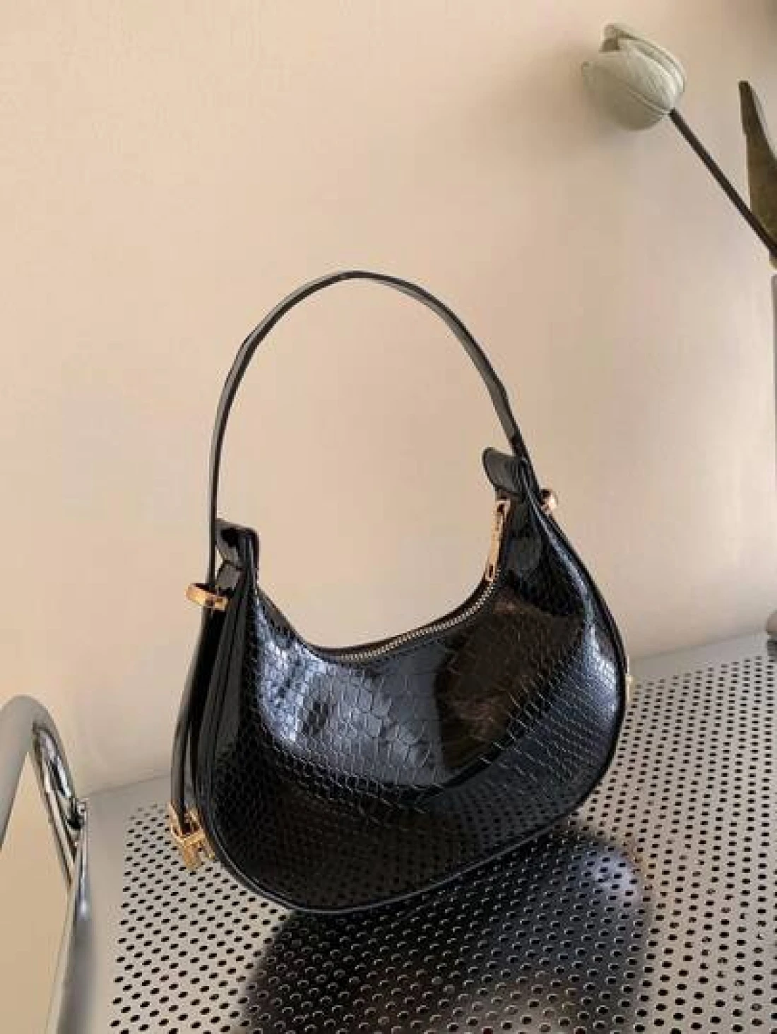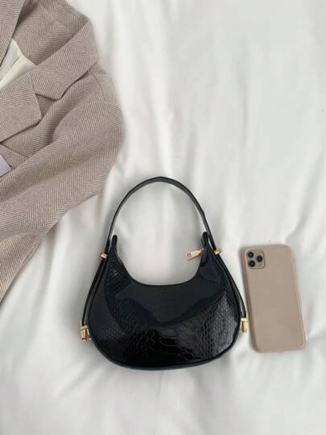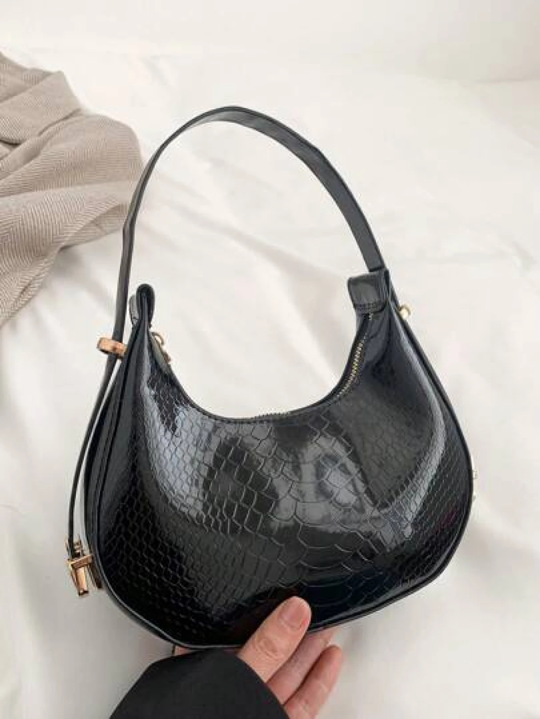 حقيبة هوبو منقوشة بجلد الثعبان المعدني بلون صلب، حقيبة كتف منقوشة بجلد التمساح ، حقيبة باقيت صيحة الموضة، حقيبة تحت الإبط بسيطة