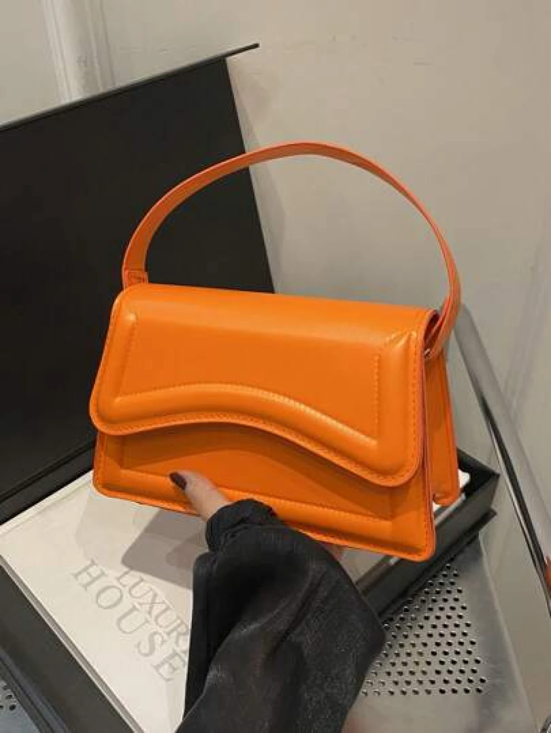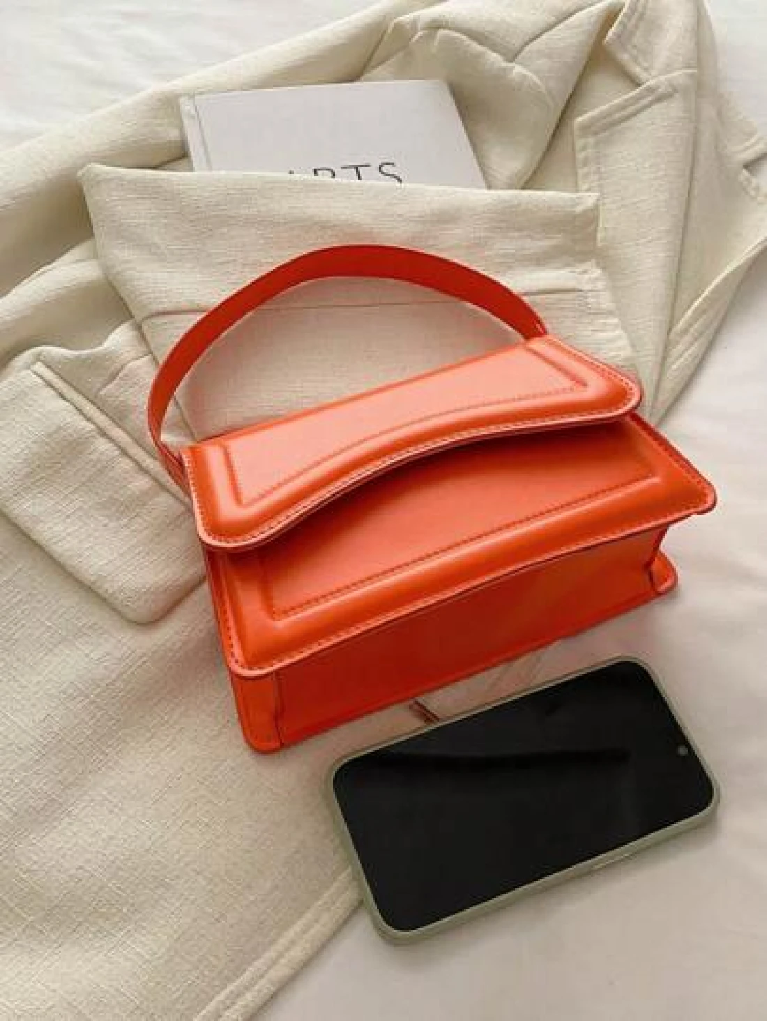 حقيبة مربعة صغيرة من الجلد الصناعي اللون البرتقالي للسيدات، حقيبة يد بسيطة وأنيقة للخروج، موضة متعددة الاستخدامات