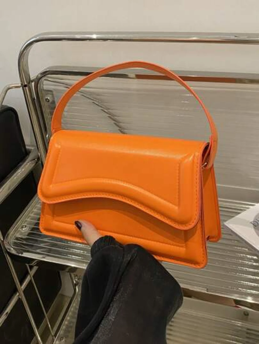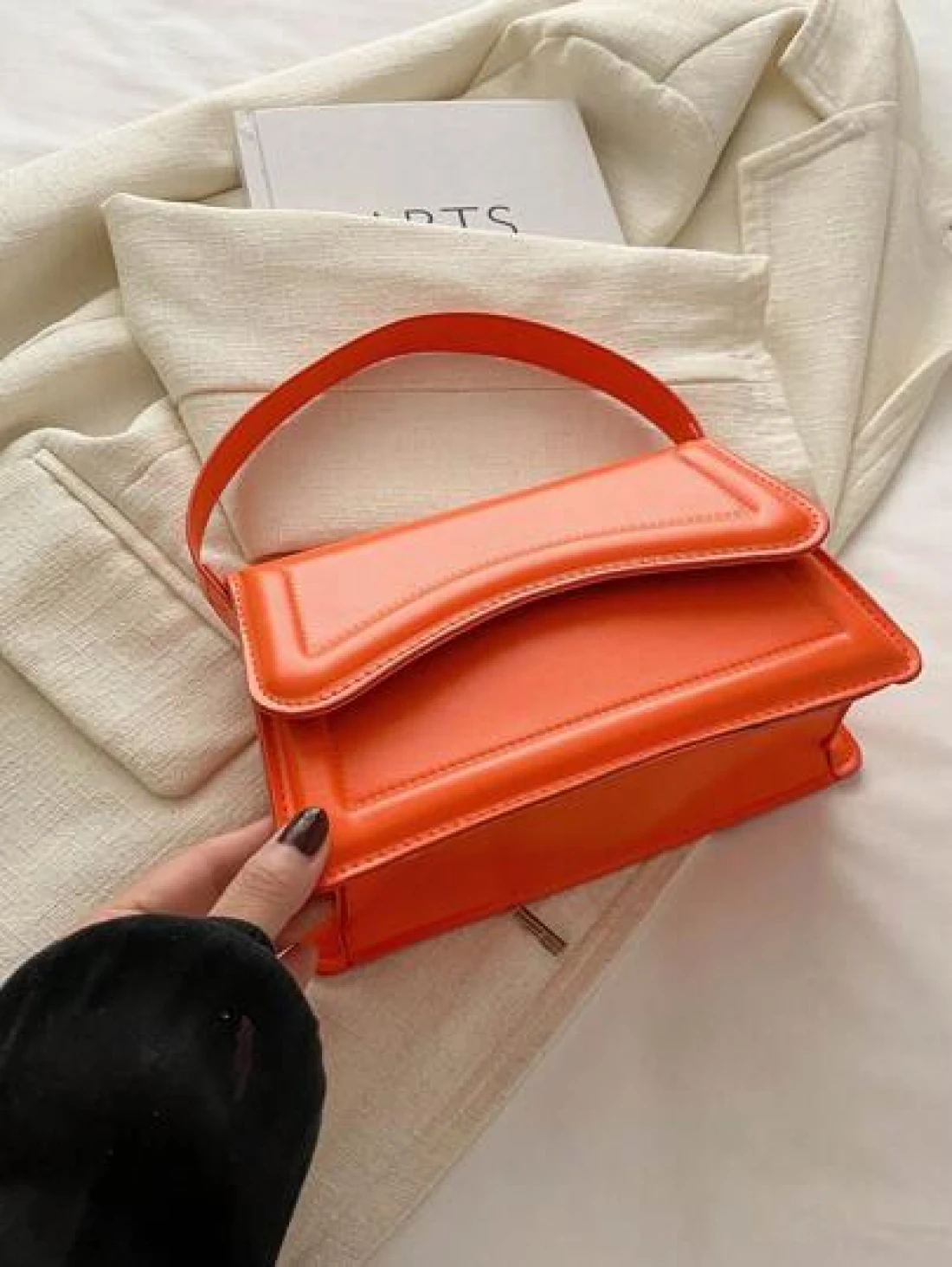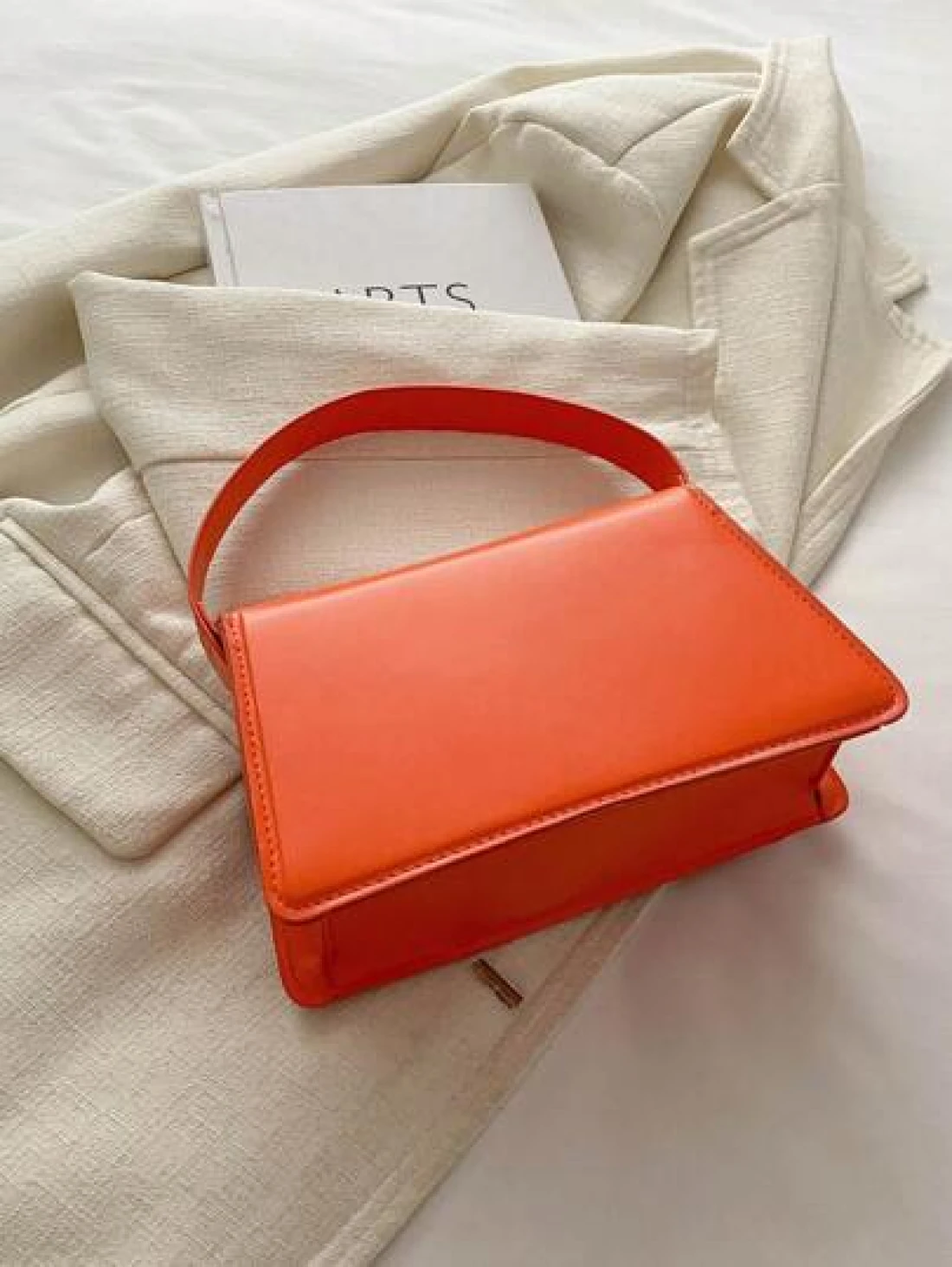 حقيبة مربعة صغيرة من الجلد الصناعي اللون البرتقالي للسيدات، حقيبة يد بسيطة وأنيقة للخروج، موضة متعددة الاستخ