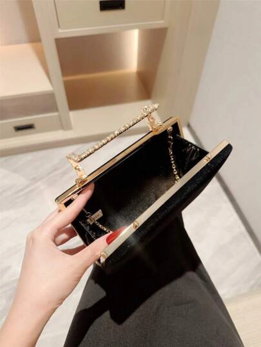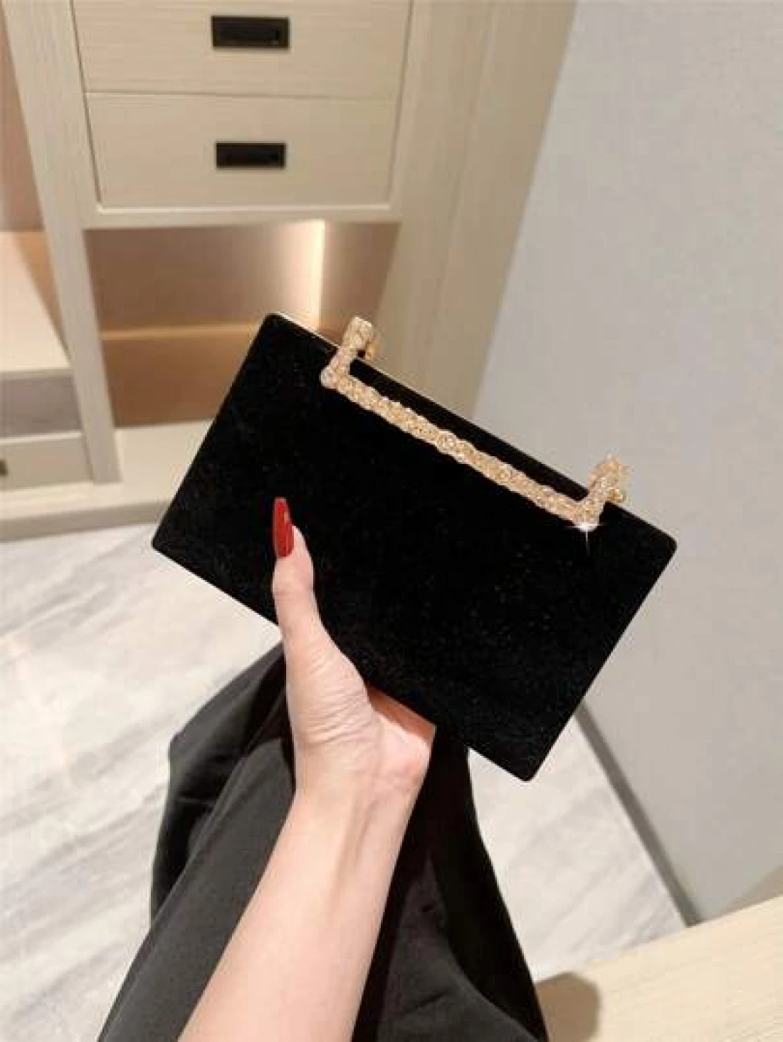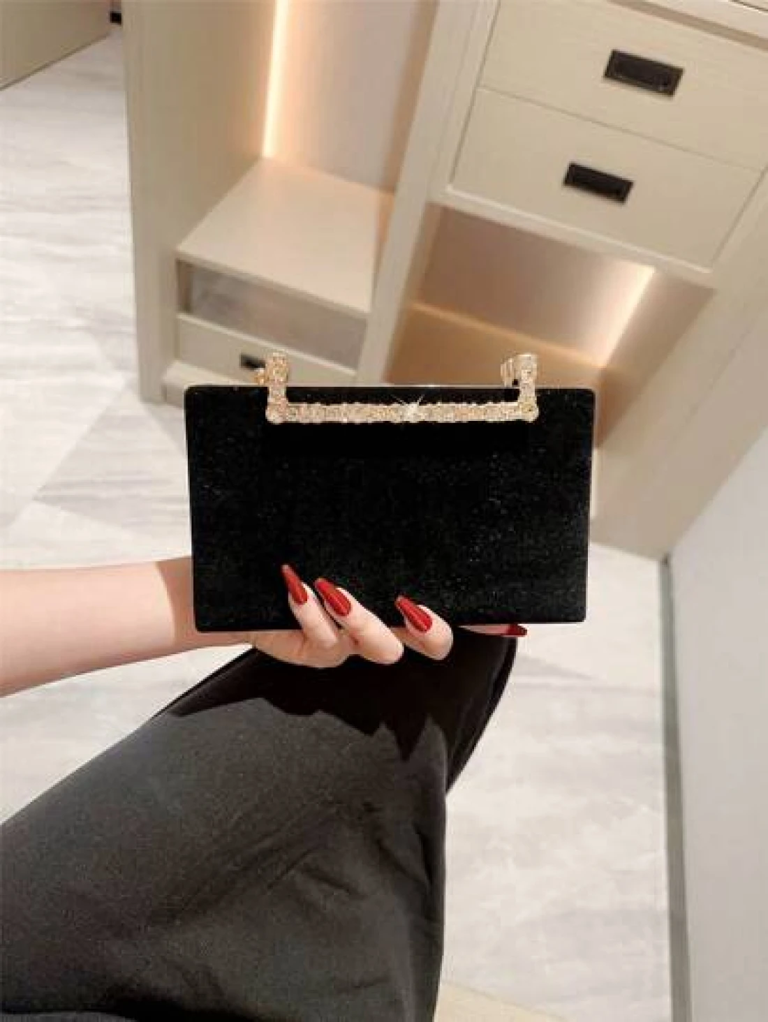 1pc Velvet Box Clutch Bag Glittery Metal Crystal Decor Evening Bag For Gown Formal Party Wedding Bridal Purse Crossbody Bag