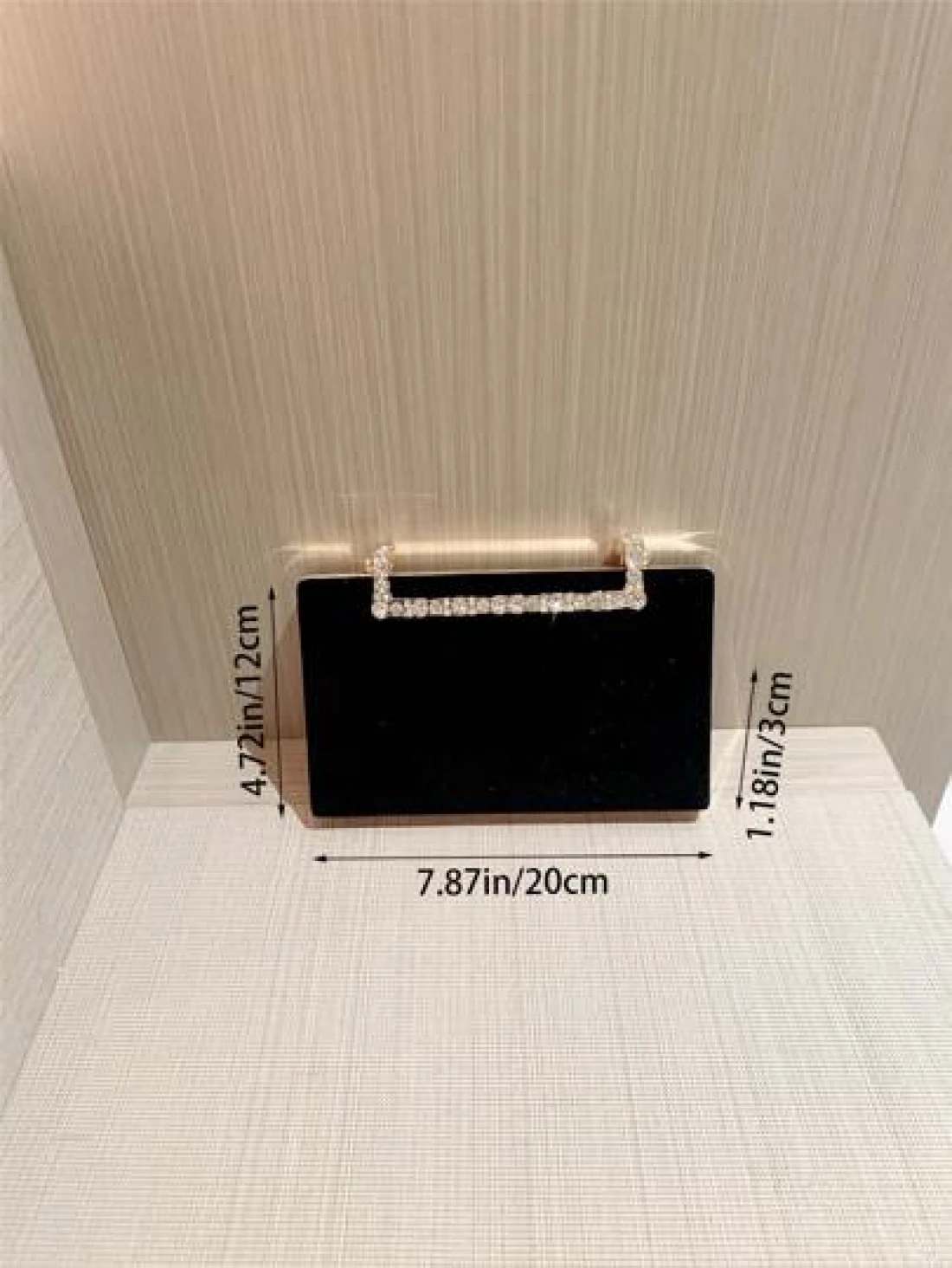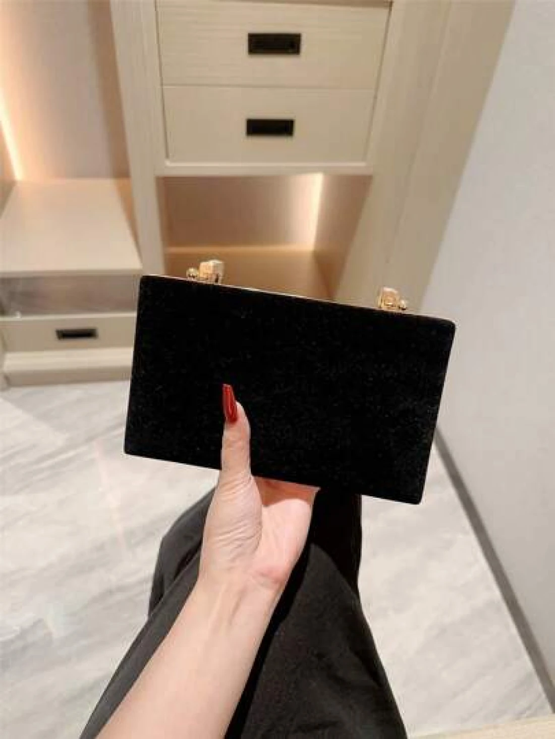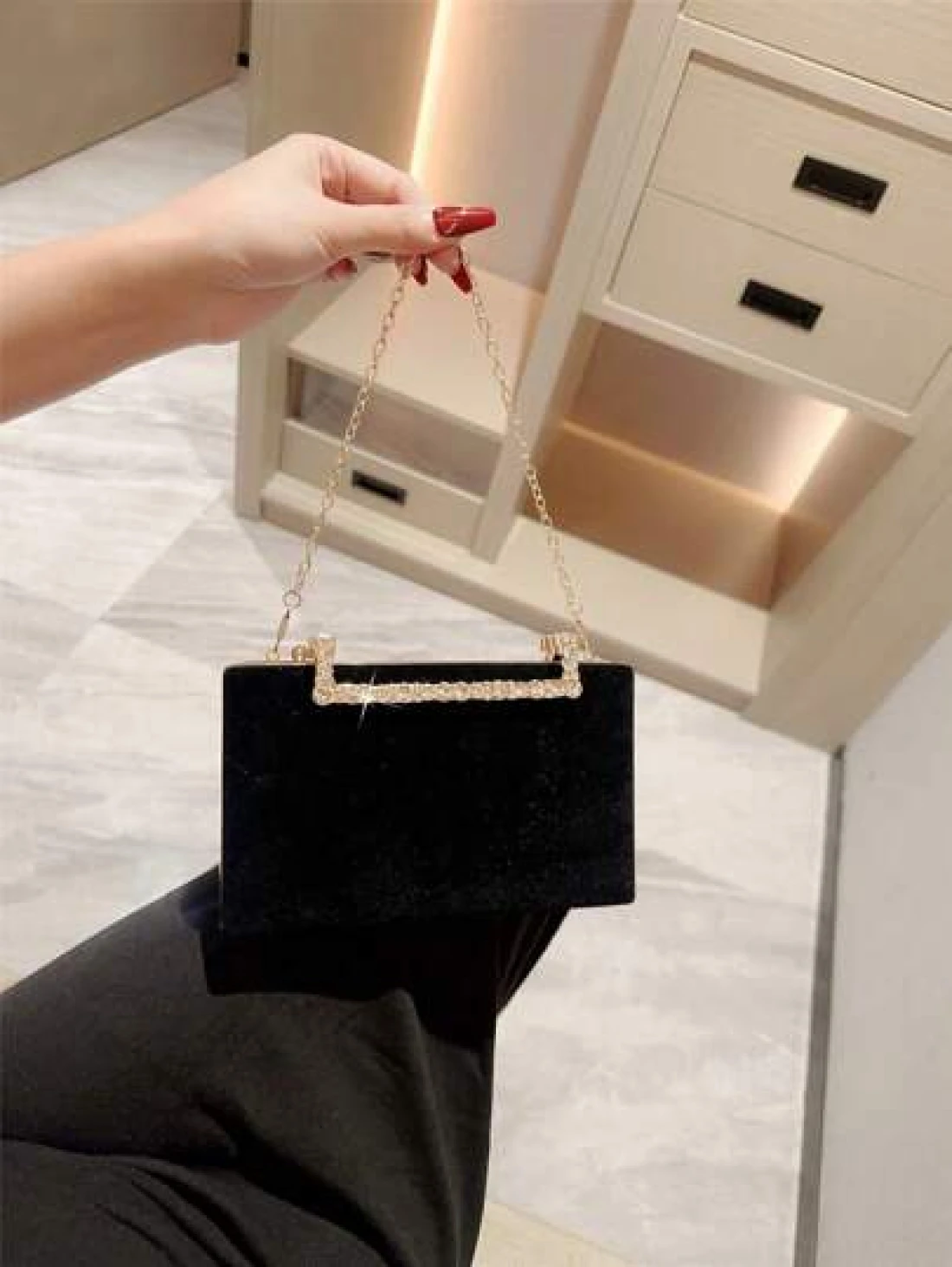 1pc Velvet Box Clutch Bag Glittery Metal Crystal Decor Evening Bag For Gown Formal Party Wedding Bridal Purse Crossbody Bag