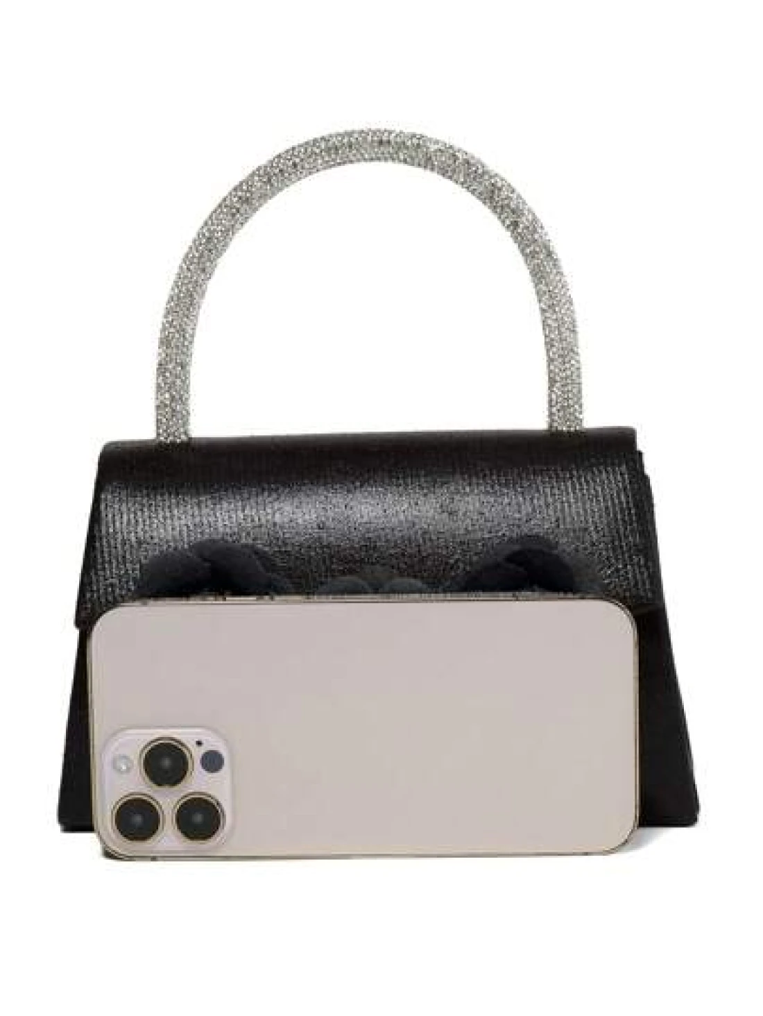 1 قطعة حقيبة يد مسائية مرصعة بالأحجار الكريمة على المقبض للإمساك المريح، تحتوي على الضروريات مثل الهاتف والأحمر الشفاه ومساحيق التجميل ومفتاح السيارة، مناسبة للمناسبات الرسمية بنسيجها المخملي الأسود الفاخر والأحجار الكريمة الرائعة