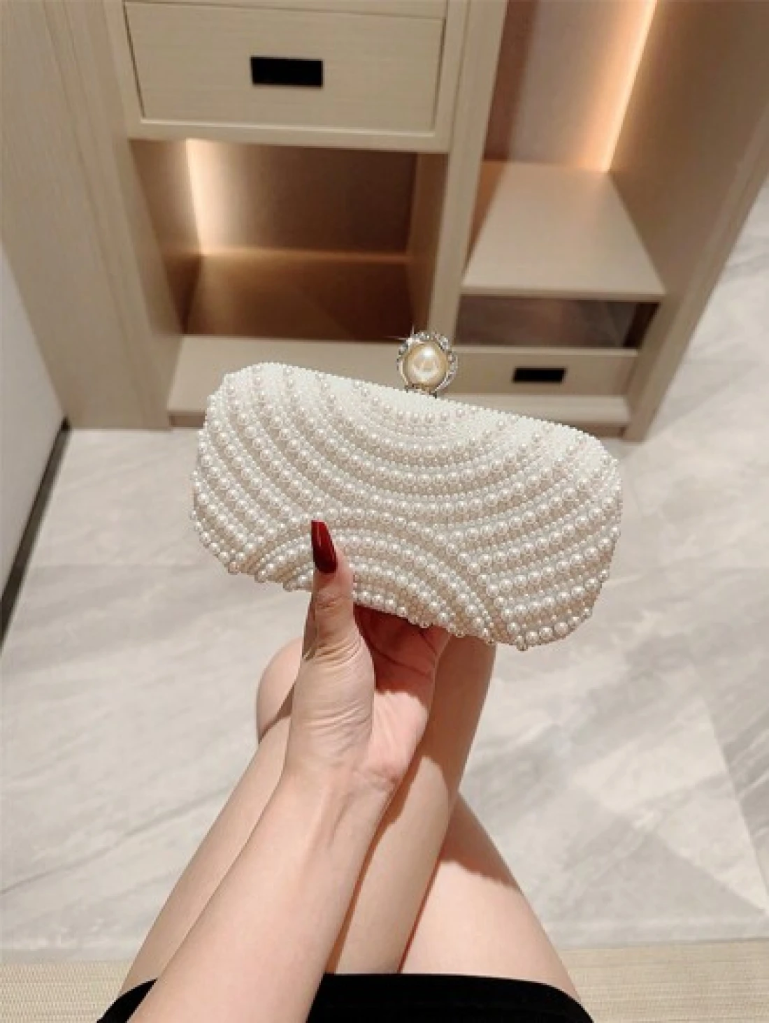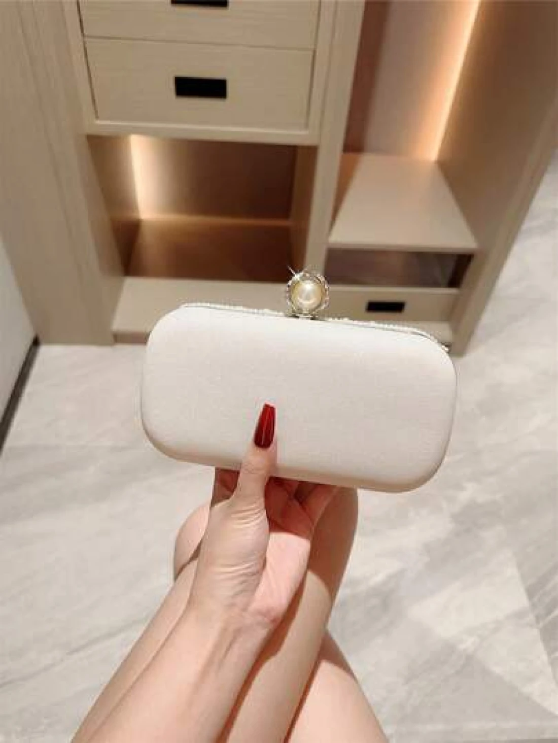 1 حقيبة سهرة مساء أنيقة على شكل صندوق لؤلؤية صناعية، حقيبة يد رومانسية بيضاء لحفل الزفاف، ديكور راقي من الأحجا