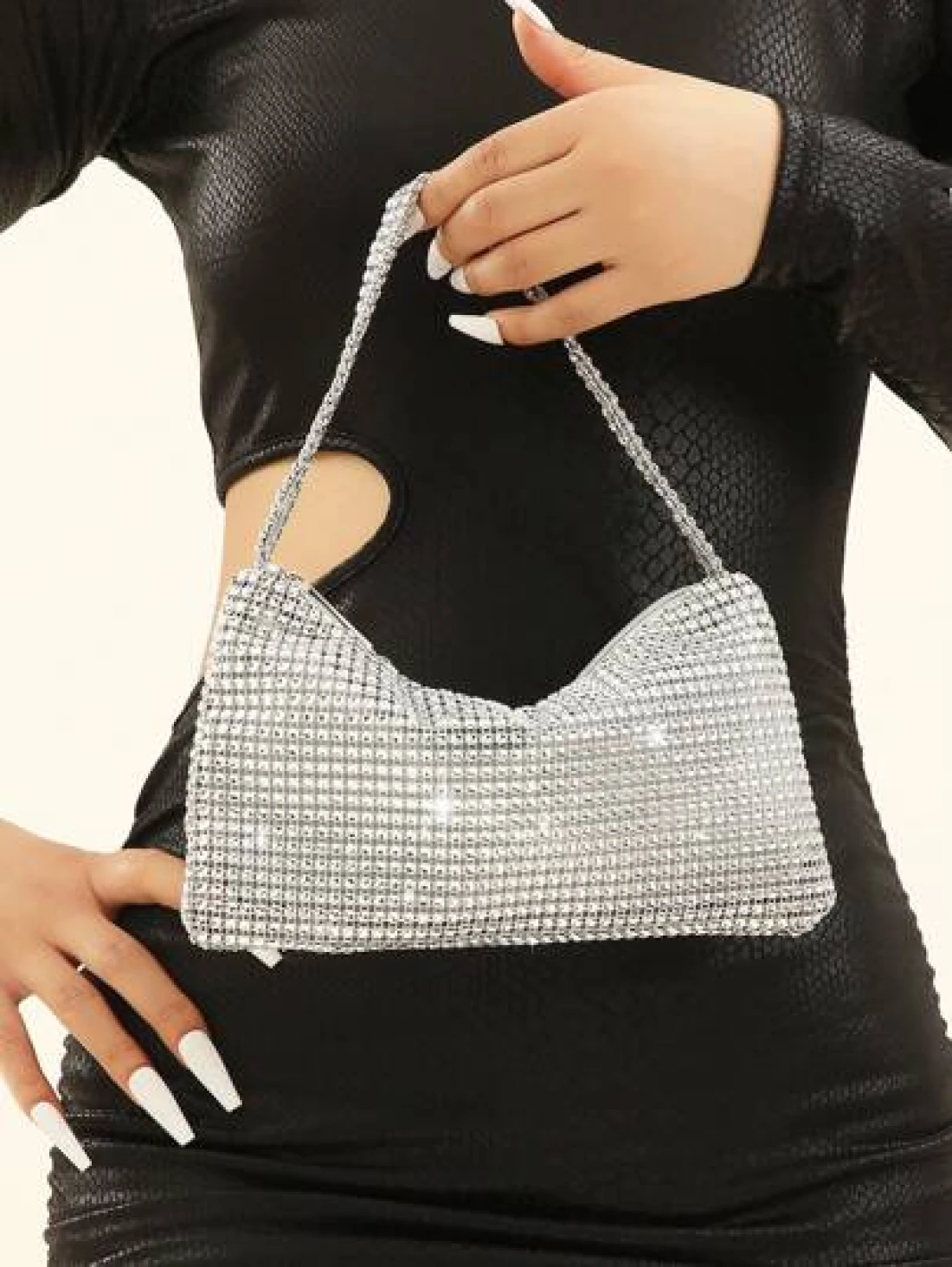 Silver Sparkly Faux Rhinestone Plastic Clutch Bag With Zipper Perfect For Parties Gatherings And Wedding Ceremonies Glamorous Rhinestone Bag