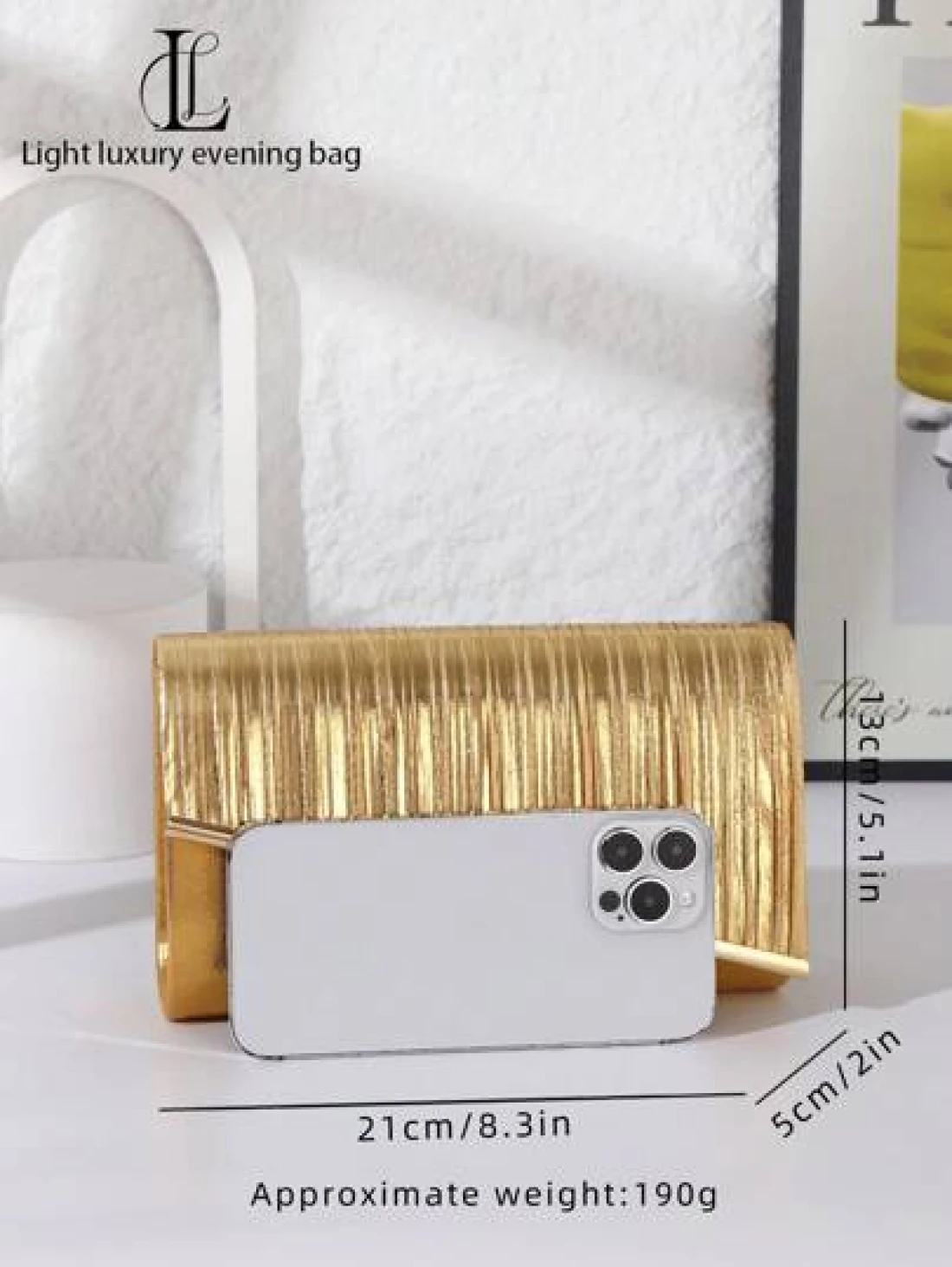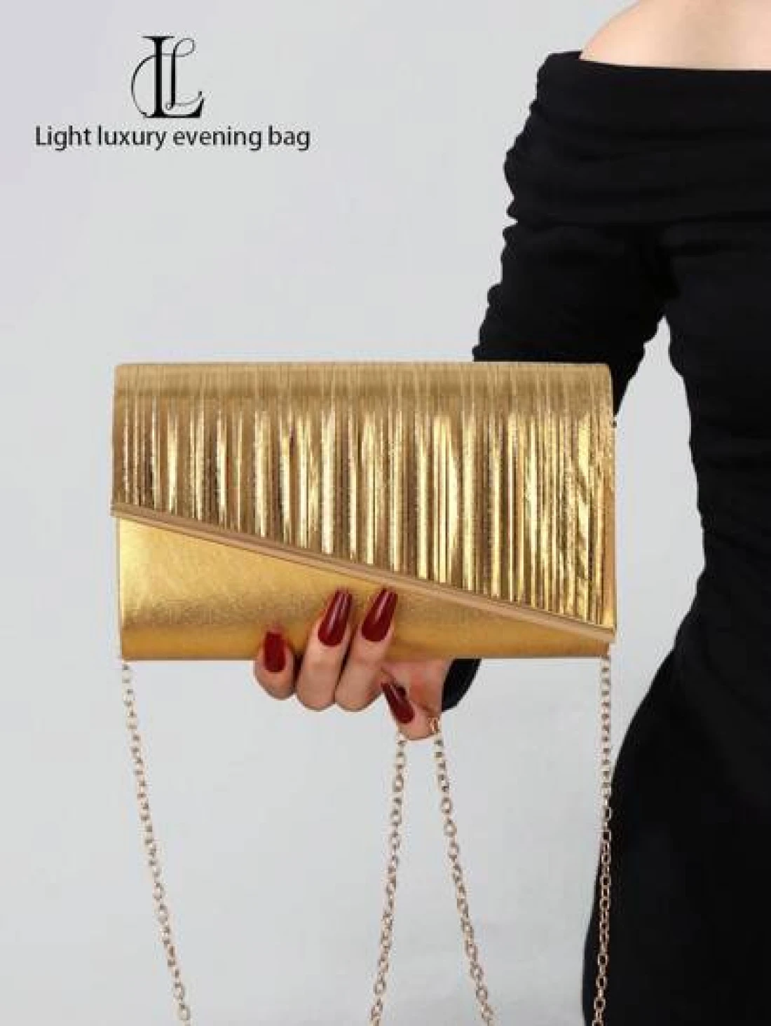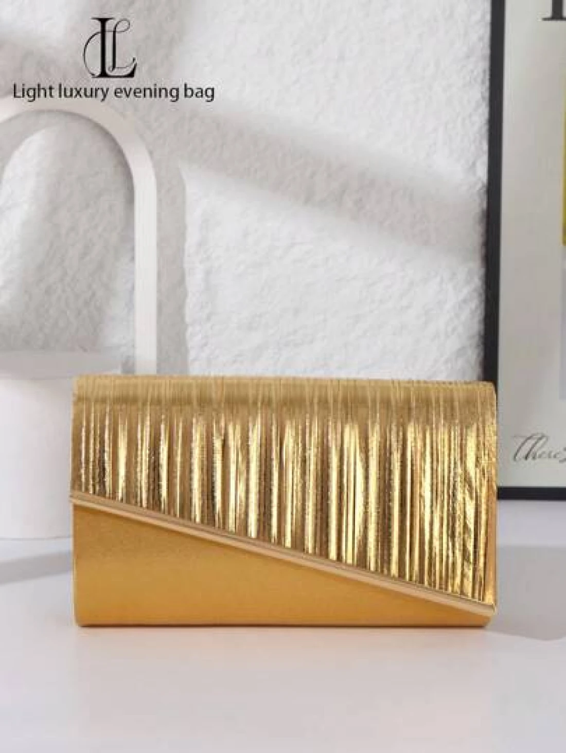1 قطعة حقيبة سهرة مثالية وأنيقة للنساء، مذهبة وذات طيات لامعة، مزينة بخطوط معدنية، حقيبة متعددة الاستخدامات مناسبة للسيدات المحترمات، مناسبة للزفاف والحفلات الراقصة والنوادي الليلية وحفلات عيد الميلاد ومطابقة للفساتين الرسمية، وكذلك كحقيبة مستحضرات التجميل وحافظة نقود