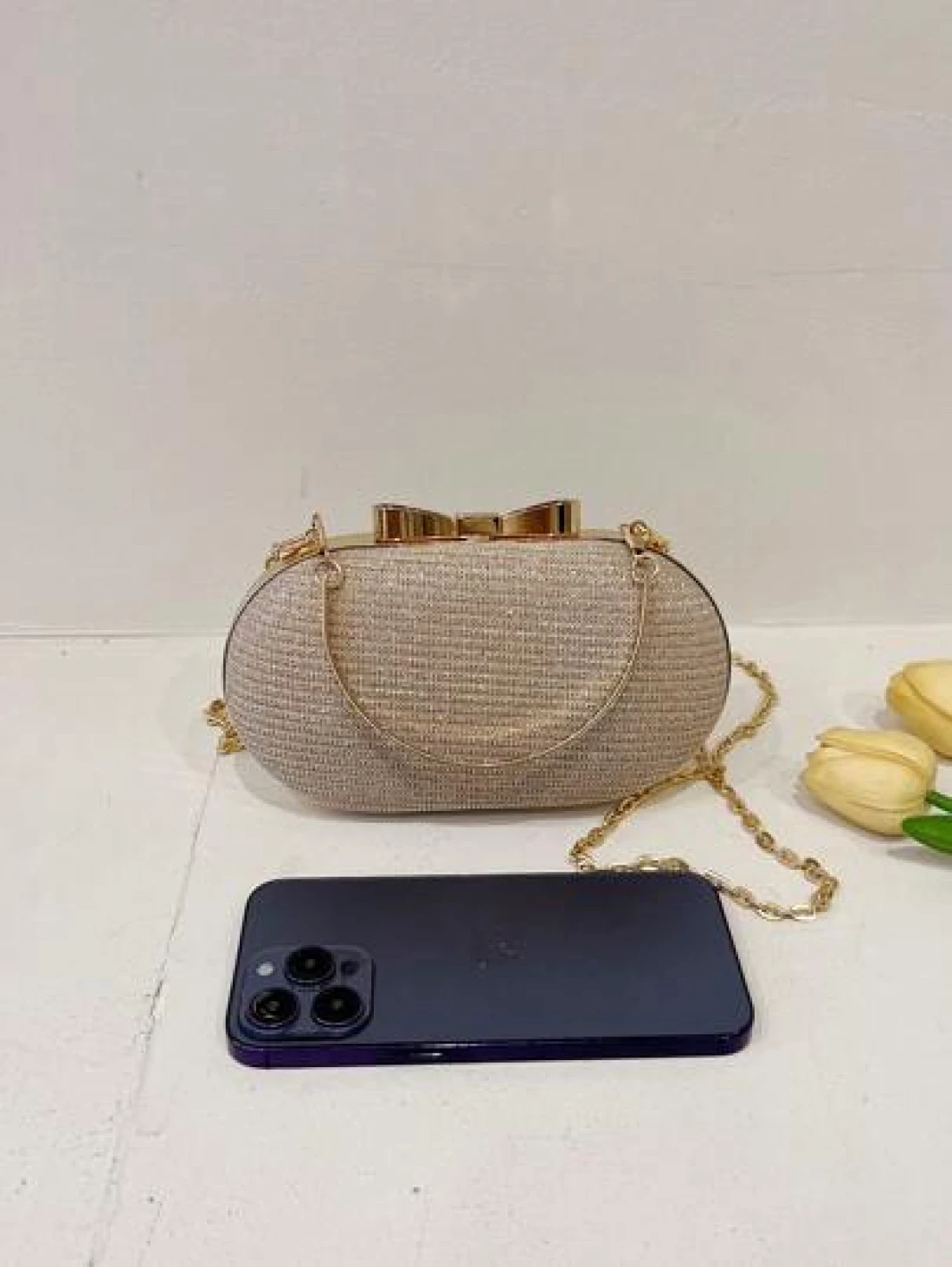 حقيبة مسائية أنيقة وعصرية صغيرة / حقيبة كلاتش لامعة / حقيبة مسائية لامعة مرصعة بالراين ، سلسلة معدنية ، حقيبة ذ