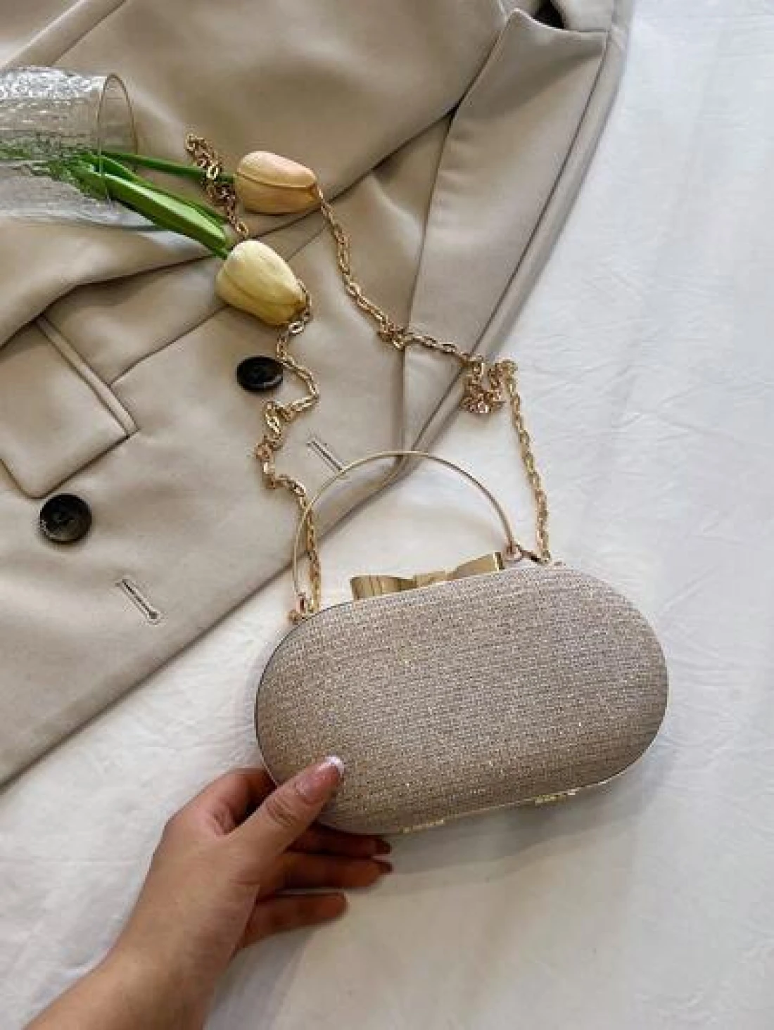 حقيبة مسائية أنيقة وعصرية صغيرة / حقيبة كلاتش لامعة / حقيبة مسائية لامعة مرصعة بالراين ، سلسلة معدنية ، حقيبة ذهبية لحفل الزفاف ، حقيبة كتف وحقيبة يد للسيدات ، أكياس حفلة صاخبة ، مثالية للحفلات والزفاف والكرنفال والعشاء