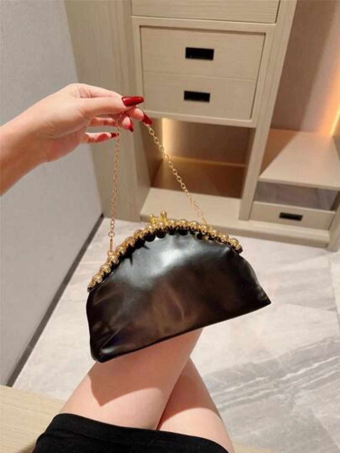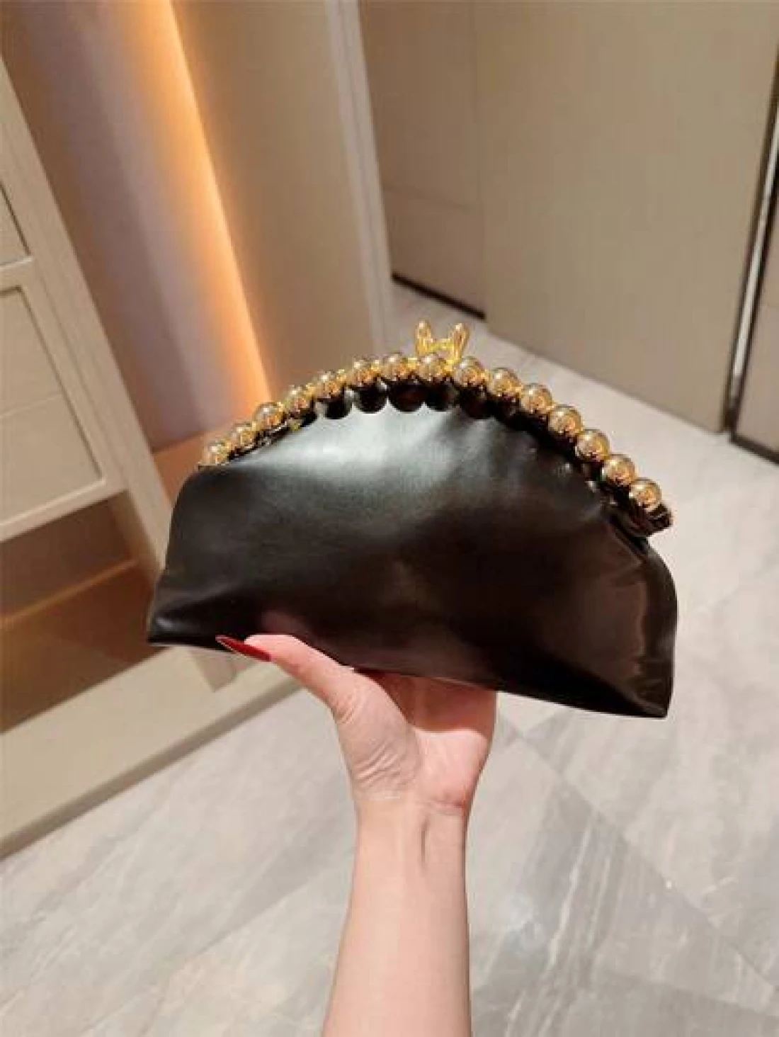 Moonlit Eve Bag 1pc Fashion Metal Sphere Decor Party Handbag European American Style Luxury Leather Clutch Purse Elegant Sophisticated Wedding Gala Bag Suitable For Wedding Prom Formal Events Formal D