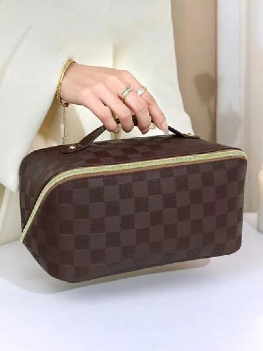 1Pc Travel Makeup Bag PU Waterproof Beauty Storage Box Multi Compartment Toiletries Bag Portable Perfume Storage Box Organizing And Storing Storage Bag Multi Functional Travel Toiletries Bag For Stori