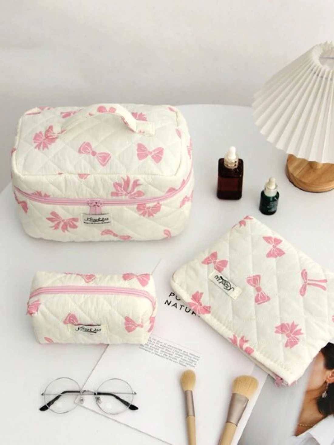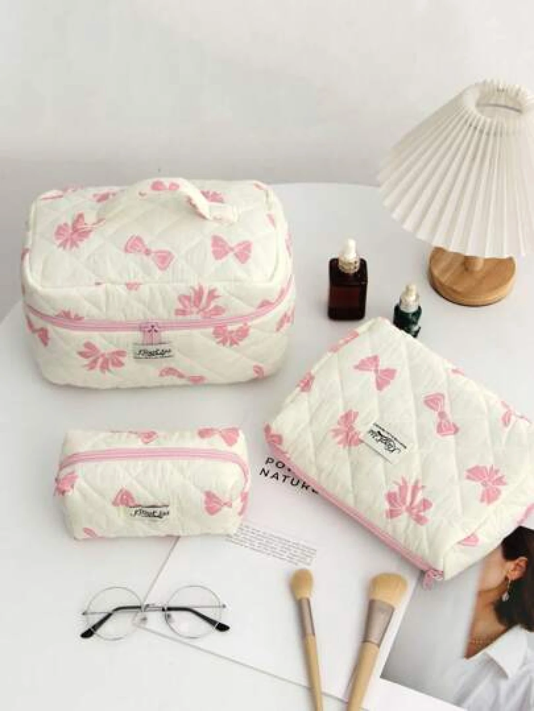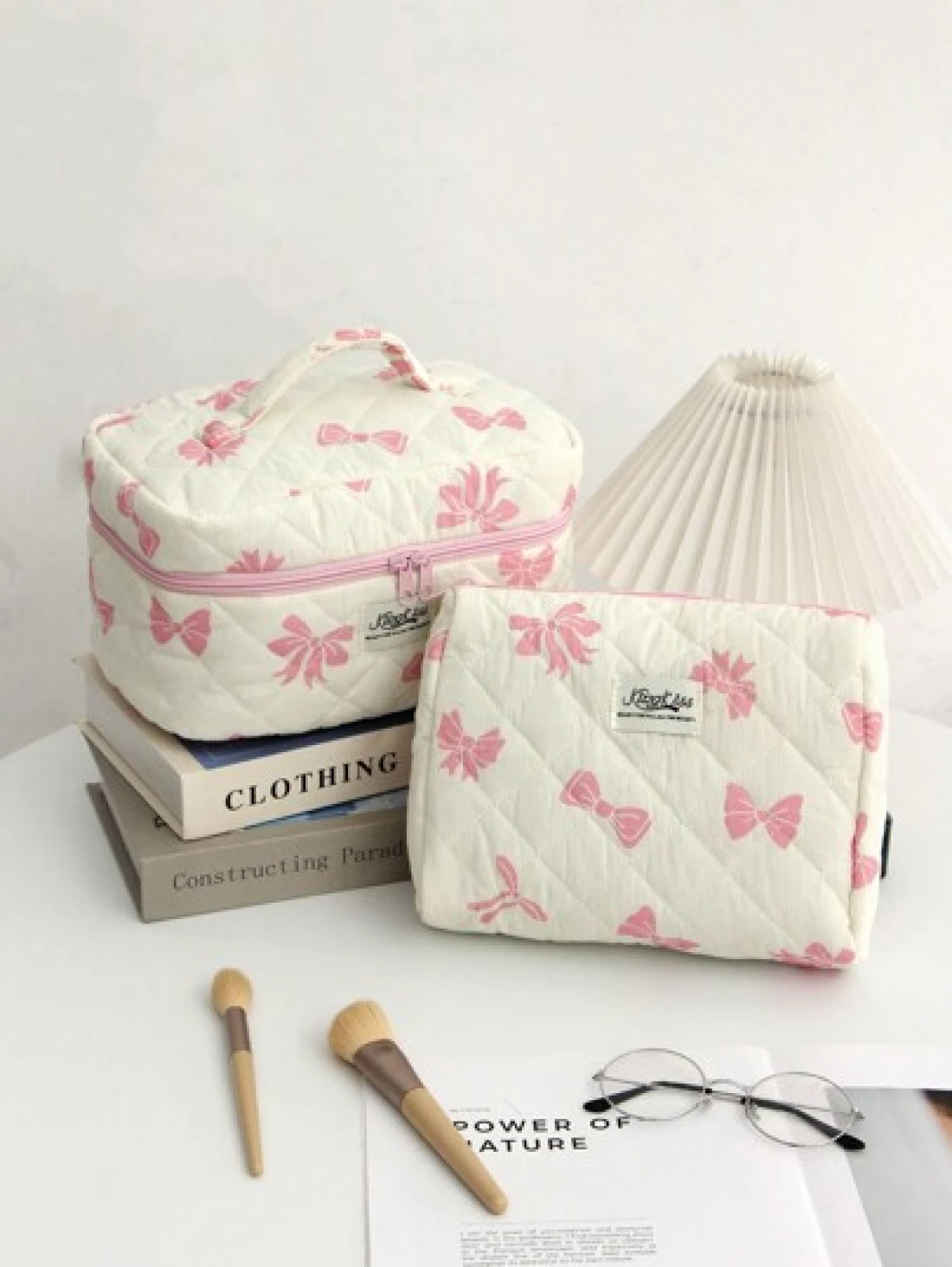 قطعة واحدة حقيبة مستحضرات تجميل محمول بمقبض مبطن بقماش كبيرة السعة للنساء لتخزين مستحضرات التجميل والفرش، منظم للمكياج، أساسيات السفر، حقيبة أدوات التجميل للحمام، للكلية ودورمات، هدية عيد الميلاد والعطلات الصيفية والسفر والإجازات والزفاف
