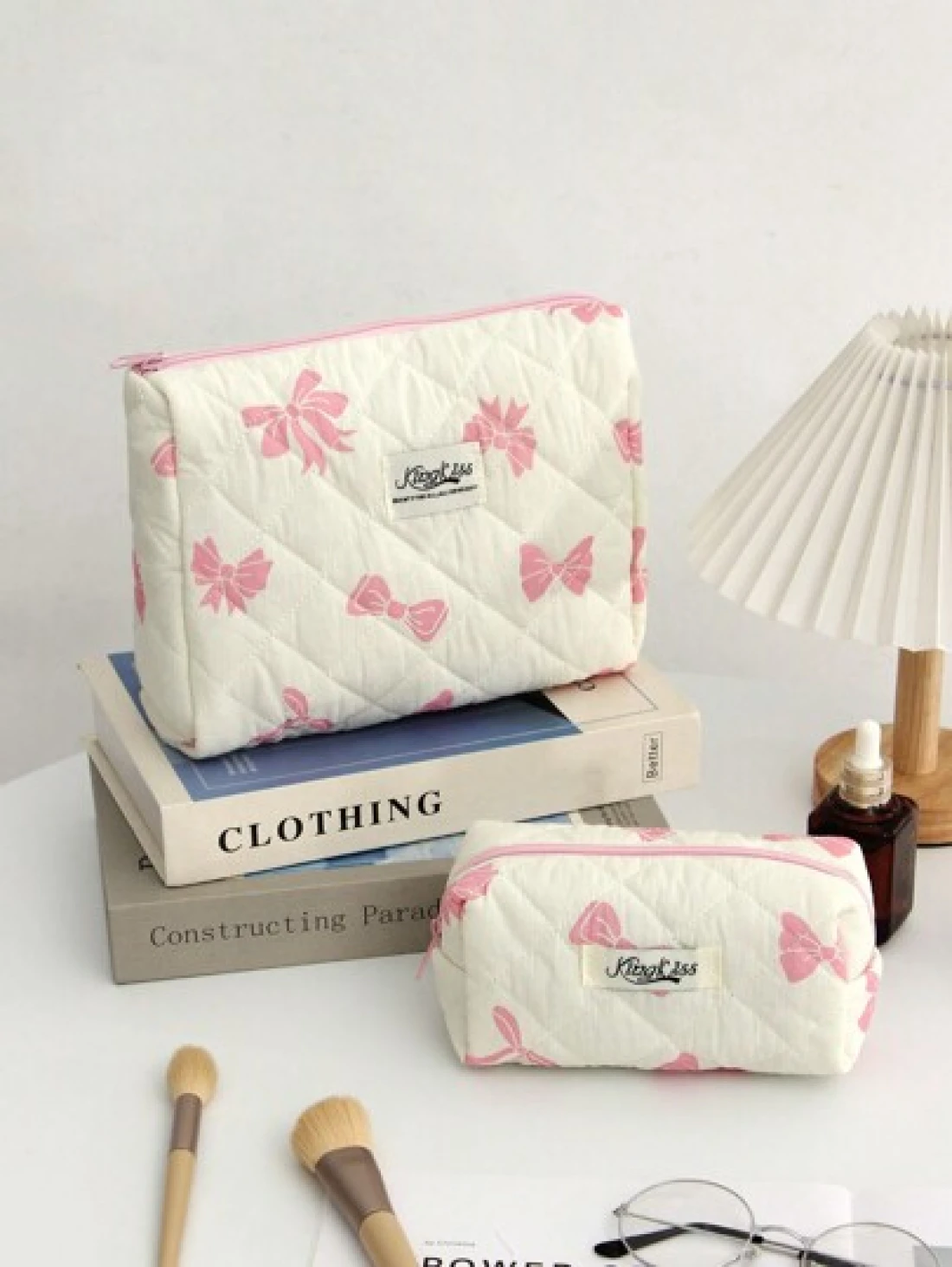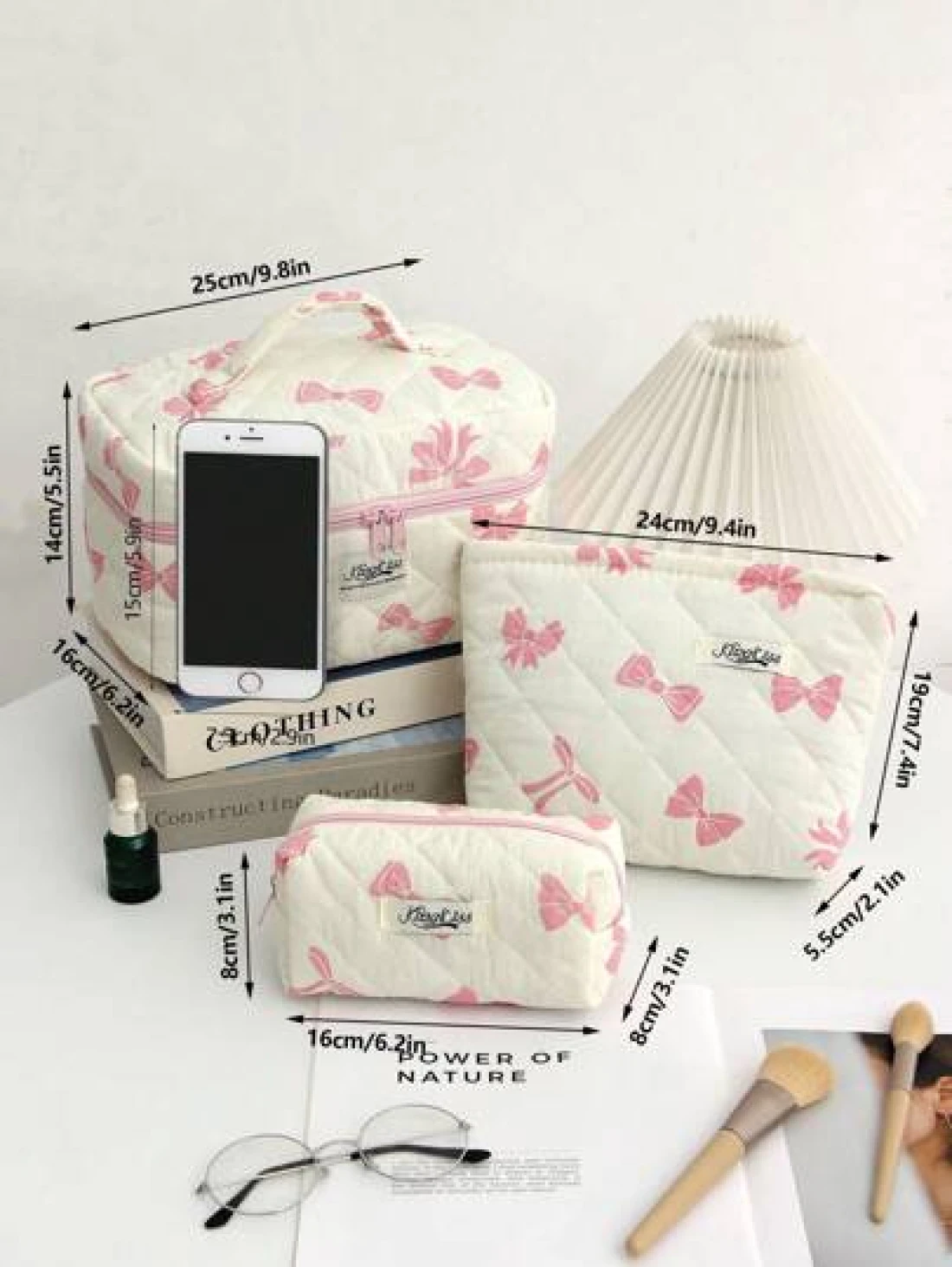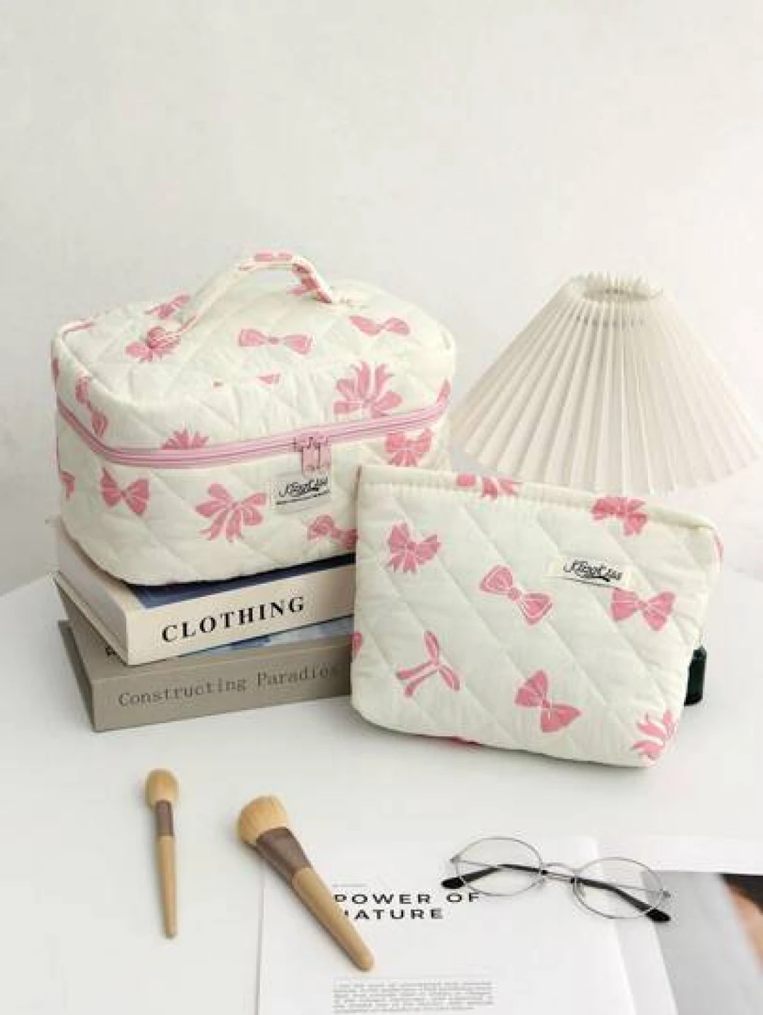قطعة واحدة حقيبة مستحضرات تجميل محمول بمقبض مبطن بقماش كبيرة السعة للنساء لتخزين مستحضرات التجميل والفرش، من