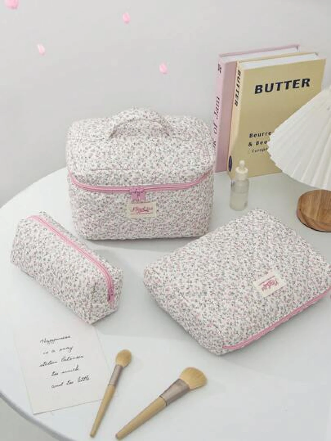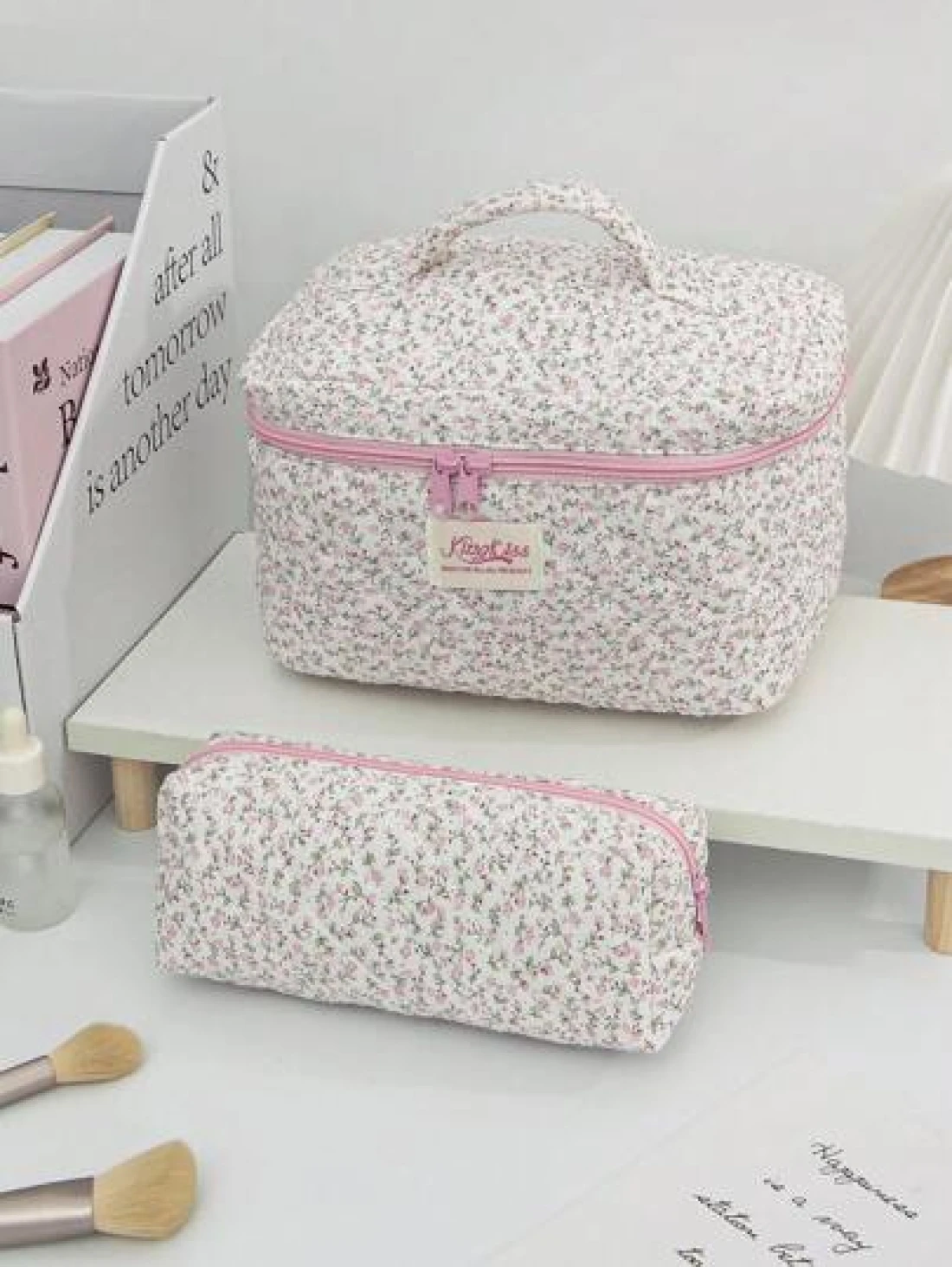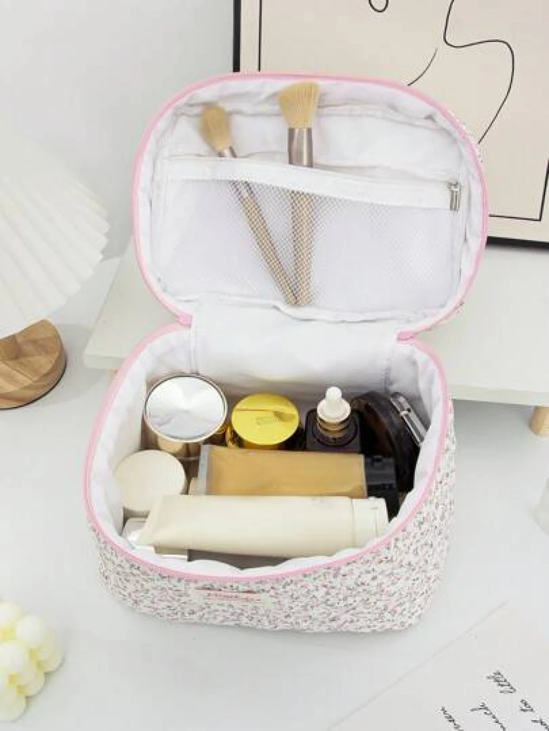 قطعة واحدة / مجموعة حقيبة مستحضرات تجميل وردية ذات طبعة زهور كبيرة السعة مبطنة مزودة بسحاب لحفظ أدوات التجميل والعناية بالبشرة، حقيبة سفر منظمة للمحاضرات المدرسية والهدايا للعروس والأم في المناسبات والأعياد الصيفية وديكور الحمام المنزلي