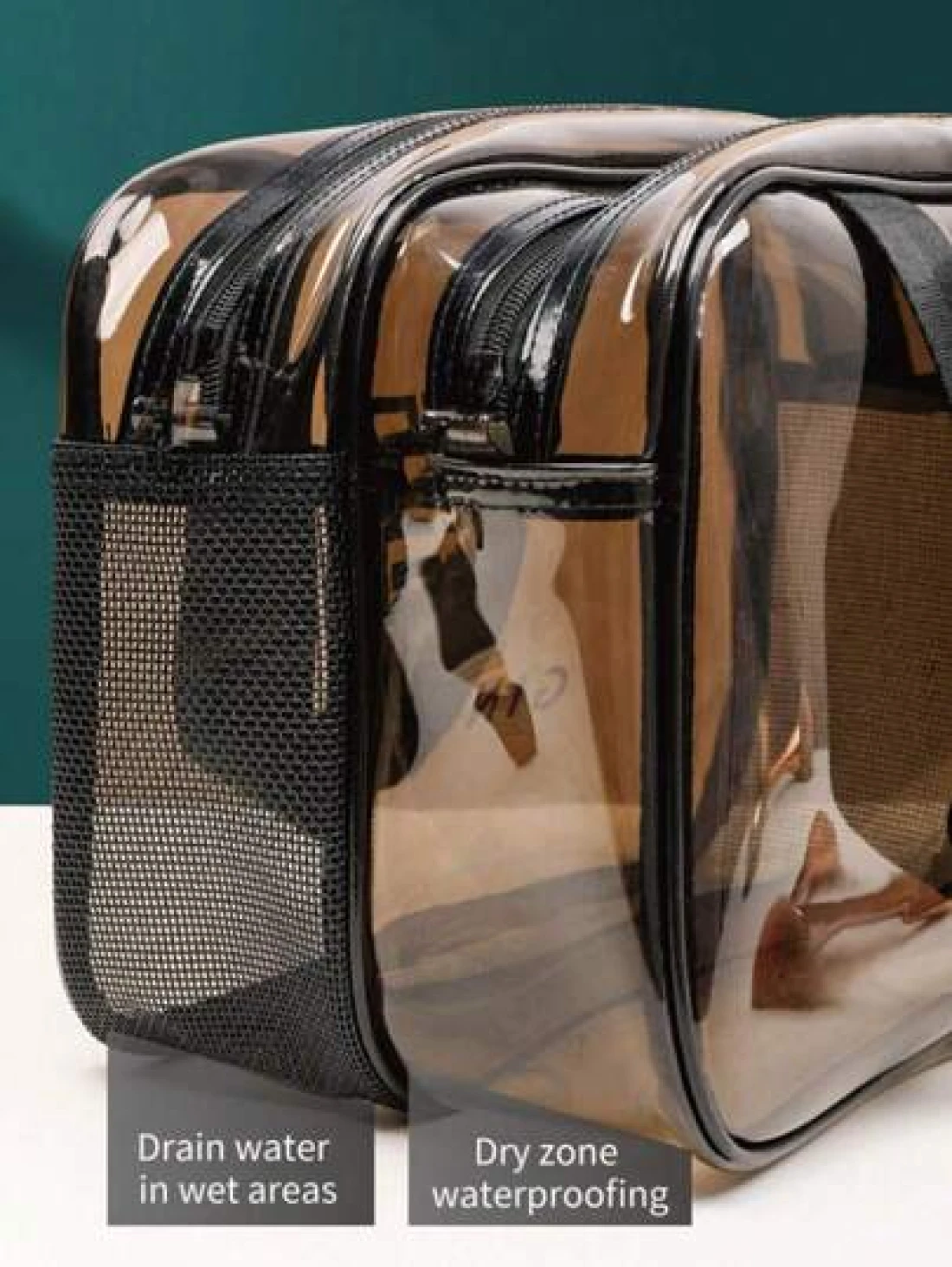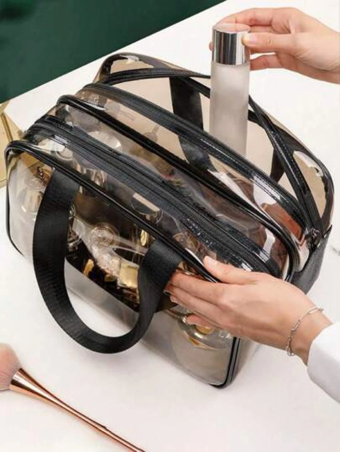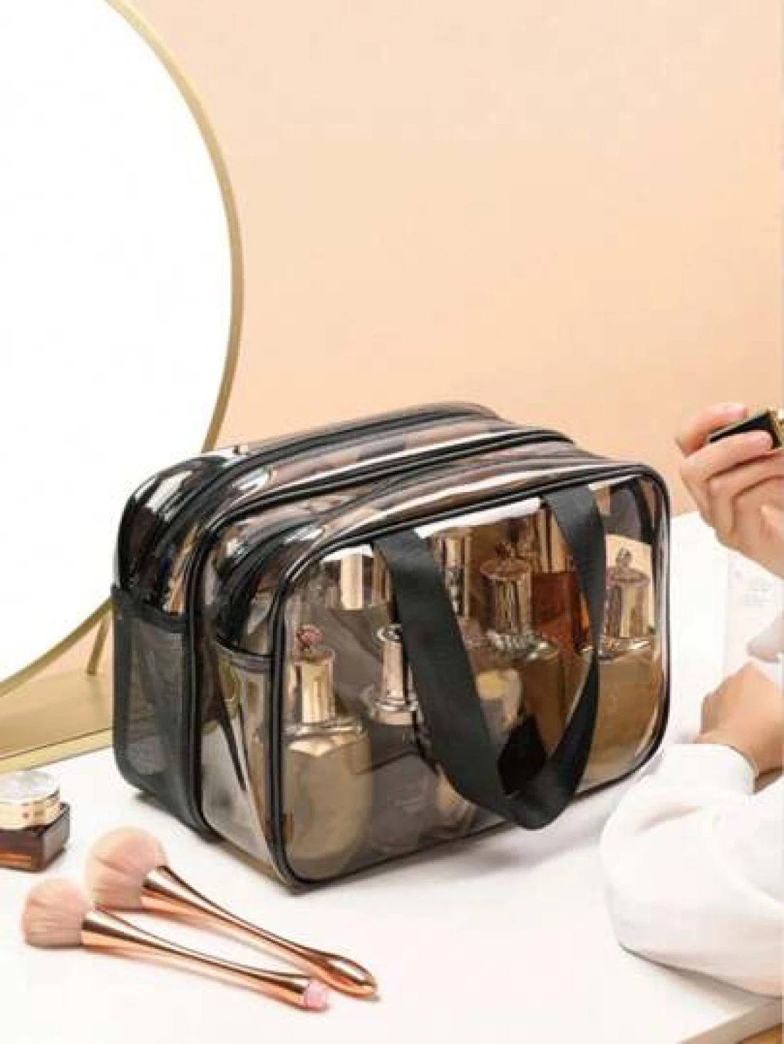 1pc Double Layer Clear Travel Toiletry Bag Large Capacity Handheld Makeup Organizer Pouch Zipper Mesh Pockets For Cosmetics Skincare Toiletries Jewelry And More Ideal Gift For Mother s Day Valentine s