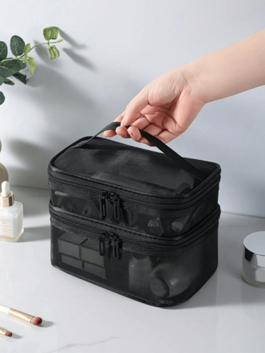 حقيبة مستحضرات التجميل متعددة الوظائف قطعة واحدة ، حقيبة منظم مكياج محمول ، حقيبة أدوات تجميل للسفر مقاومة لل