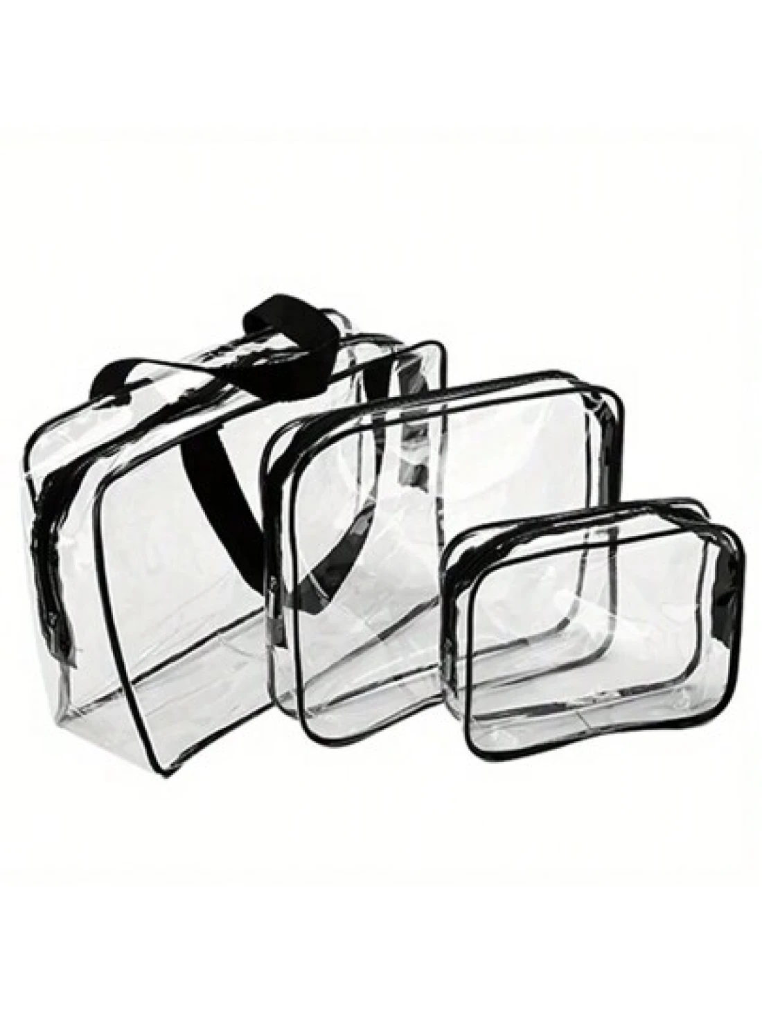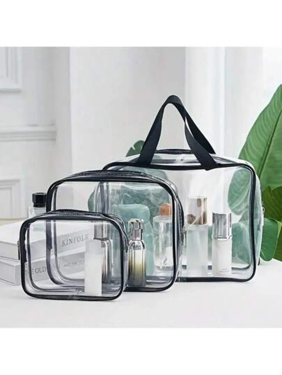 مجموعة 3 حقائب أدوات التجميل شفافة، منظم السفر سعة كبيرة، حقيبة تخزين مستحضرات التجميل متعددة الوظائف، حقيبة