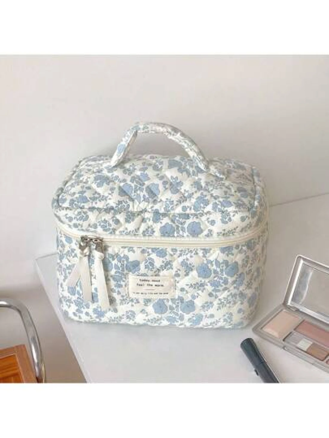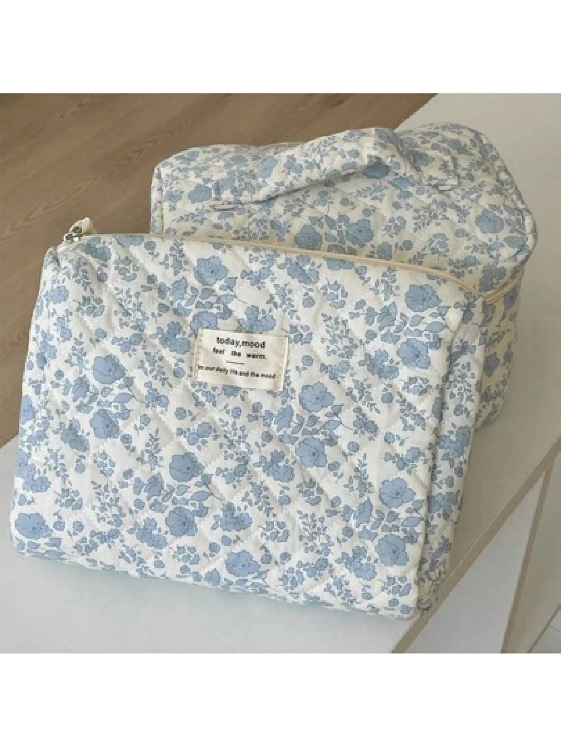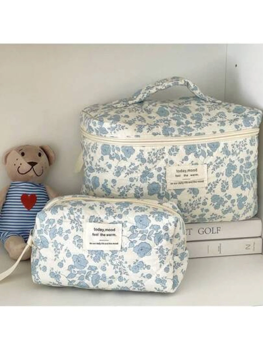 1 3pcs Blue Begonia Flower Makeup Bag Large Capacity Portable Organizer Pouch Multi Functional Handbag Cosmetic Storage Bag Toiletry Bag For Women Men With Handle Compartments For Home School Dorm Tra