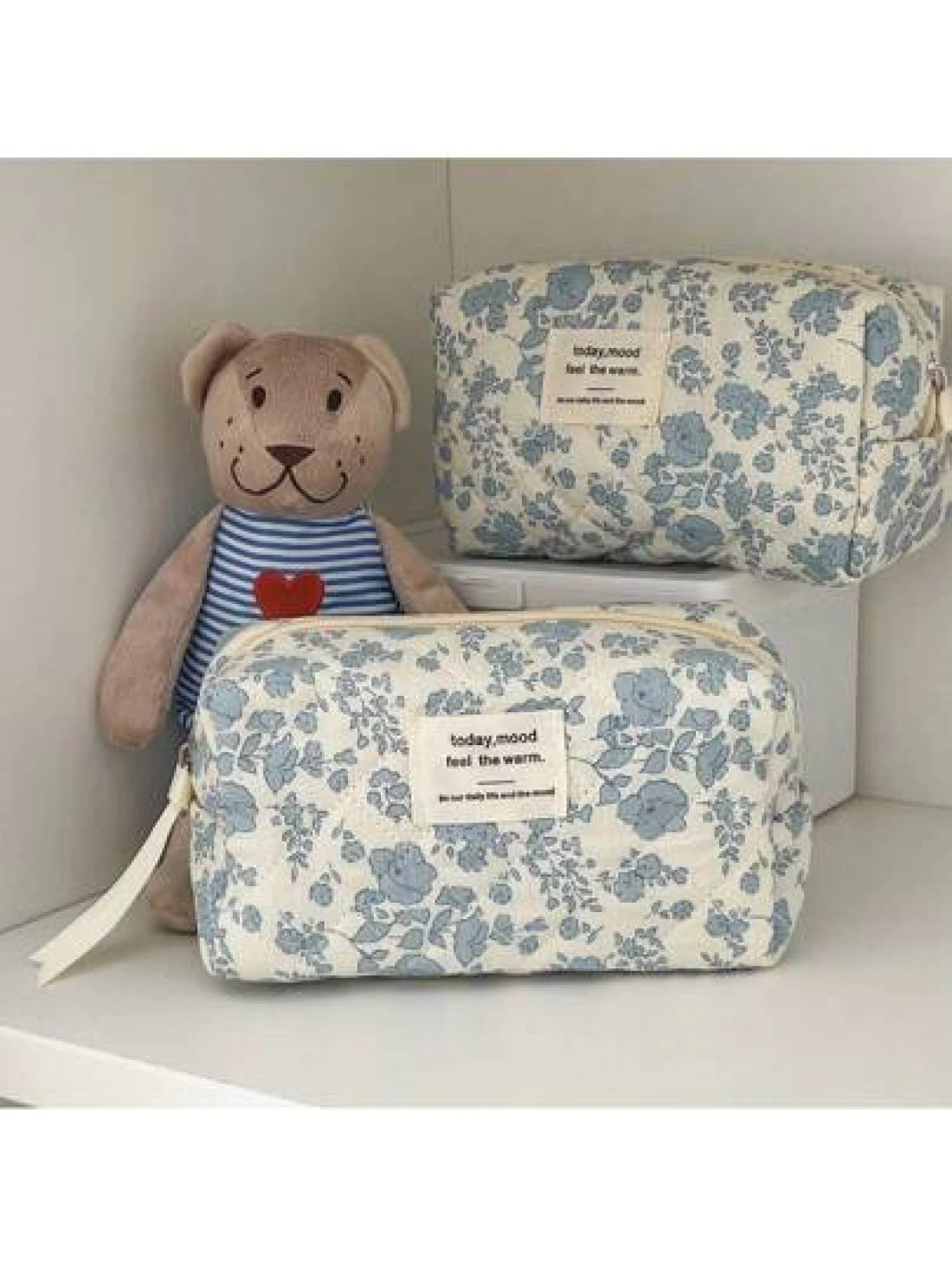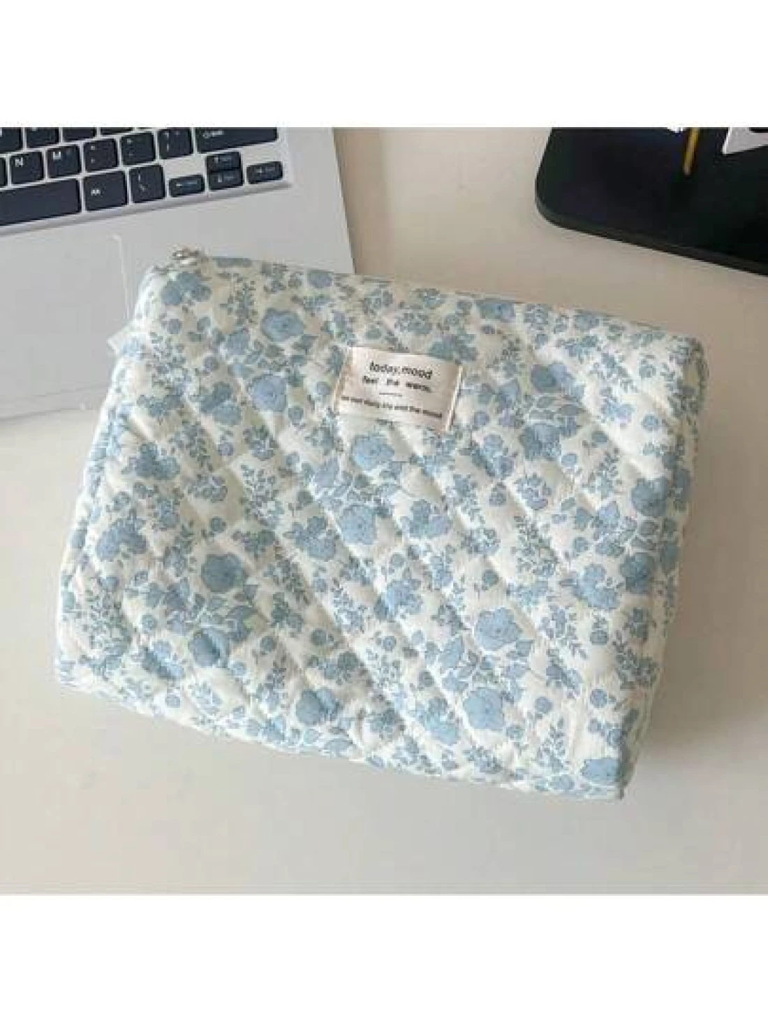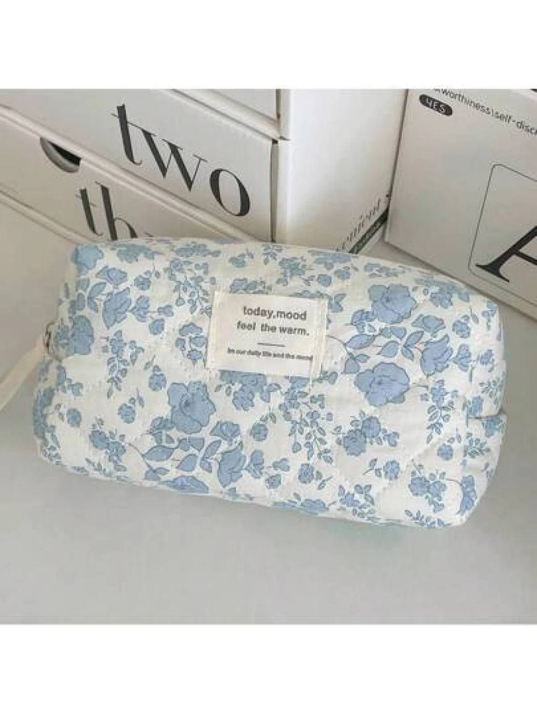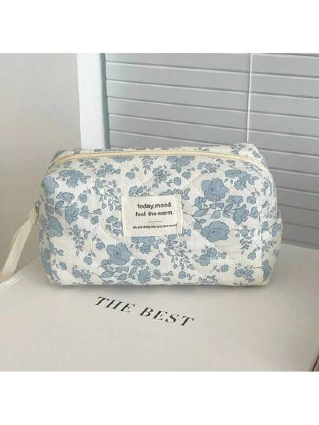 1 3pcs Blue Begonia Flower Makeup Bag Large Capacity Portable Organizer Pouch Multi Functional Handbag Cosmetic Storage Bag Toiletry Bag For Women Men With Handle Compartments For Home School Dorm Tra