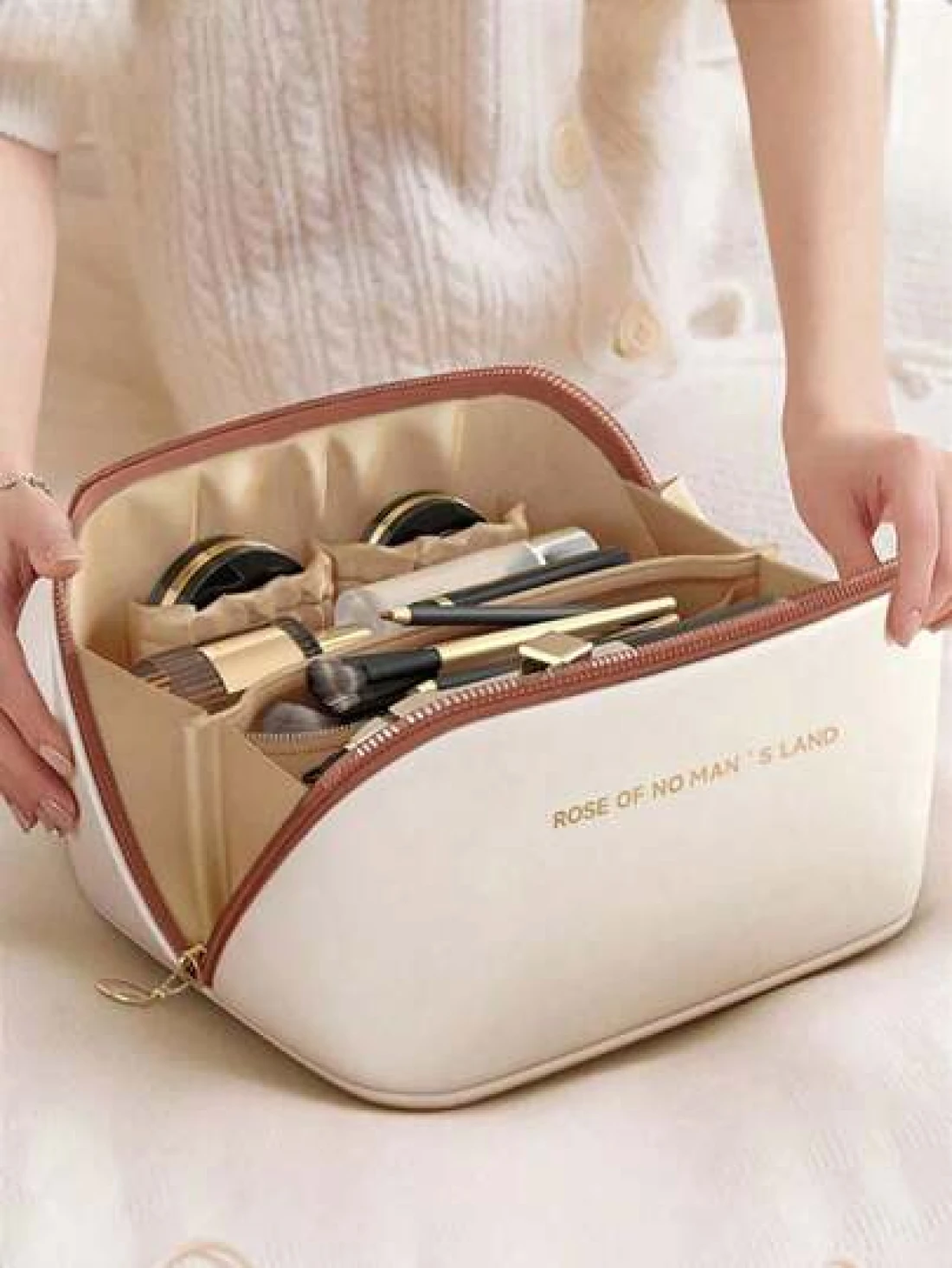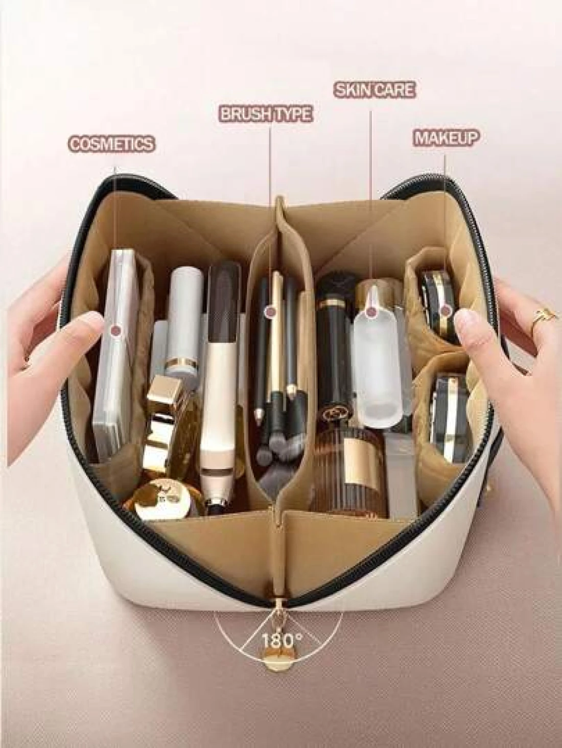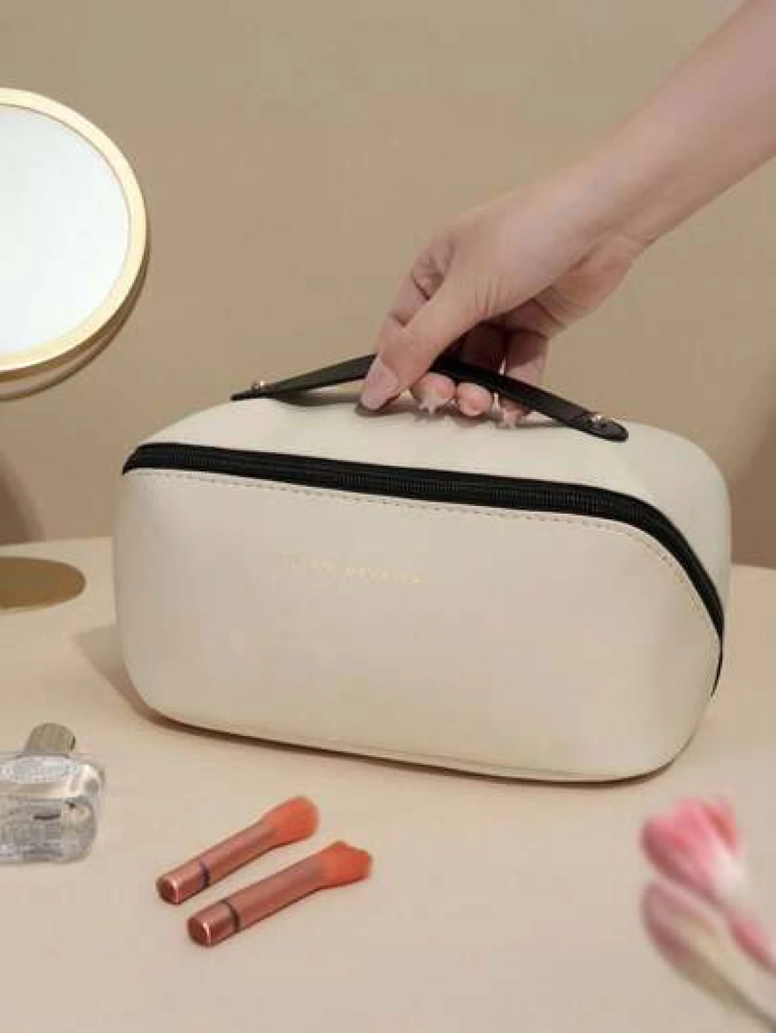 1 حقيبة مستحضرات تجميل سفر ذات سعة كبيرة ومقاومة للماء من جلد البولي يوريثان, حقيبة أغراض شخصية متعددة الوظائف لتخزين مستحضرات التجميل والعناية بالبشرة والأحمر شفاه والواقي من الشمس والأصناف الصغيرة, مناسبة للسفر، التسوق والاستخدام في حفلات الزفاف
