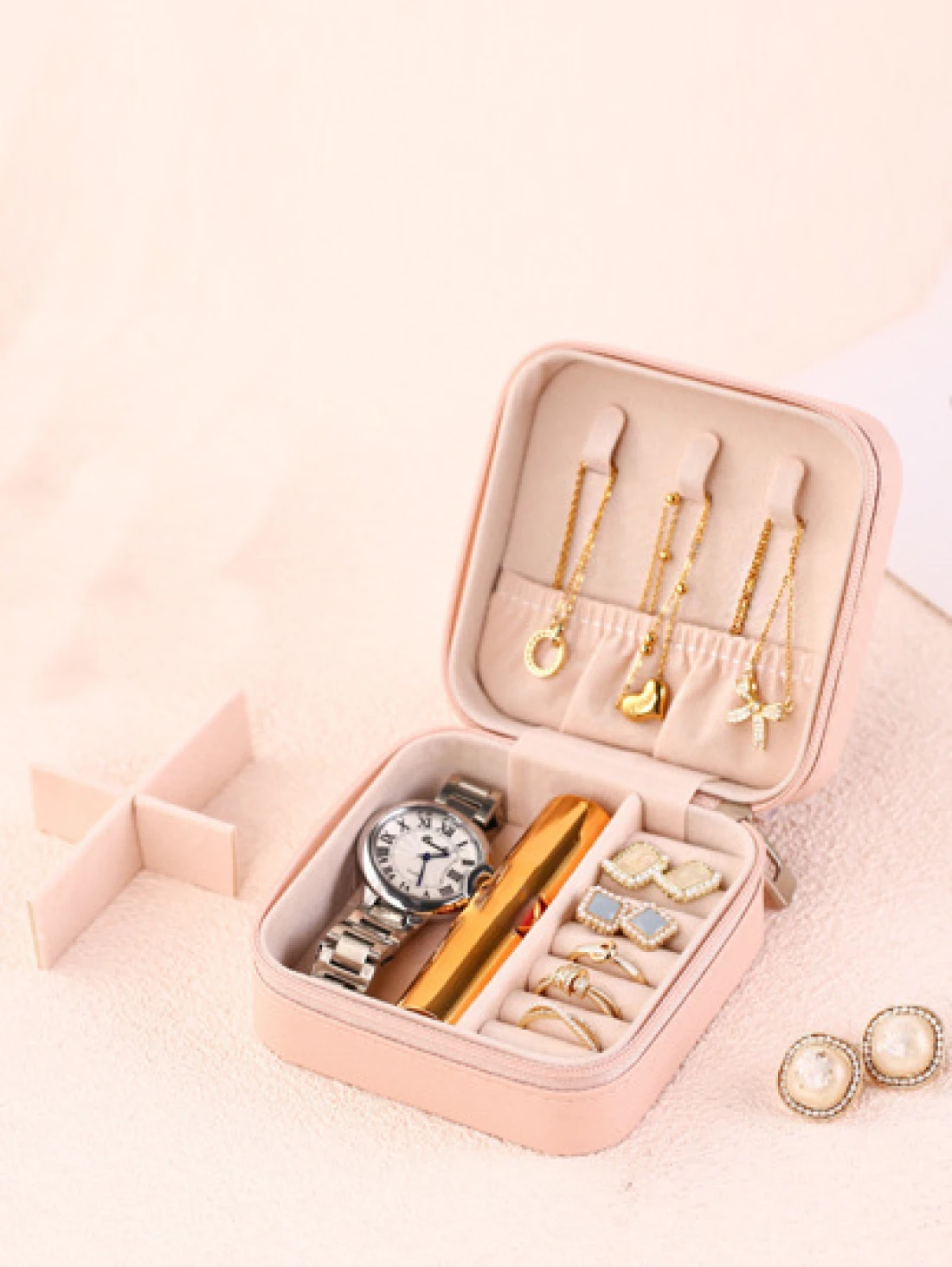 1PC Mini Jewelry Organizer Display Travel Jewelry Zipper Case Boxes Earrings Necklace Ring Portable Jewelry Box Leather Storage Jewelry Storage Box Women Gifts Girl Gifts Girlfriend Gifts Back To Scho
