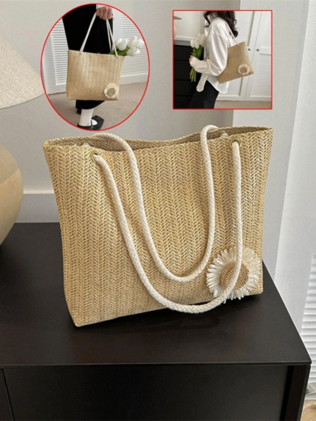 حقيبة كتف محبوكة كبيرة السعة للنساء، حقيبة يد رائجة بأسلوب عصري لعام 2024، حقيبة مريحة وعصرية للحمل