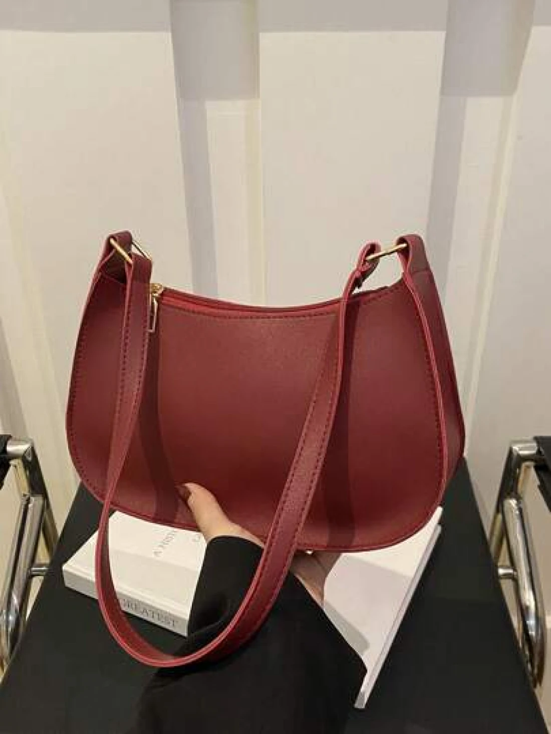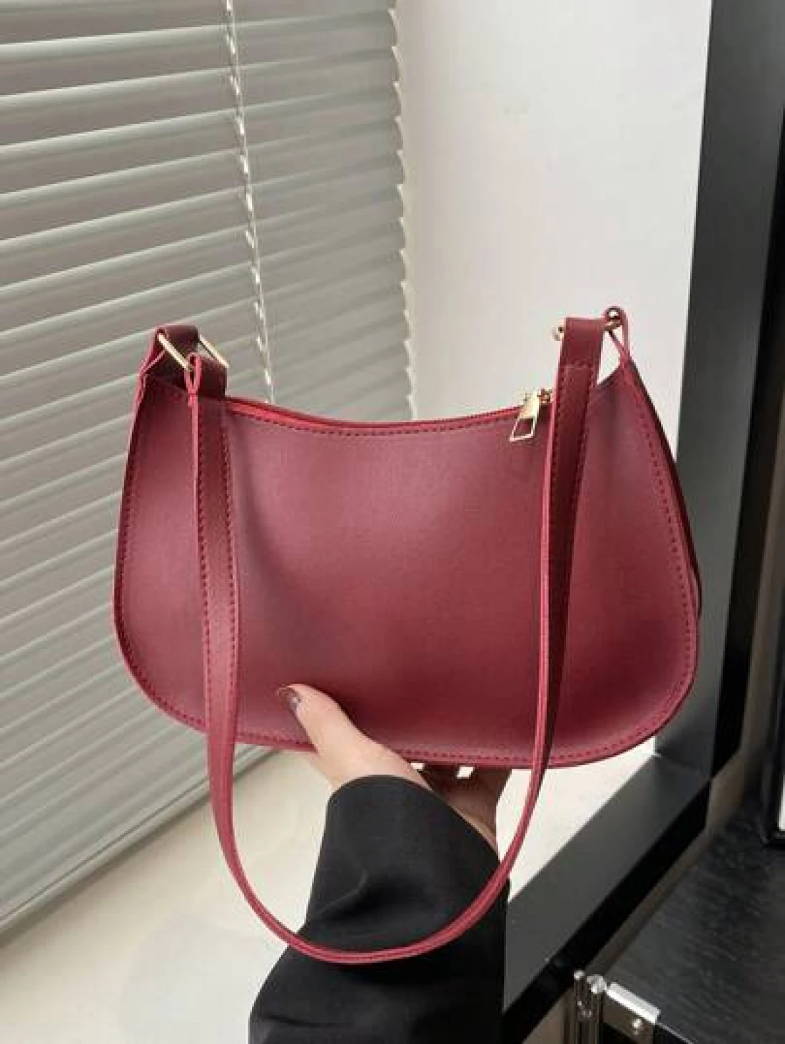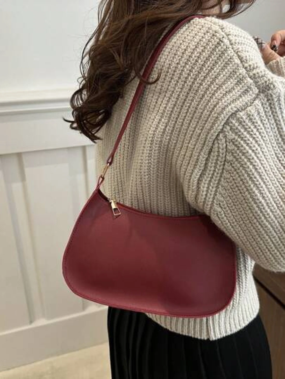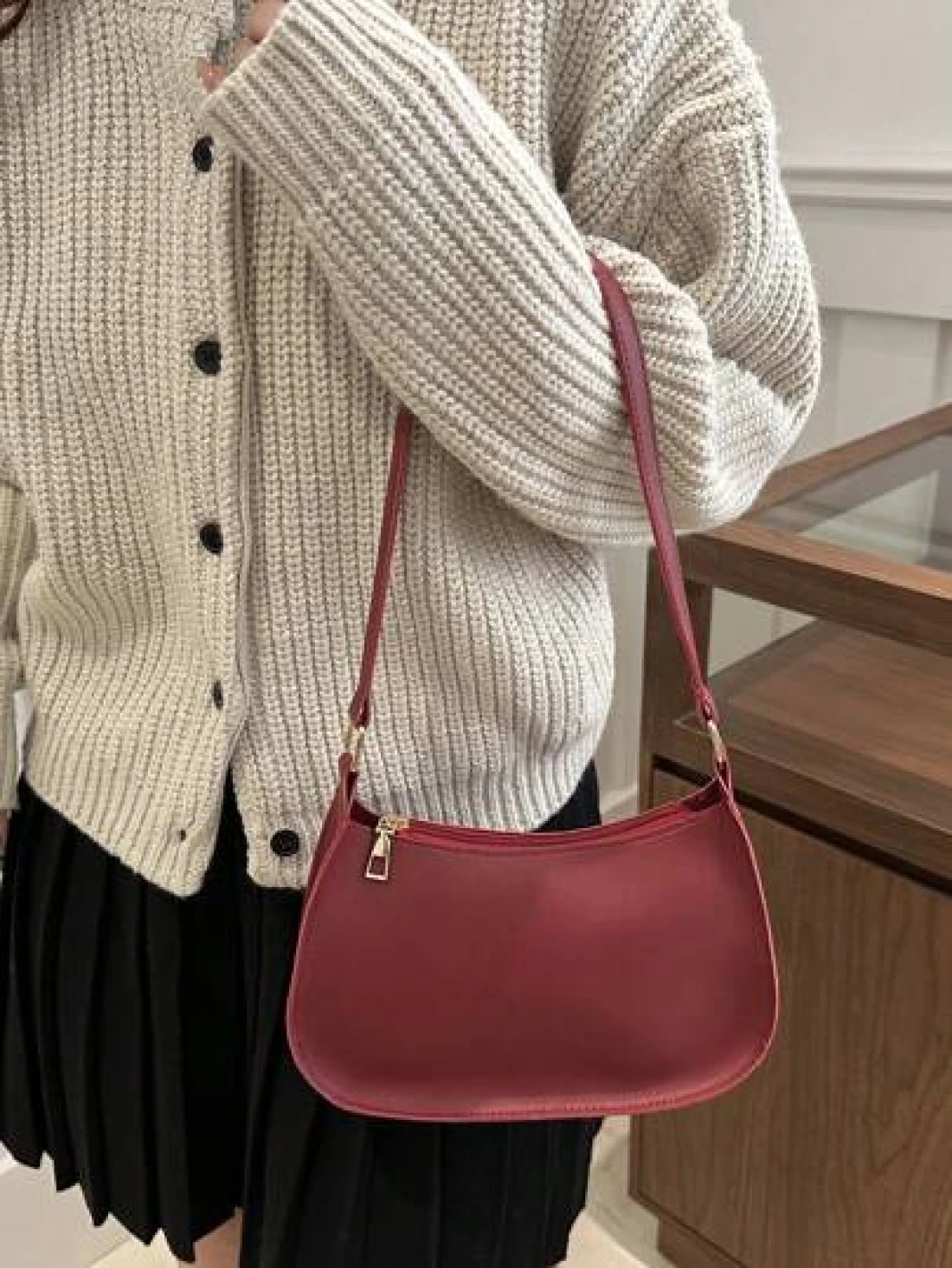 حقيبة كتف أنيقة ذات تصميم بسيط، حقيبة إبط بطراز عتيق، حقيبة مقبض مبطنة خفيفة الوزن مع سحاب، حقيبة يد عصرية متع