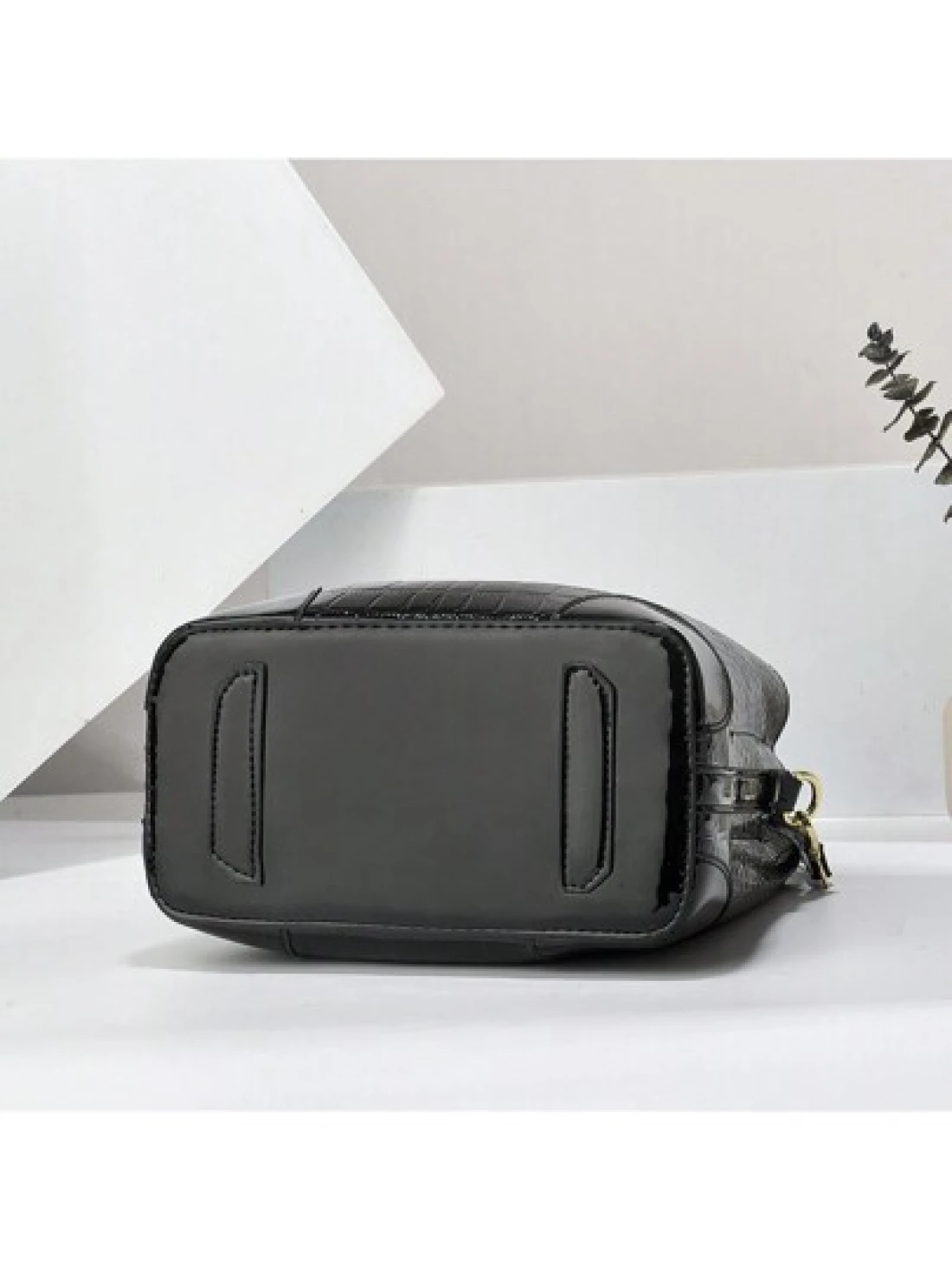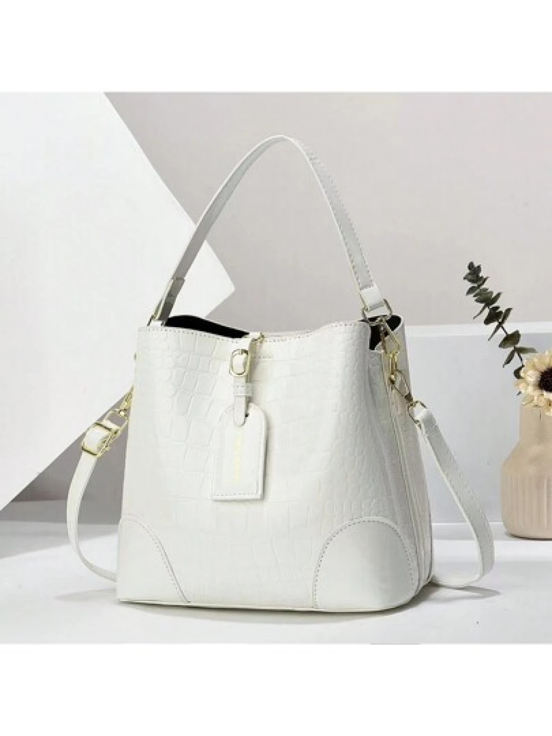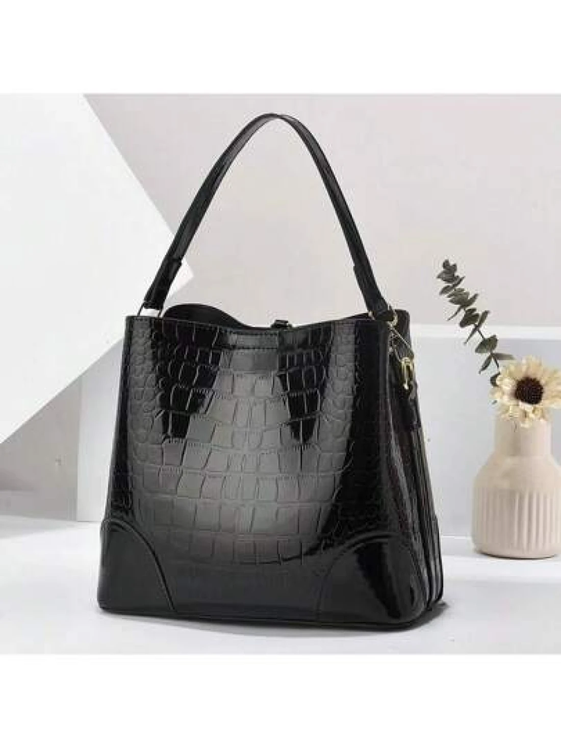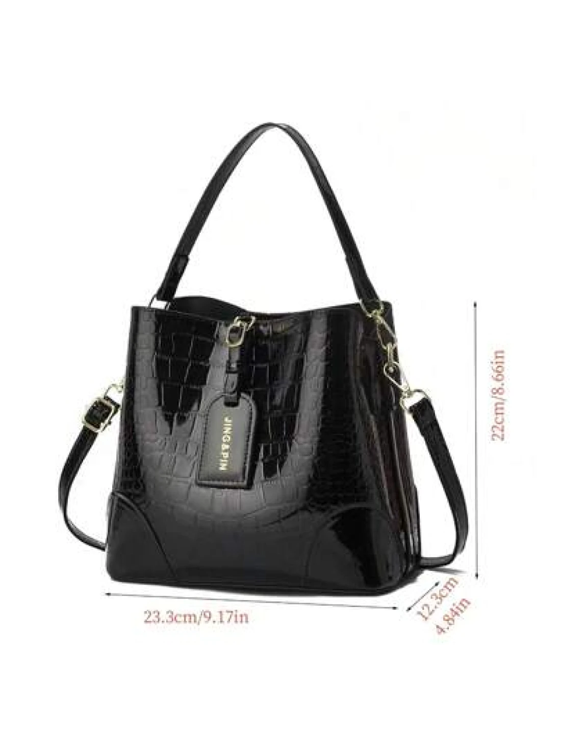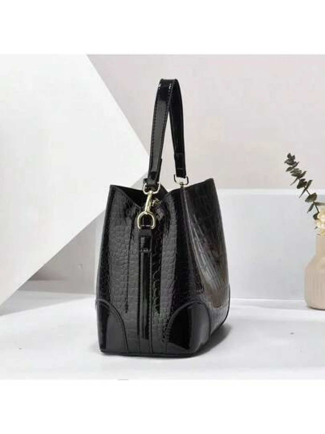 حقيبة يد بملمس حجري قطعة واحدة، جديد لعام 2024 ذات سعة كبيرة وأقسام متعددة، حقيبة دلو من البولي يوريثان اللامع عالي الجودة، مناسبة للاستخدام اليومي والحمل على الكتف