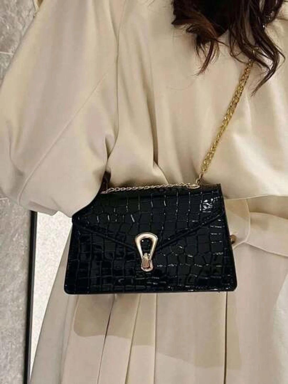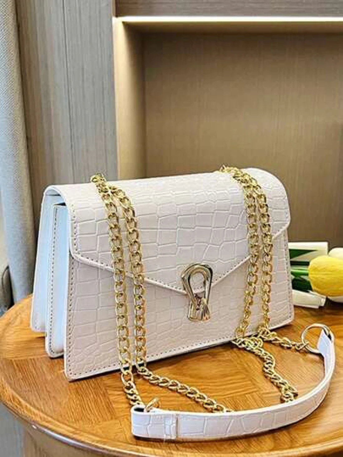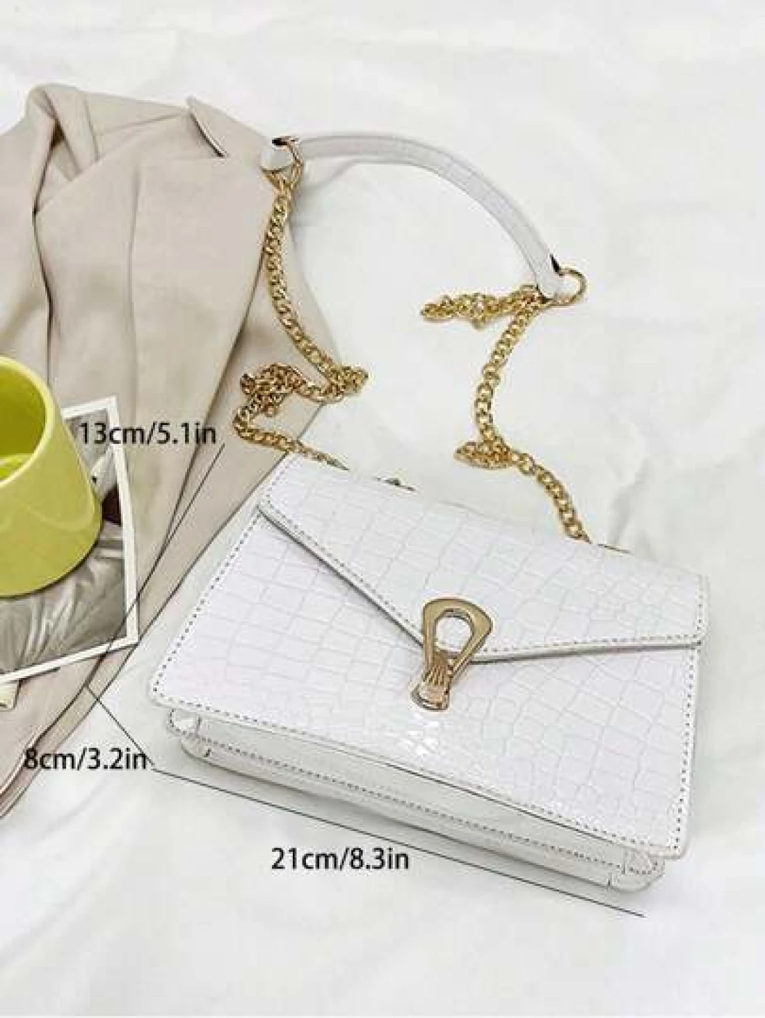 Crocodile Embossed Flap Chain Square Bag Lightweight Business Casual Small PU Leather Solid Color Square Shoulder Bag Perfect Sling Bag For Daily Use For Teen Girls Women College Students Rookies Whit