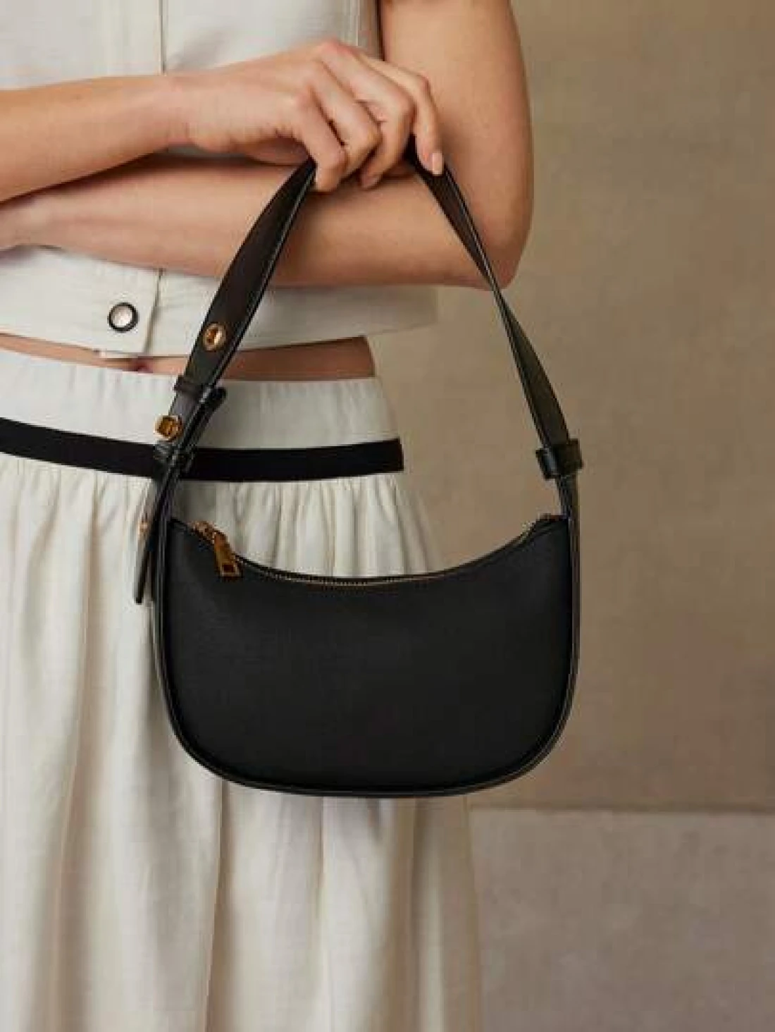 MOTF PREMIUM حقيبة كتف جلد صناعي سحاب أنيقة للتنقل