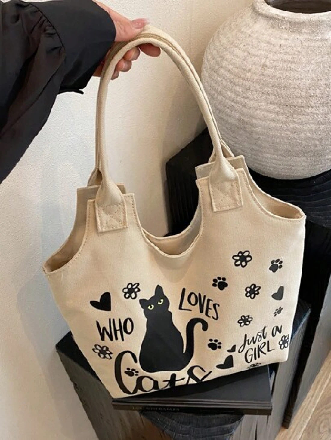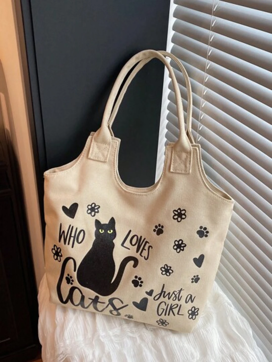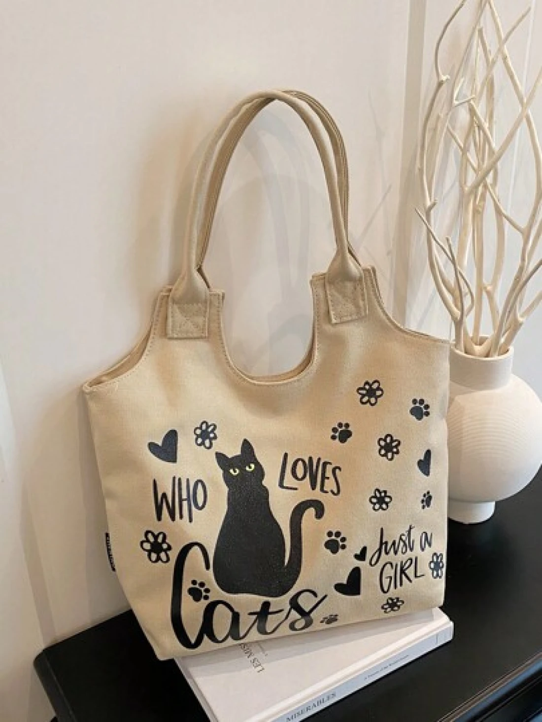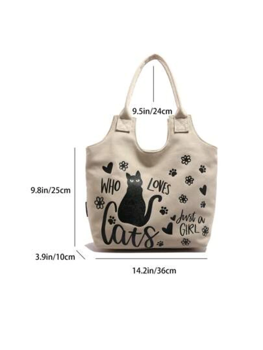 حقيبة نسائية جديدة عصرية كاجوال للذراع ، حقيبة يد كبيرة السعة ، طبعات قطط ، حقيبة كتف نسائية ، مصنوعة من قماش