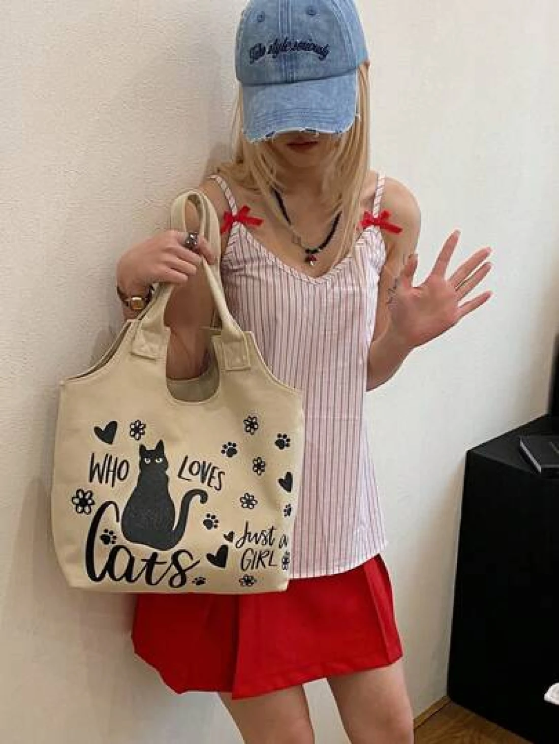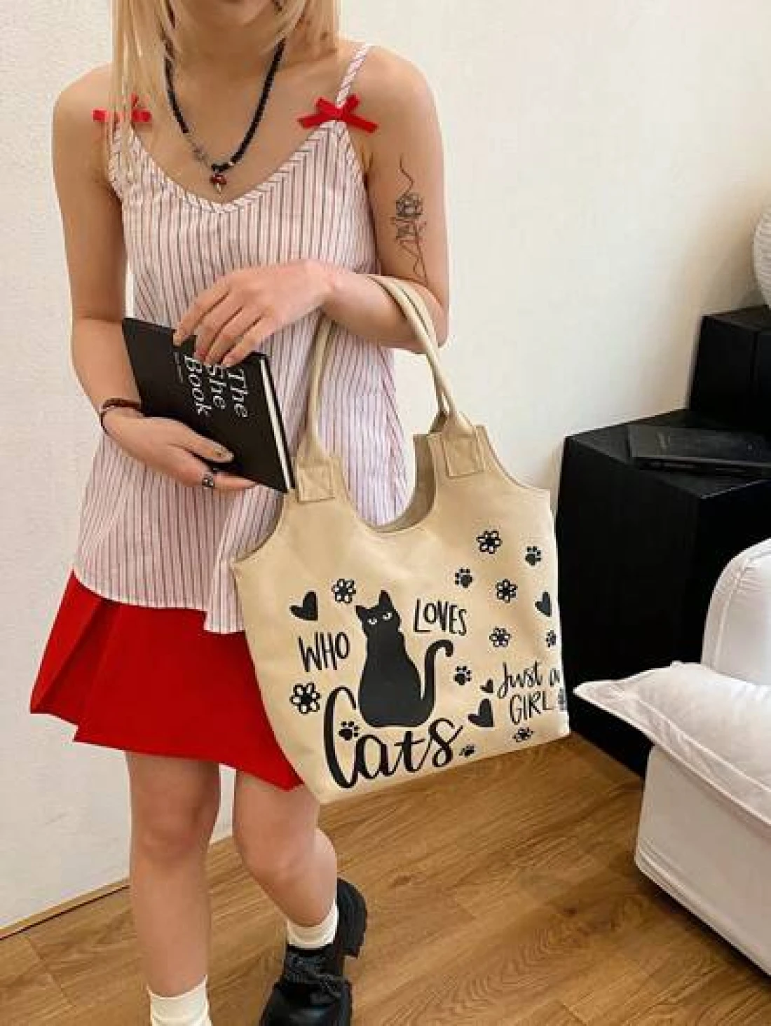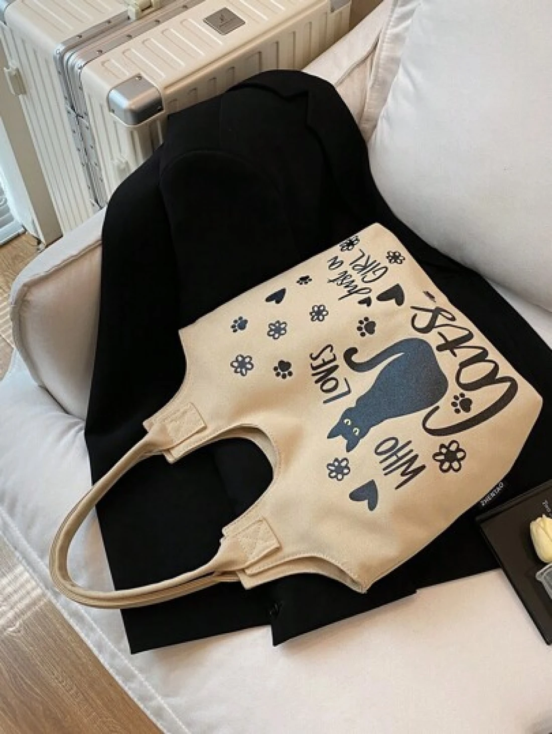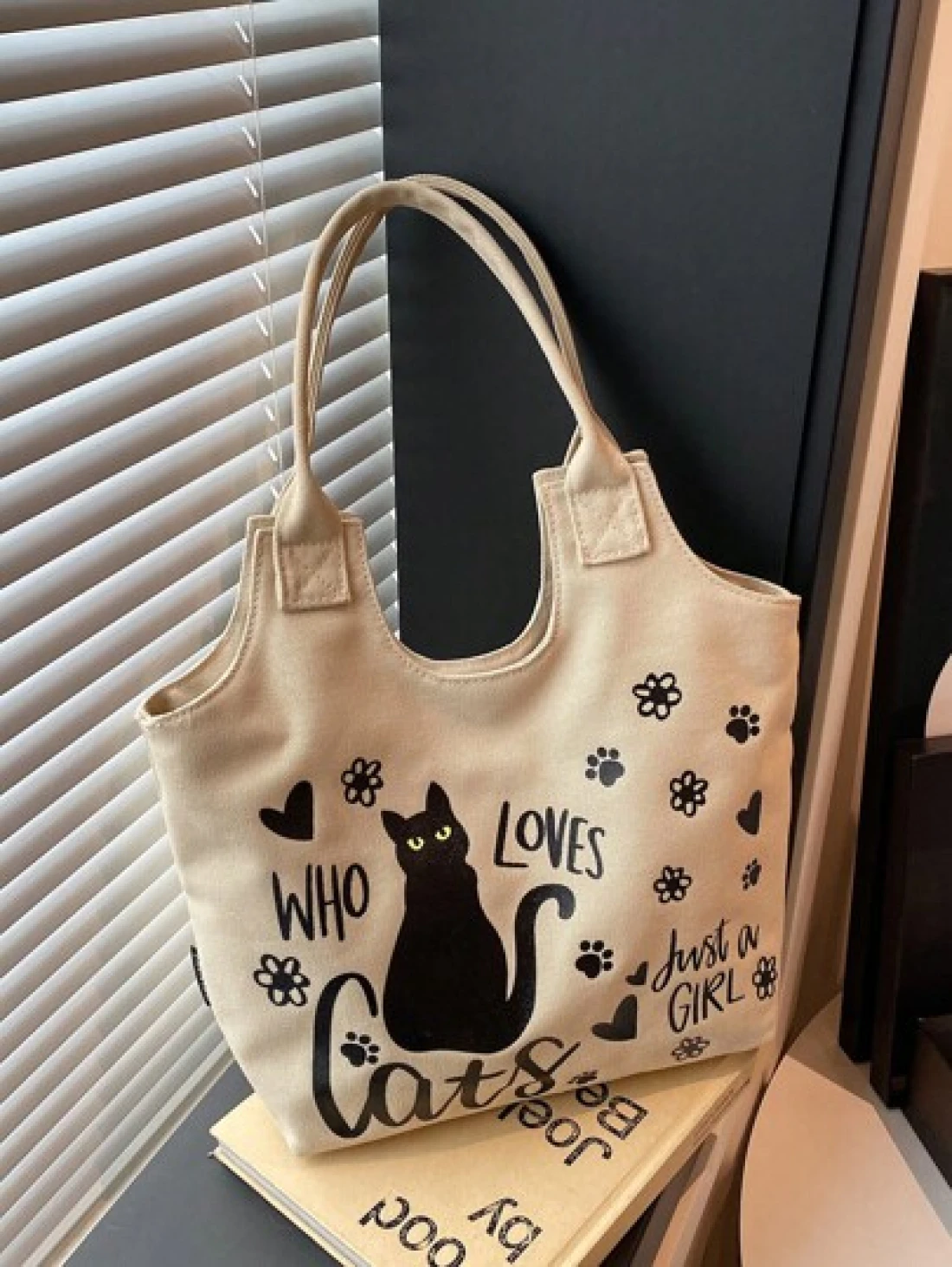 حقيبة نسائية جديدة عصرية كاجوال للذراع ، حقيبة يد كبيرة السعة ، طبعات قطط ، حقيبة كتف نسائية ، مصنوعة من قماش