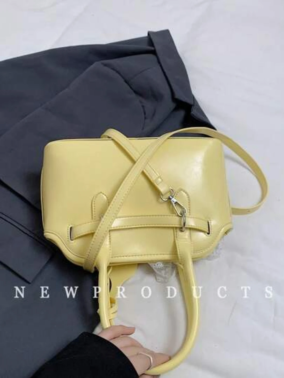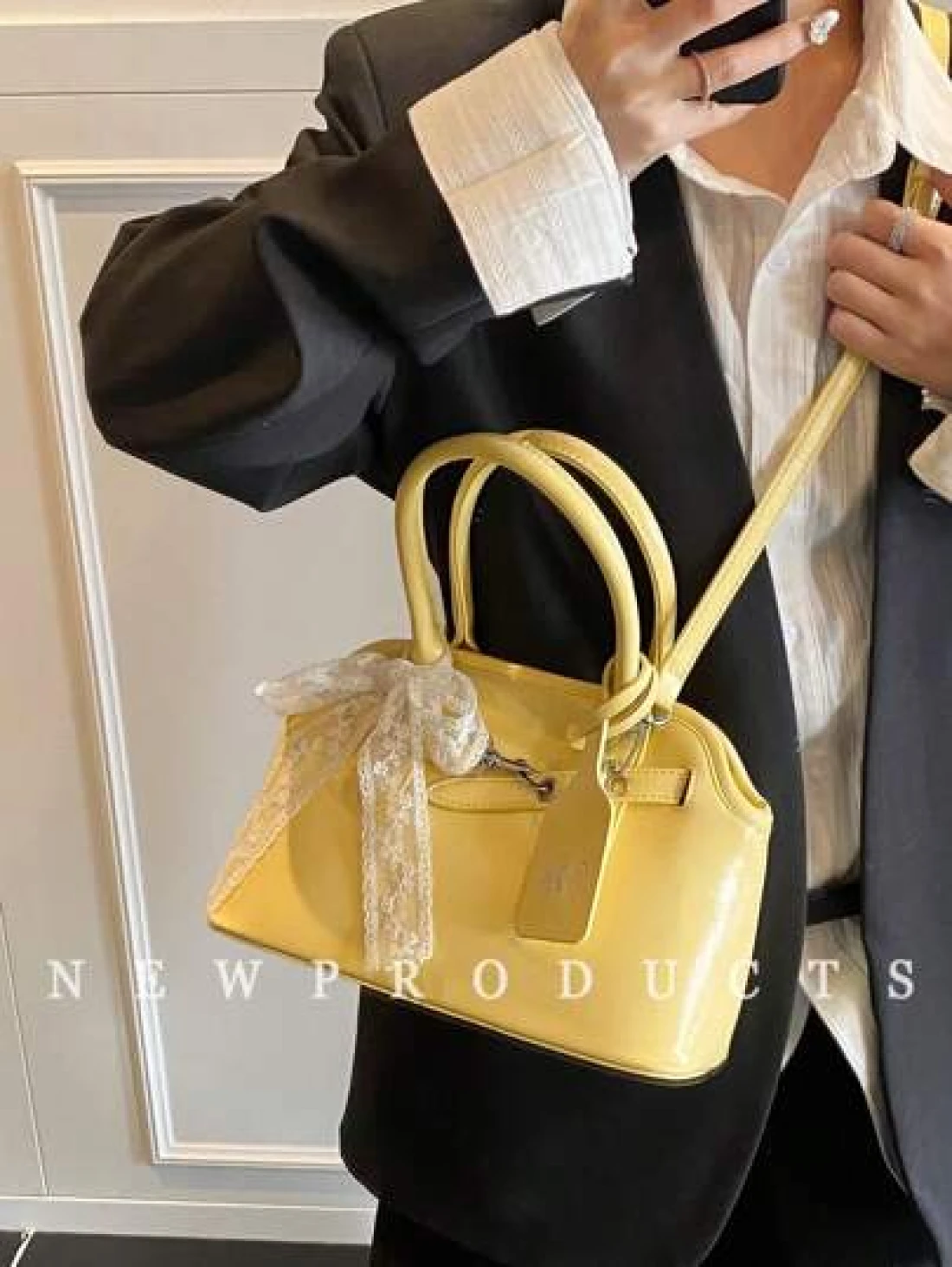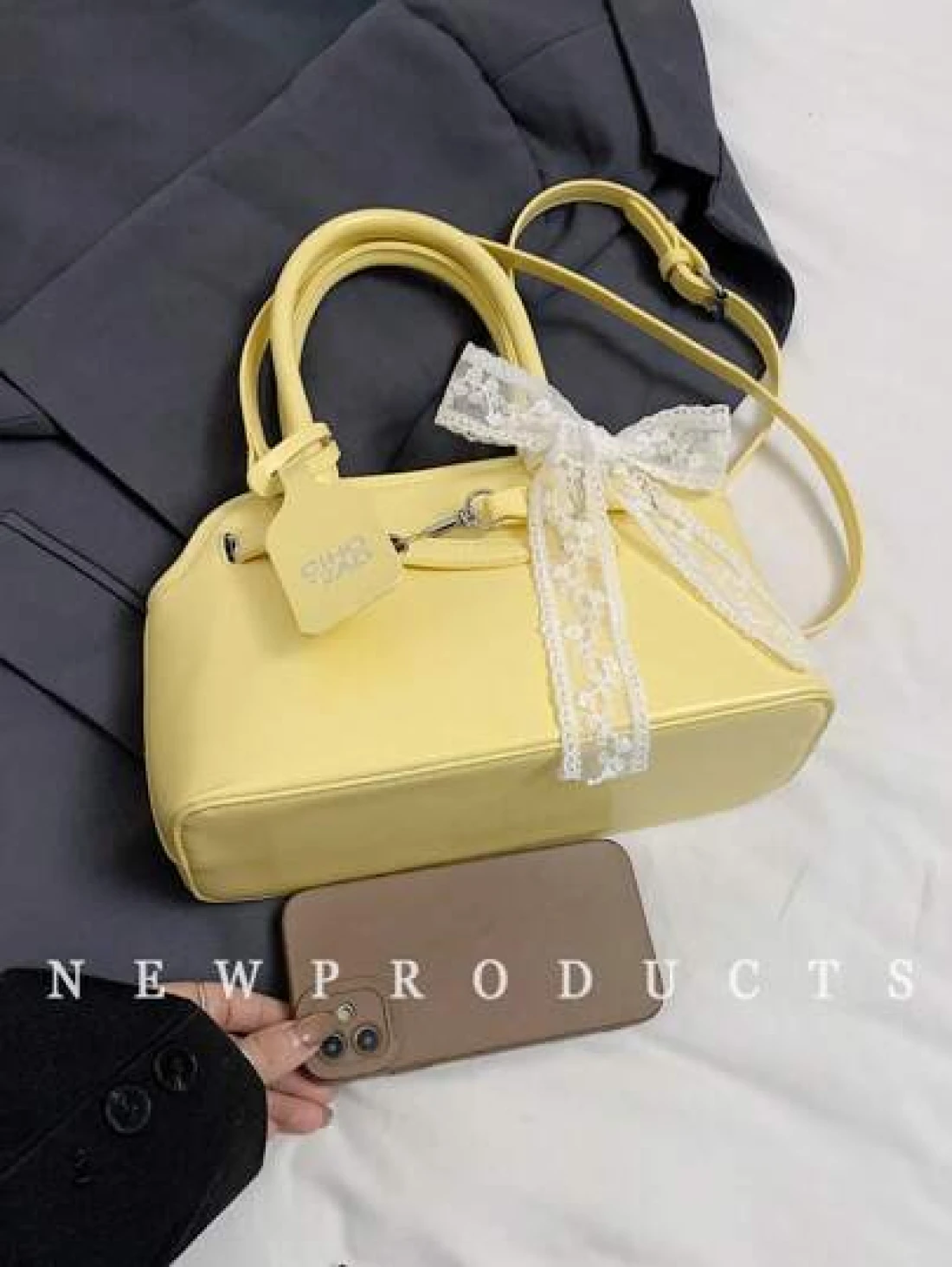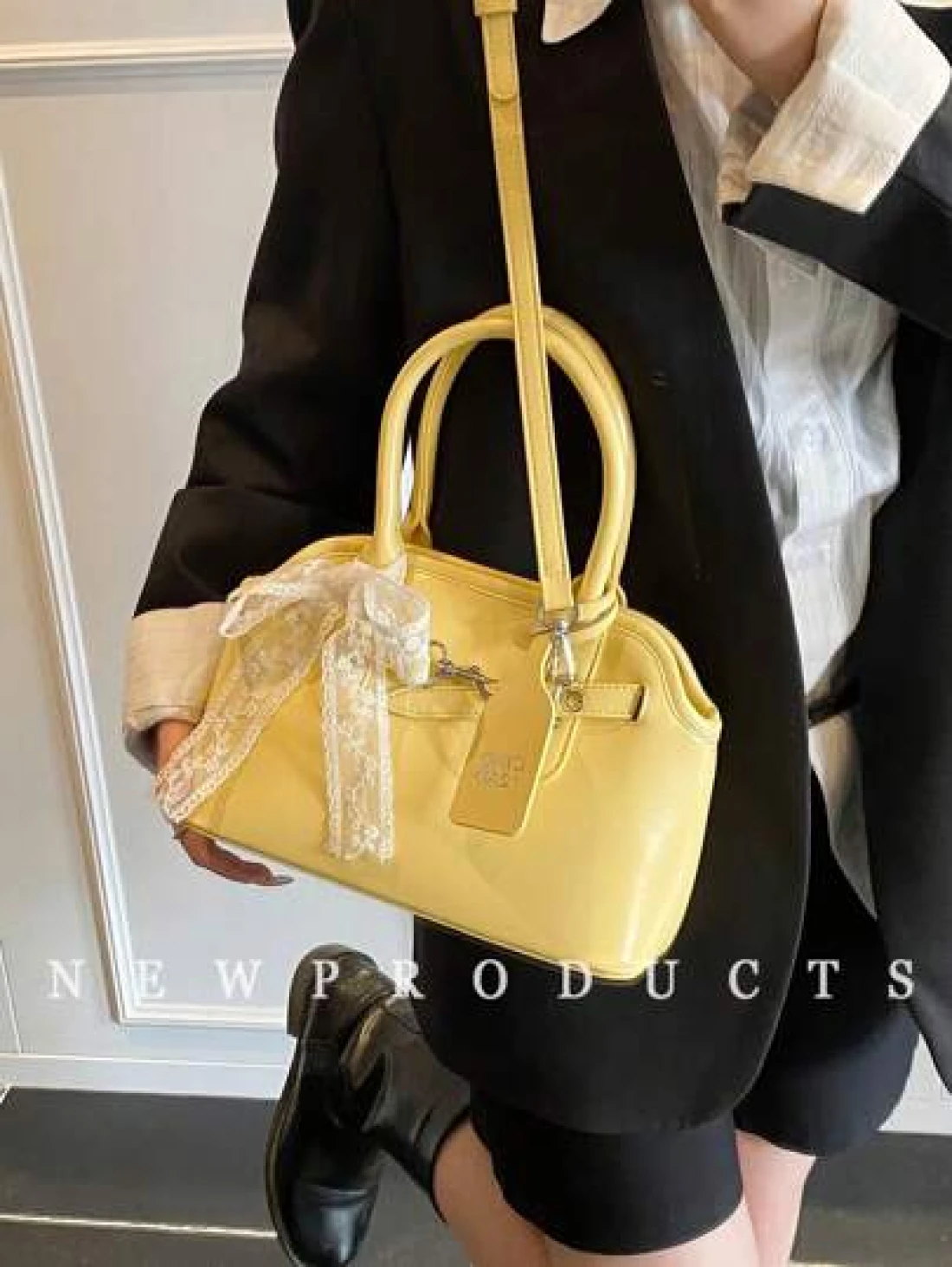 low tea 1 حقيبة كتف ذات طراز رجعي للنساء، من مواد البولي يوريثان ذات لون واحد، تصميم مقبض مزدوج، ذات إغلاق بcremallera، مناسبة للخروجات اليومية، المواعدة، التنقل، تأتي مع تميمة إكسسوار