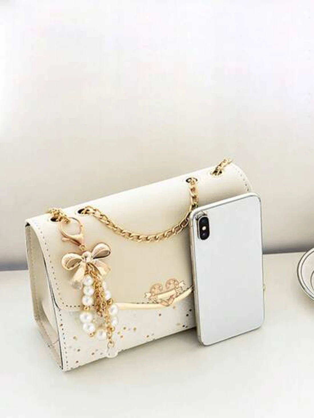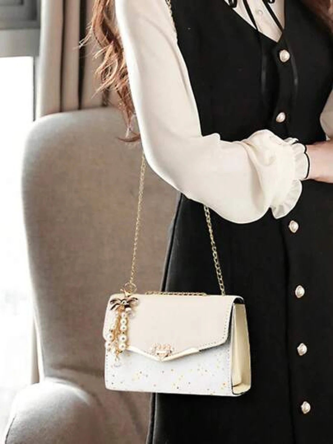 حقيبة كتف نسائية بغطاء يتحول بسلسلة معدنية مزينة بقفل