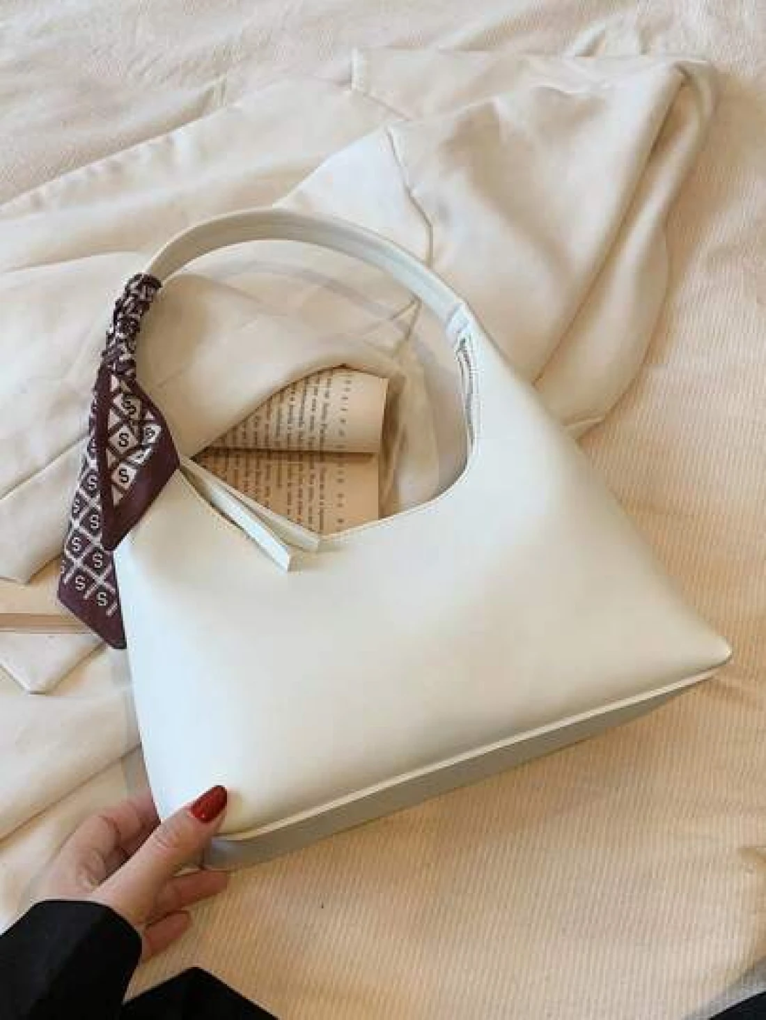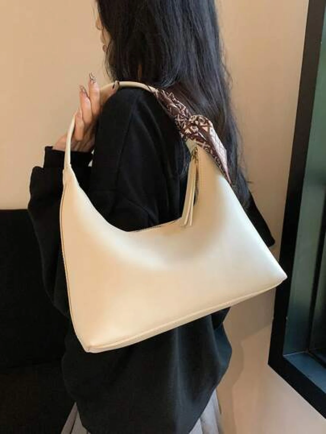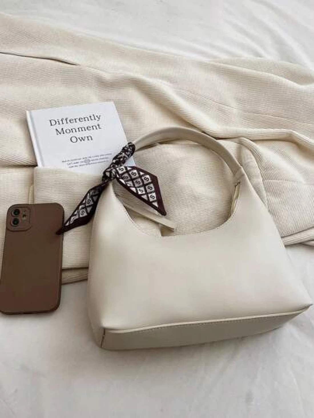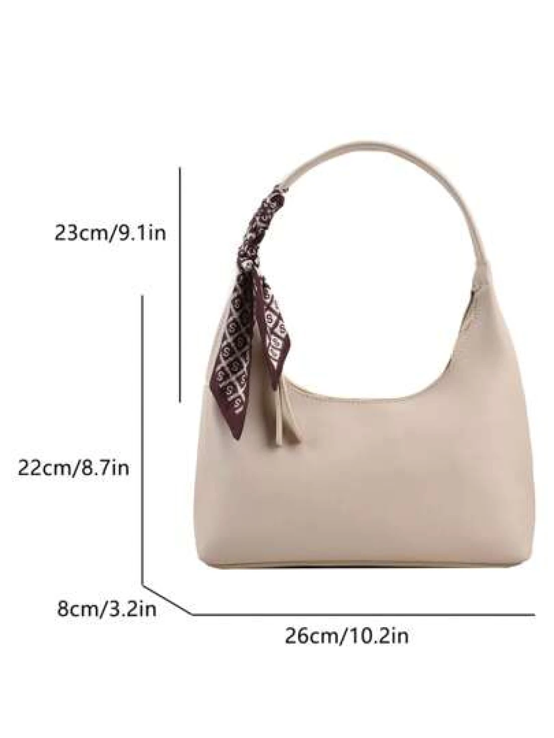 حقيبة كتف تحت الذراع بيج موحدة اللون مع وشاح متضمن، قطعة واحدة