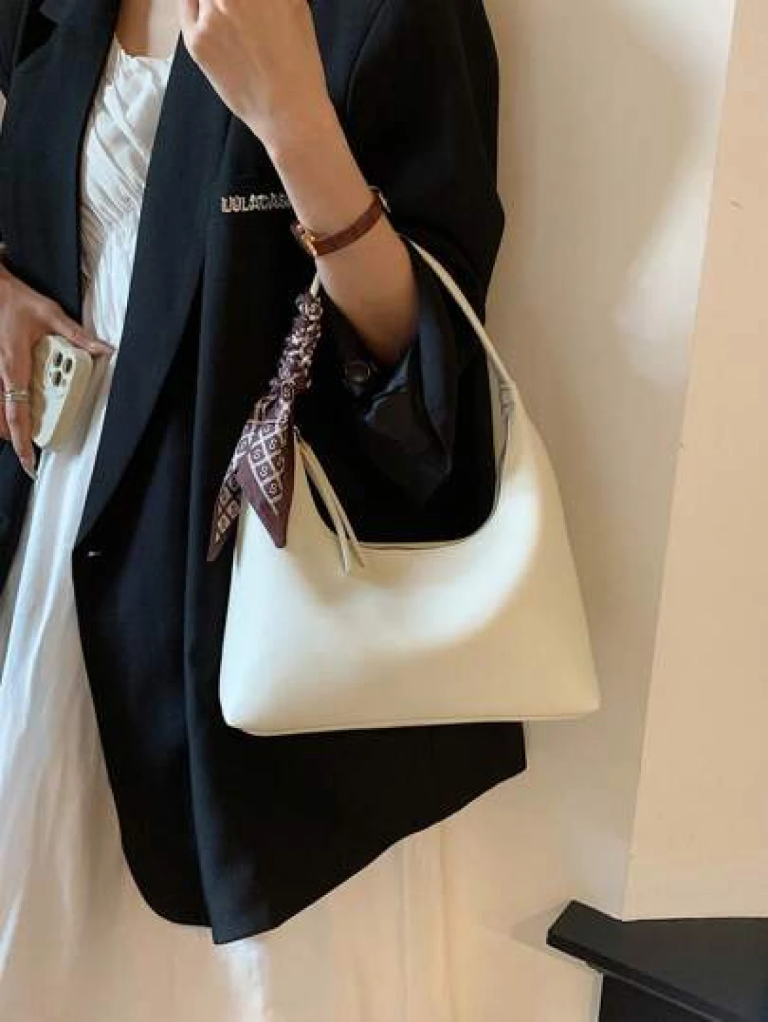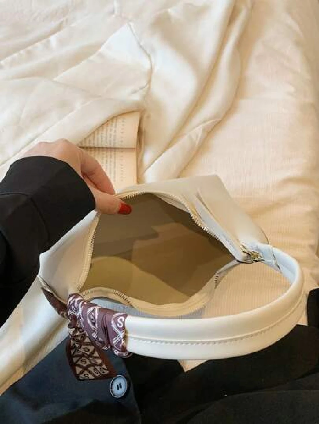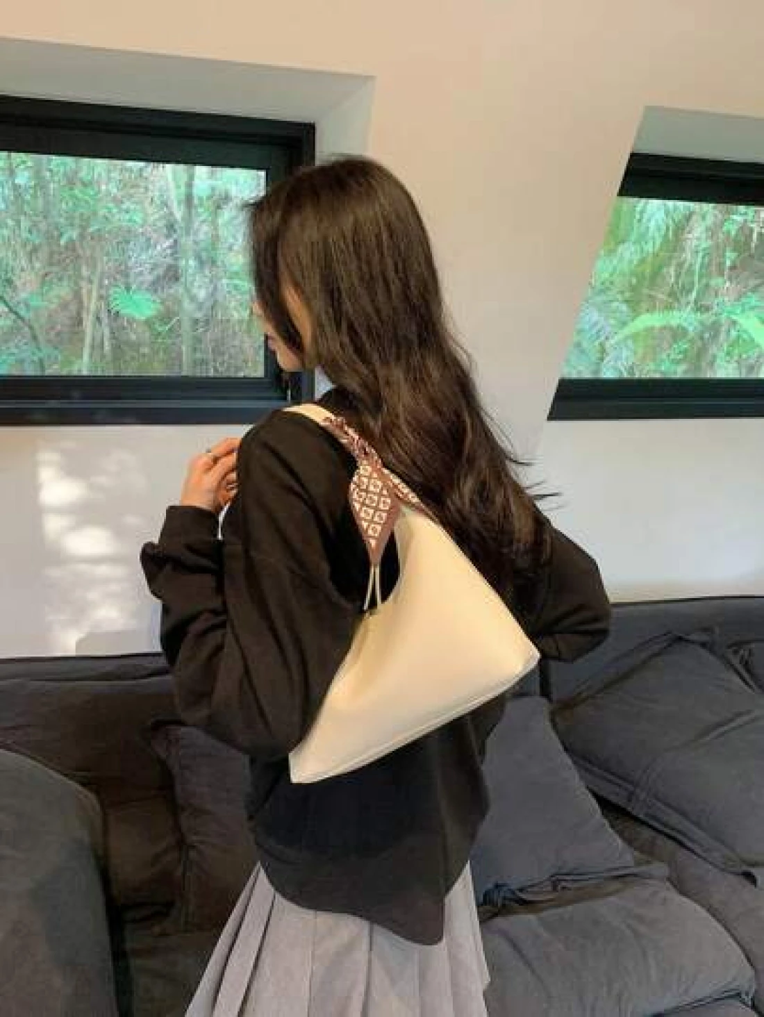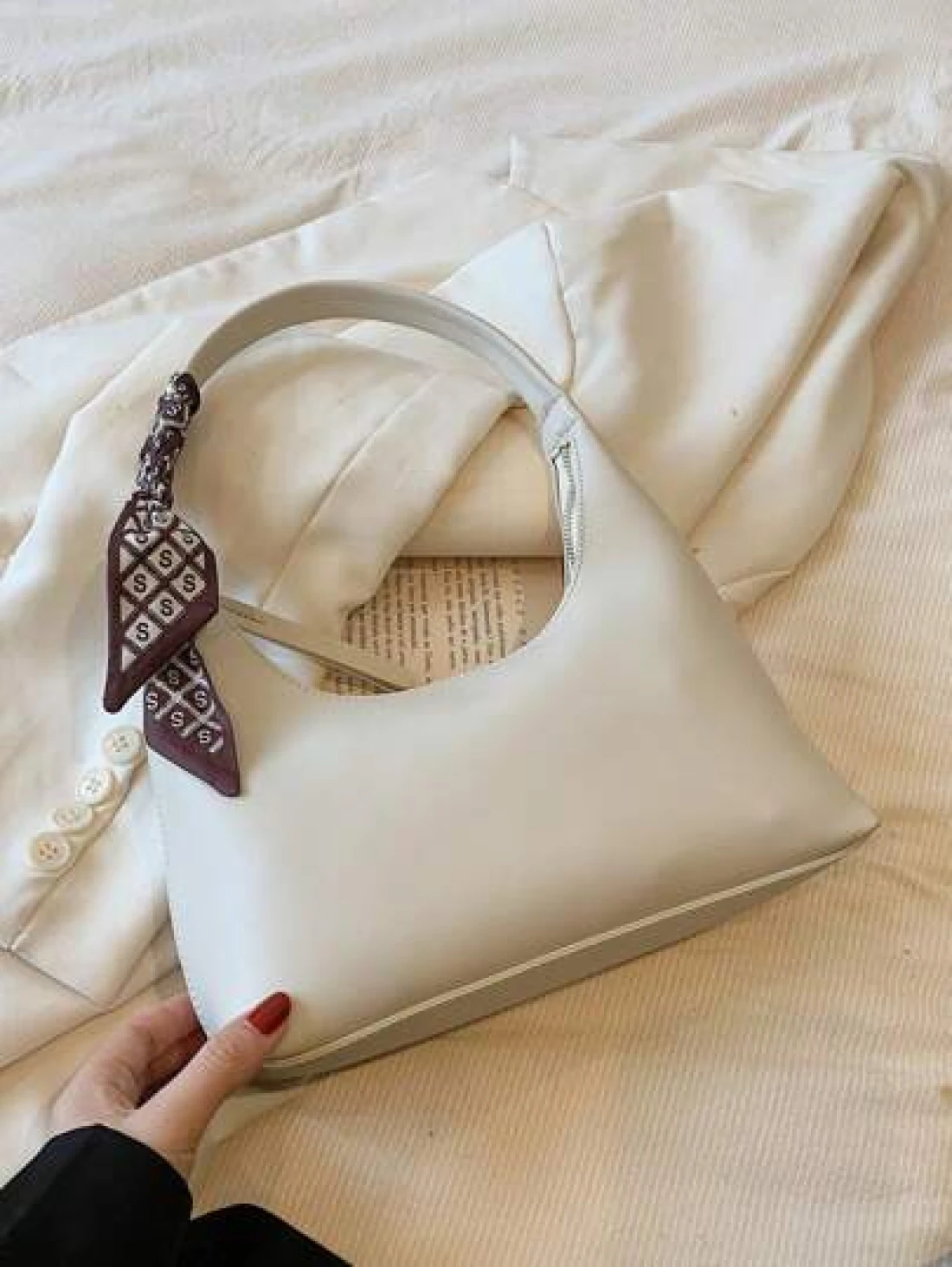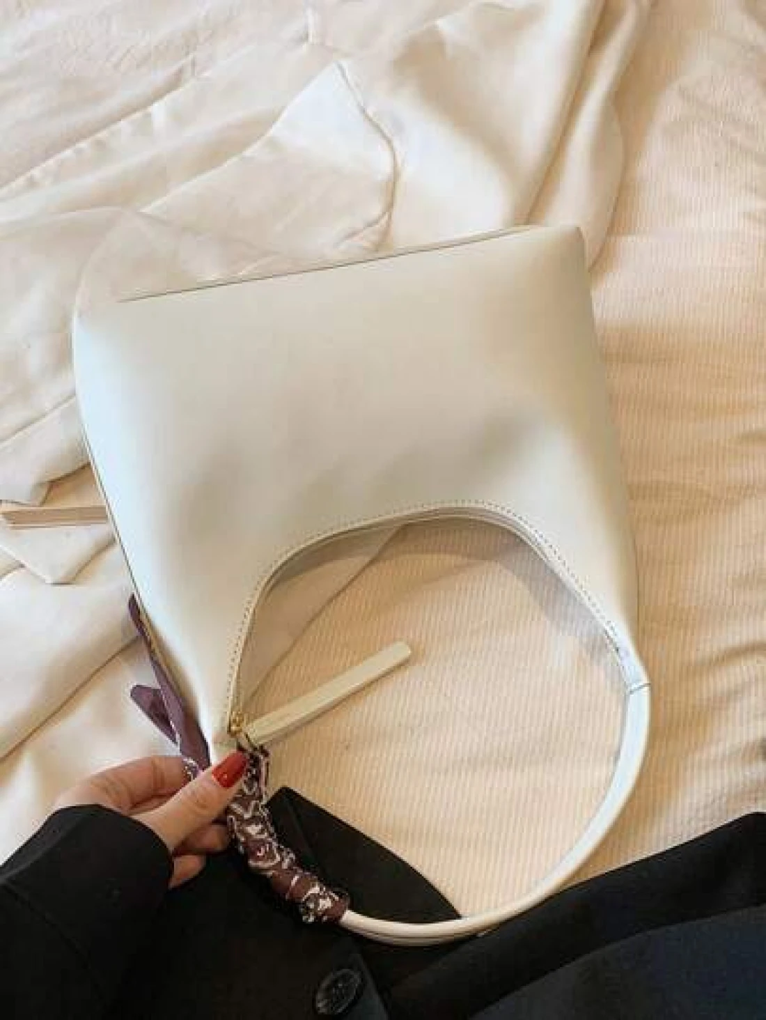 حقيبة كتف تحت الذراع بيج موحدة اللون مع وشاح متضمن، قطعة واحدة