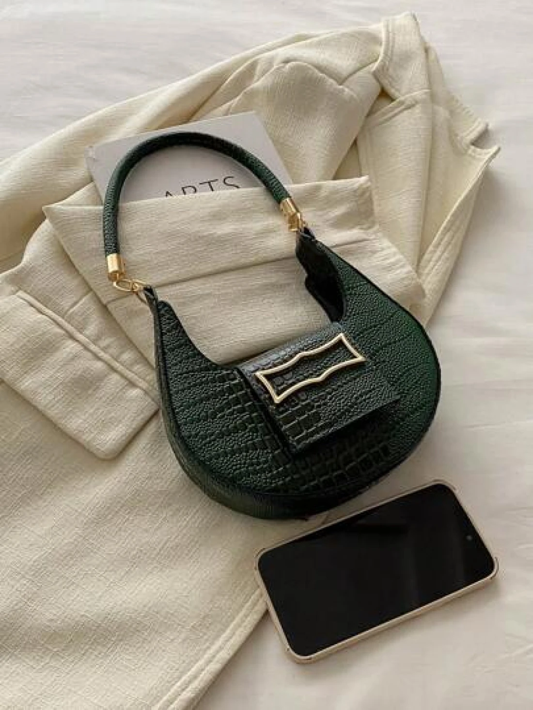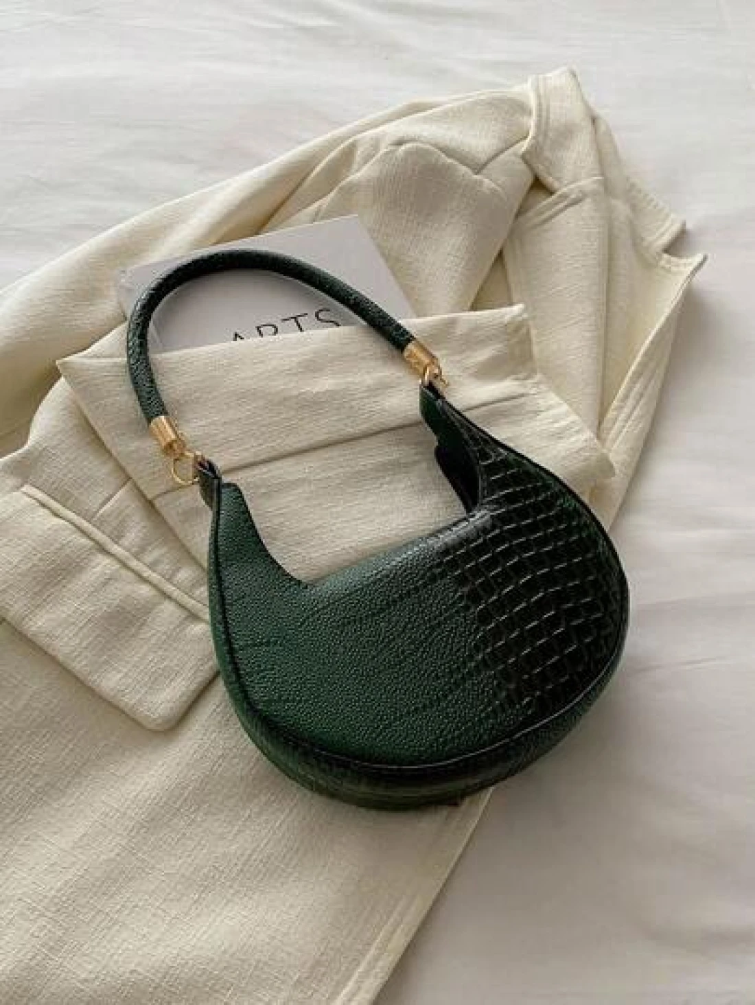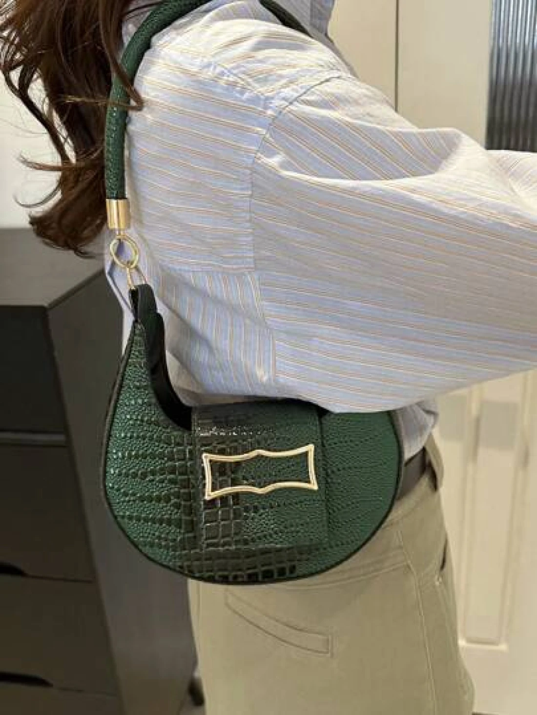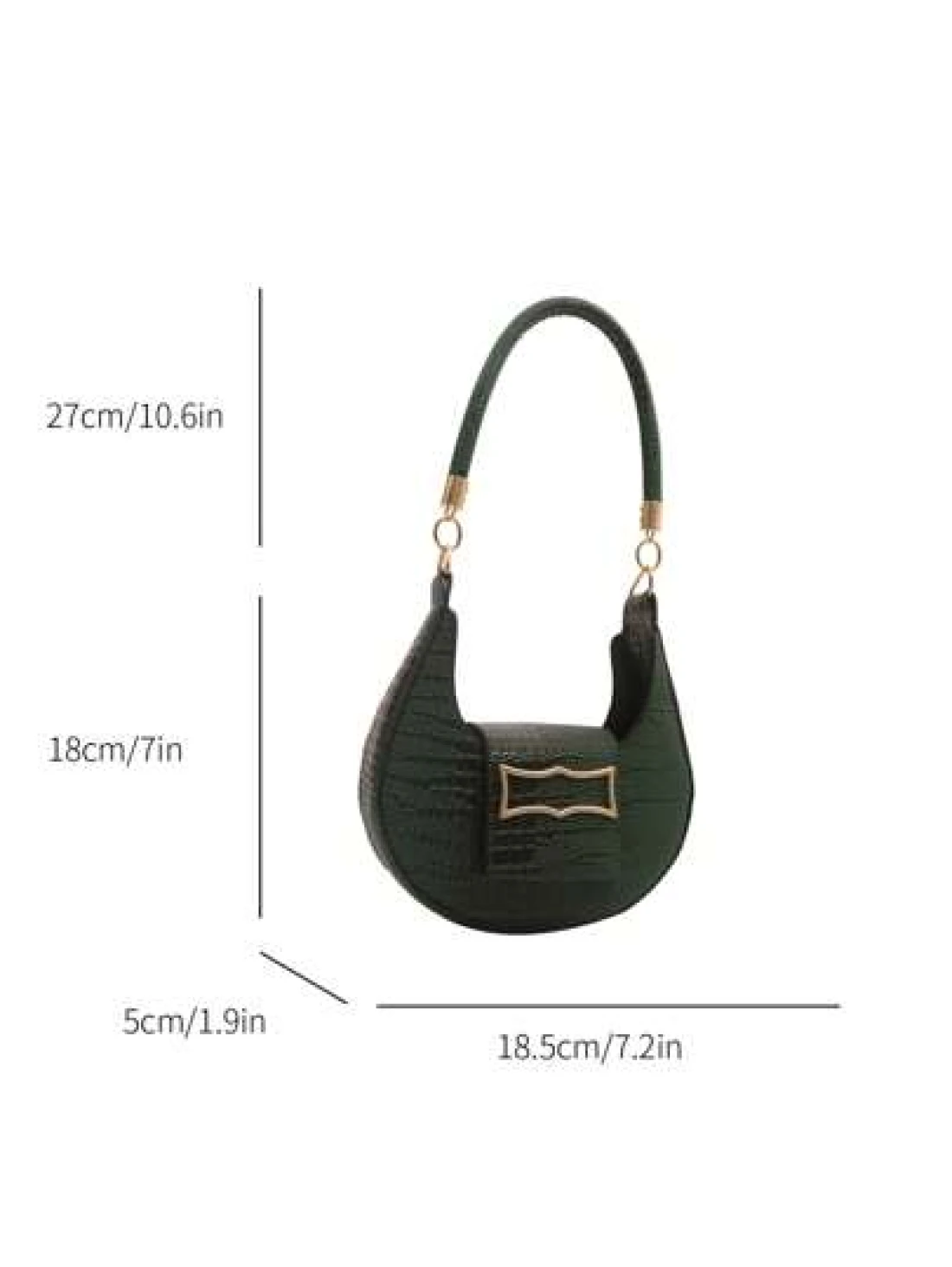 حقيبة كتف ذات نمط تمساح بخطوط بارزة بإغلاق من اكسسوارات معدنية، لون ثابت خفيفة الوزن مناسبة للاستخدام اليومي