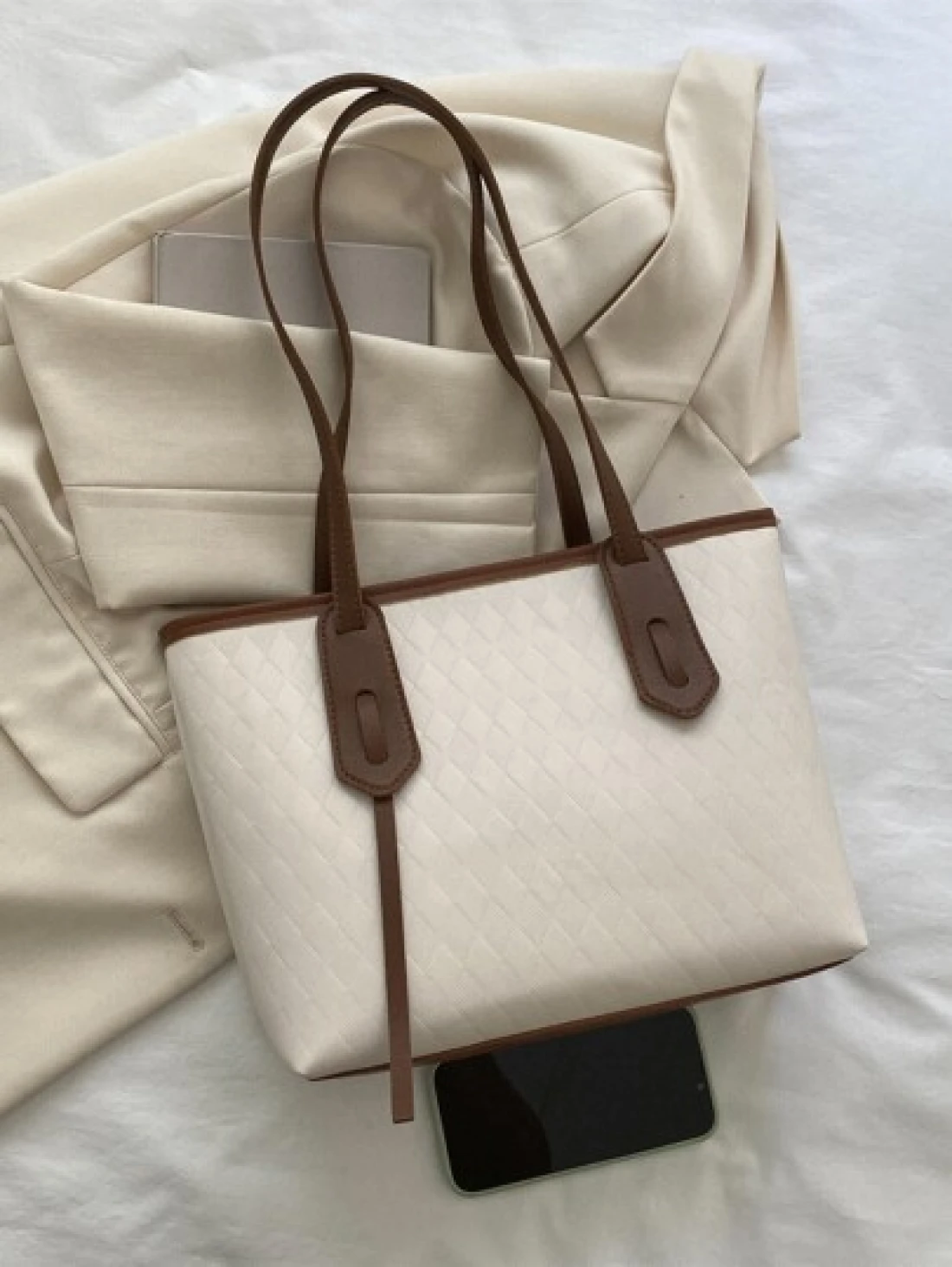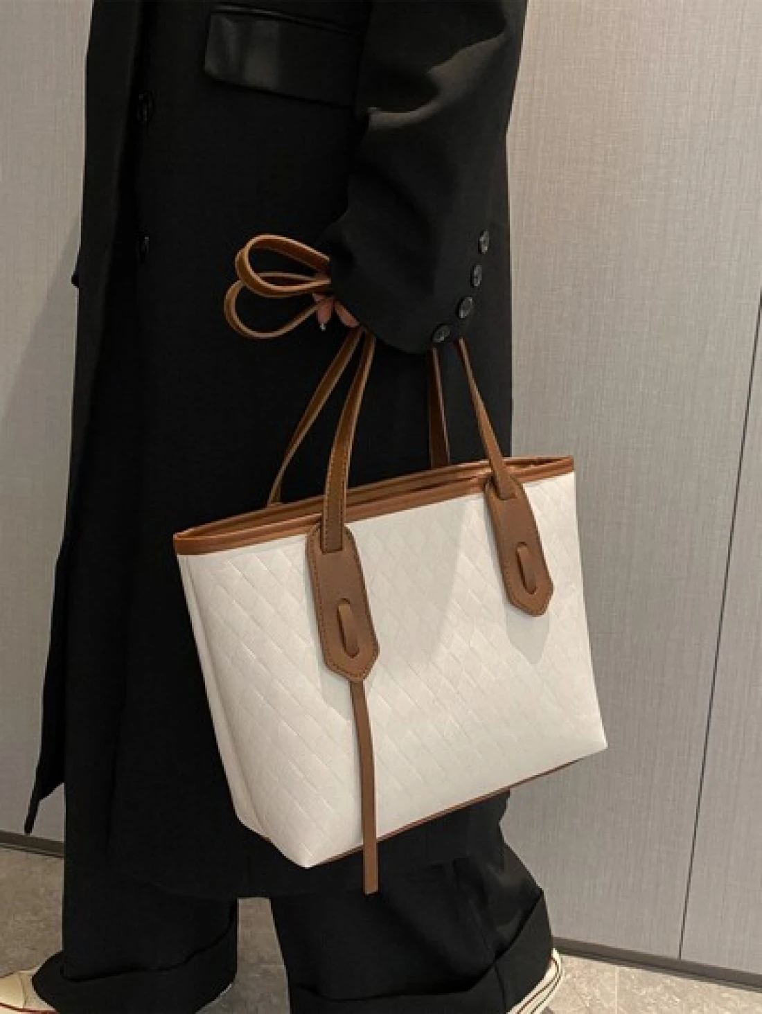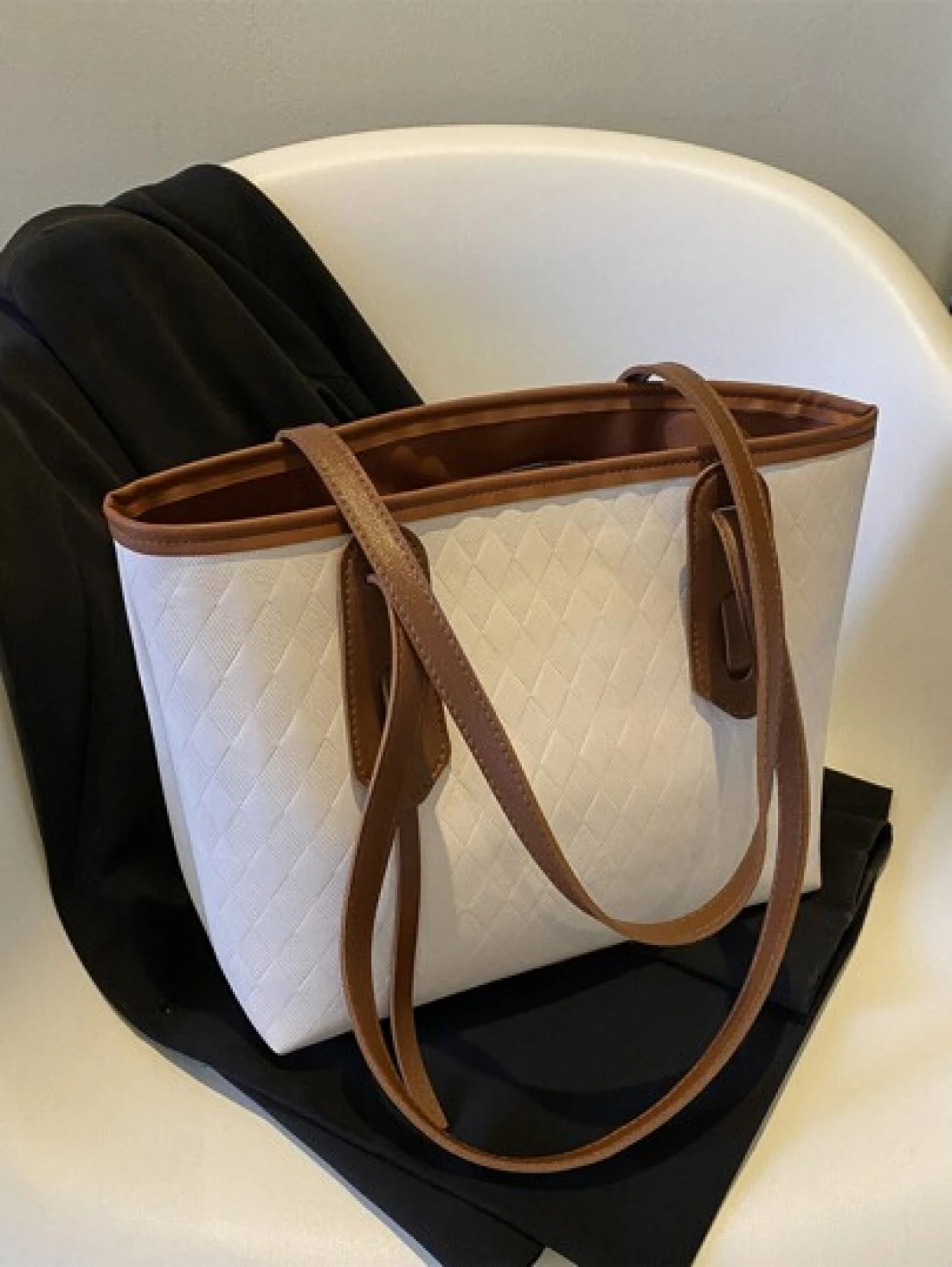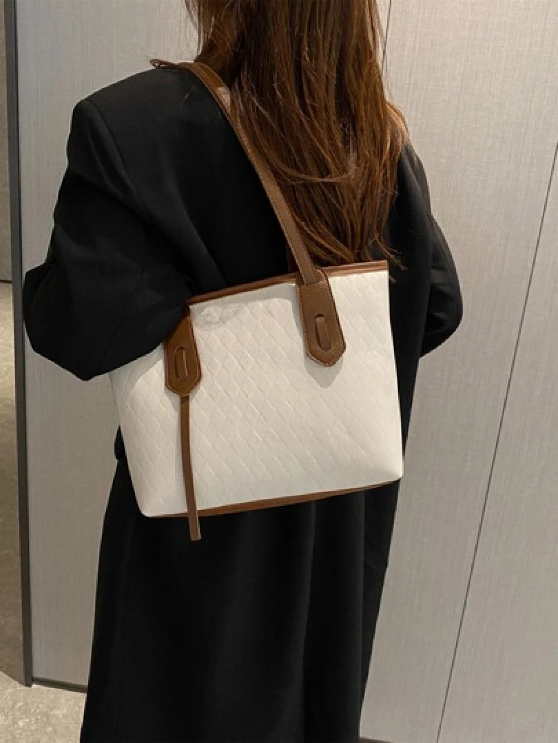 حقيبة كتف عصرية وعتيقة بنقشة شبكية مع خطوط مخيطة ومطوية بالضغط للنساء، حقيبة تسوق للترفيه