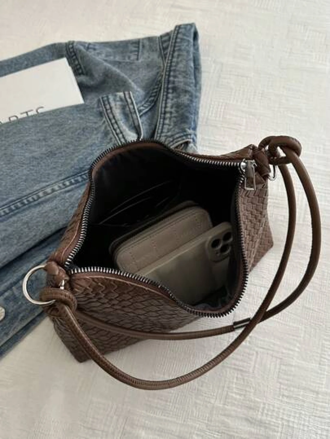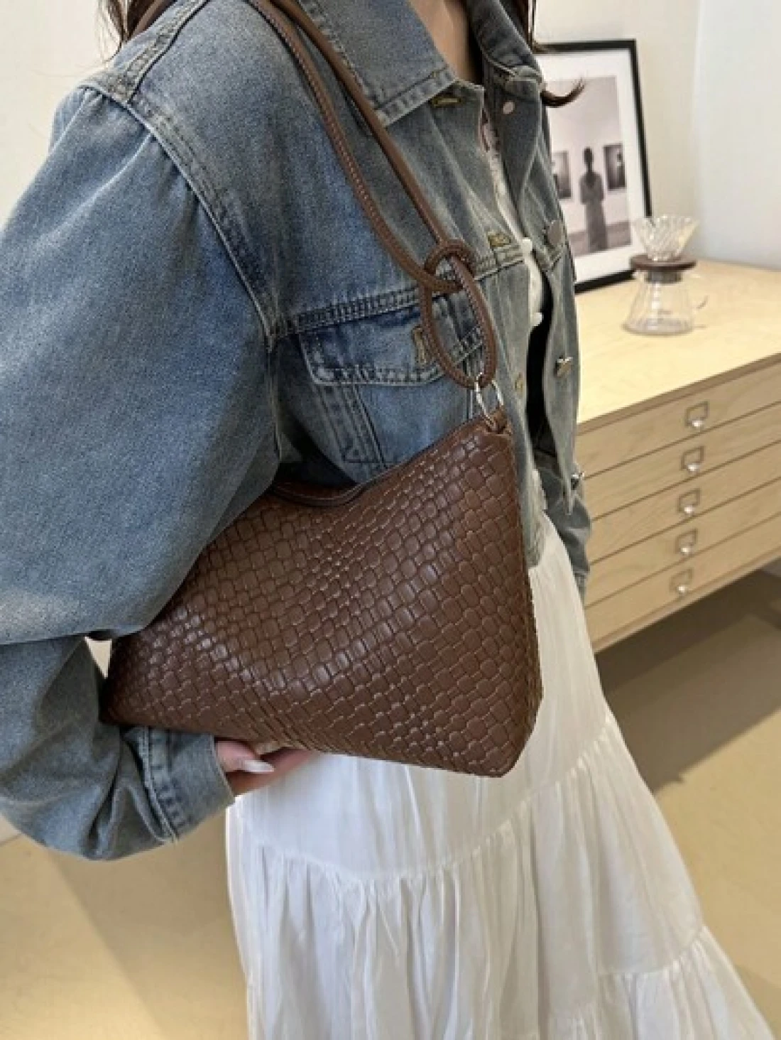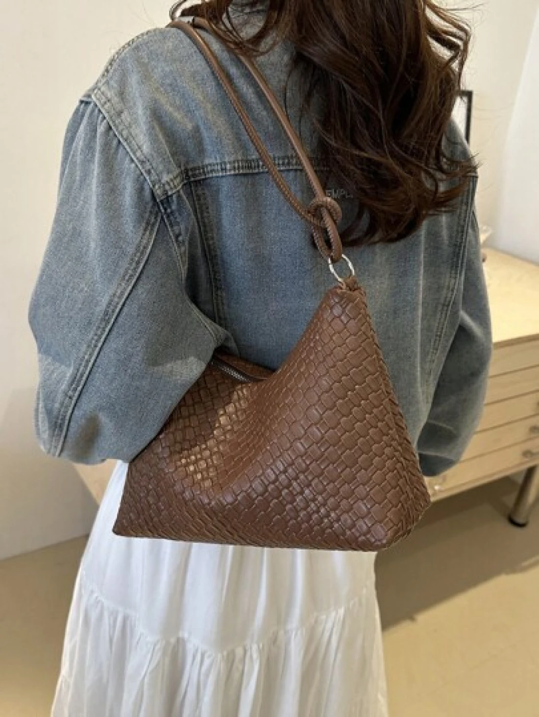 حقيبة كتف نسائية عتيقة مصنوعة من نسيج محبوك بتصميم جديد وعصري