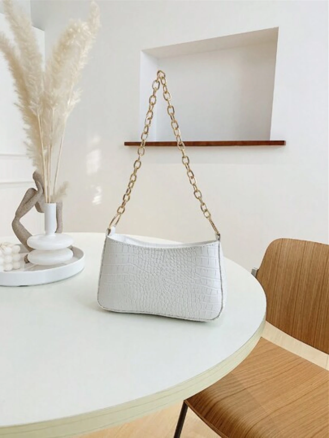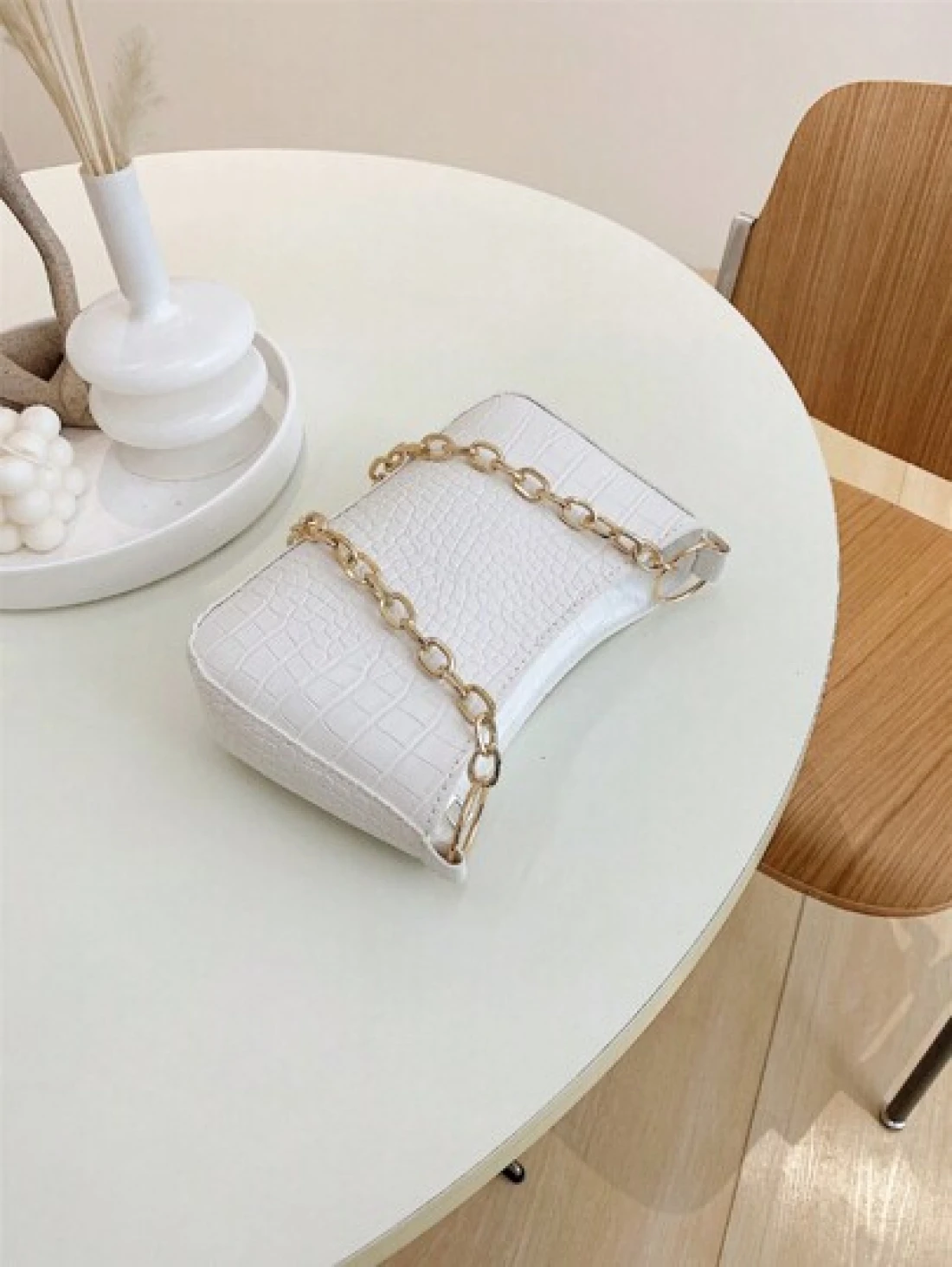 حقيبة كتف نسائية صغيرة ذات ملمس بشرة التمساح مع سلسلة