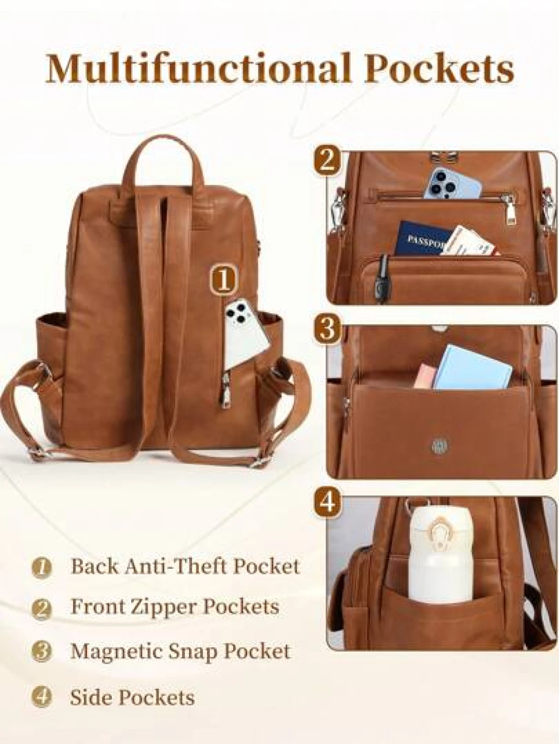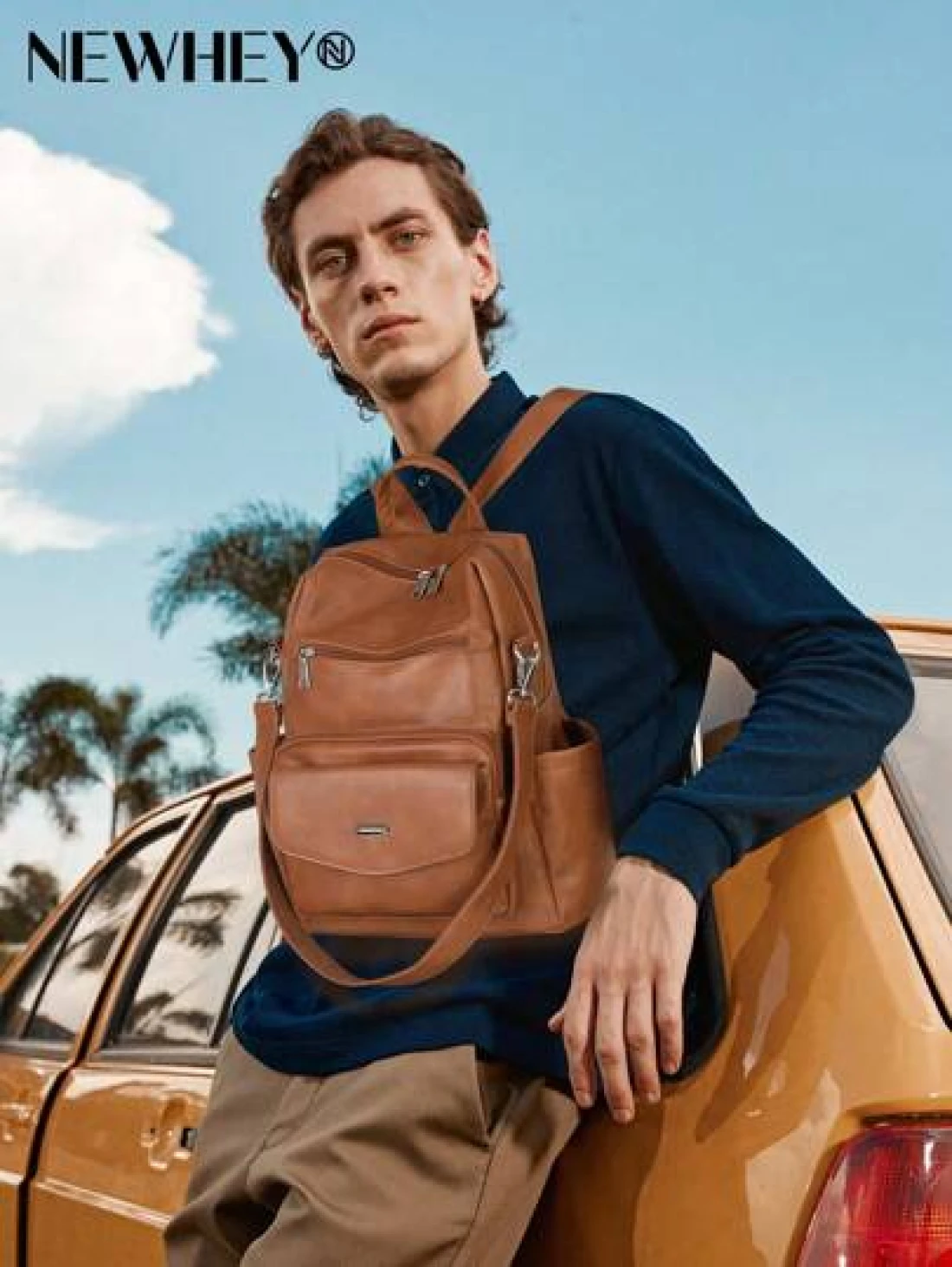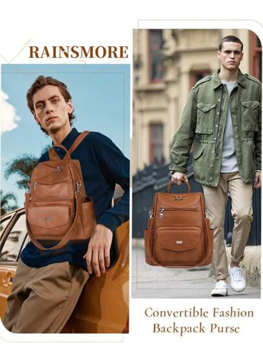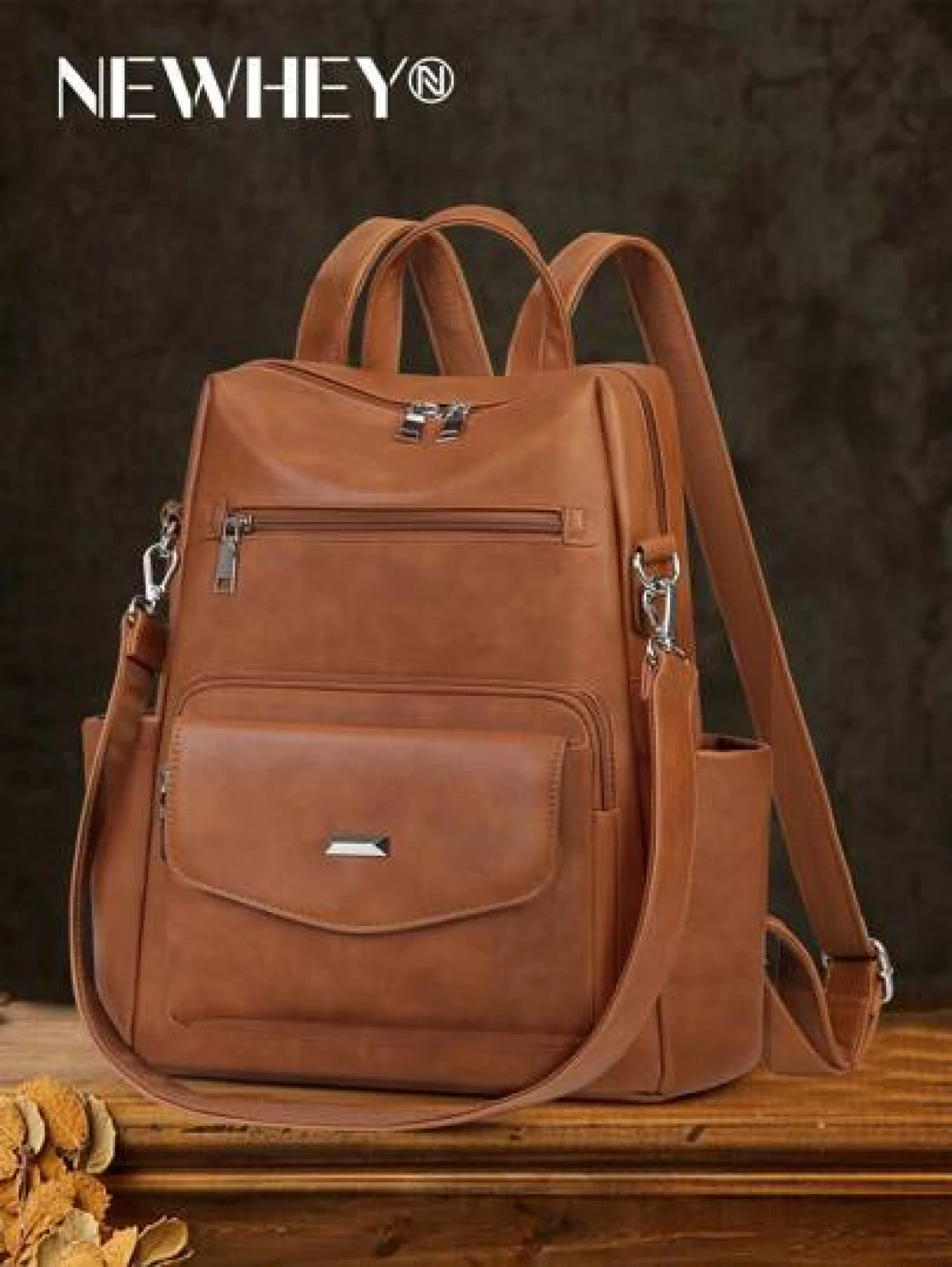 NEWHEY حقيبة ظهر جلد صناعي (بو) للرجال ، حقيبة ظهر محورية قابلة للتحويل ، حقيبة ظهر مضادة للماء ، حقائب ظهر أنيقة ل