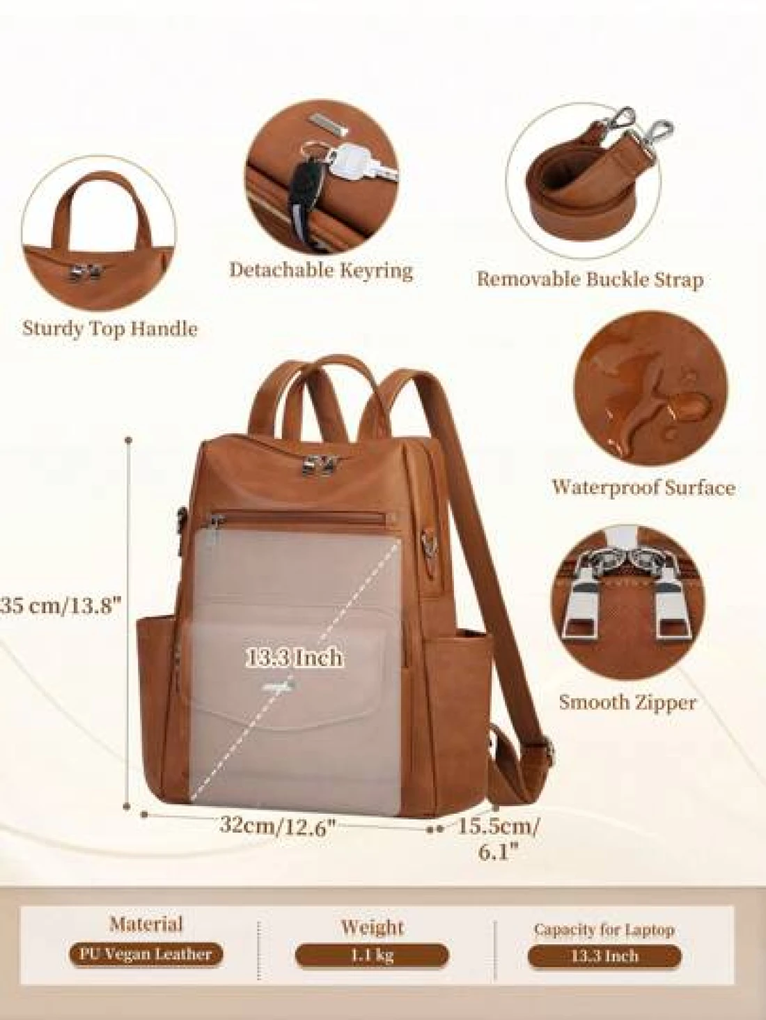 NEWHEY حقيبة ظهر جلد صناعي (بو) للرجال ، حقيبة ظهر محورية قابلة للتحويل ، حقيبة ظهر مضادة للماء ، حقائب ظهر أنيقة للرجال 13.3 بوصة لأغراض العمل والسفر والكلية